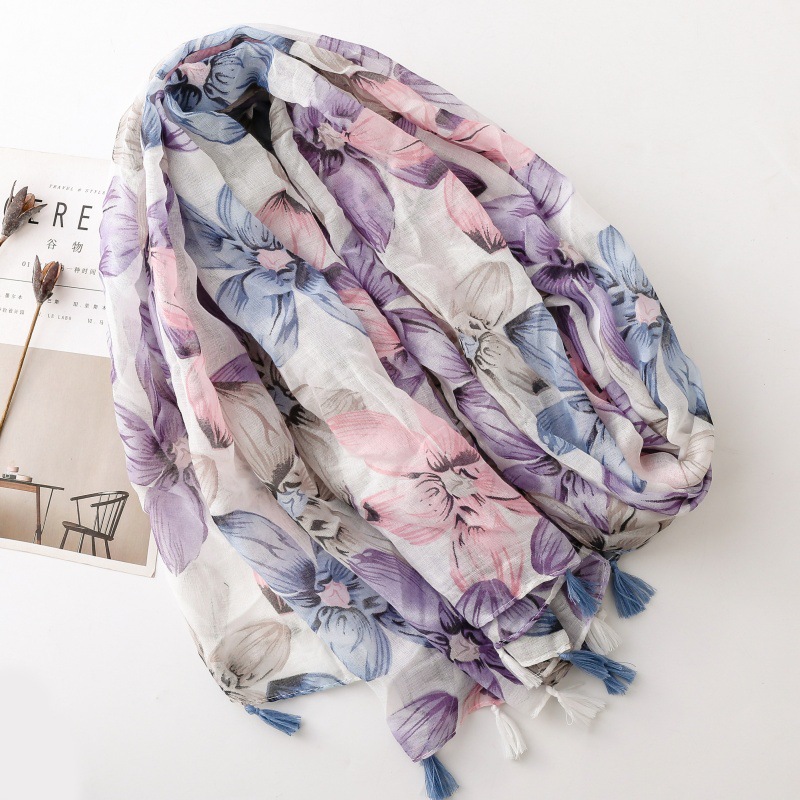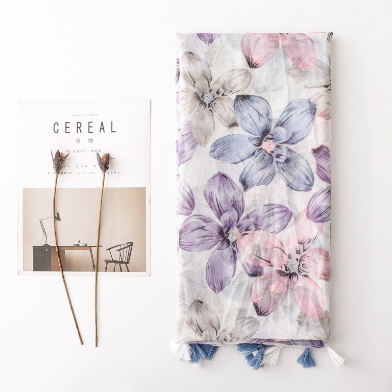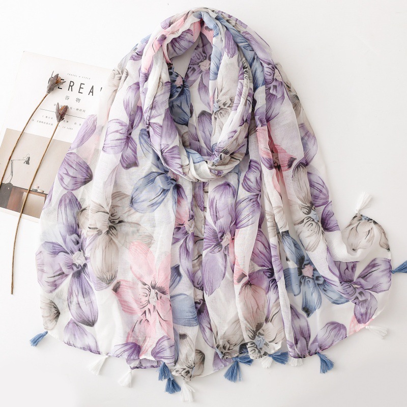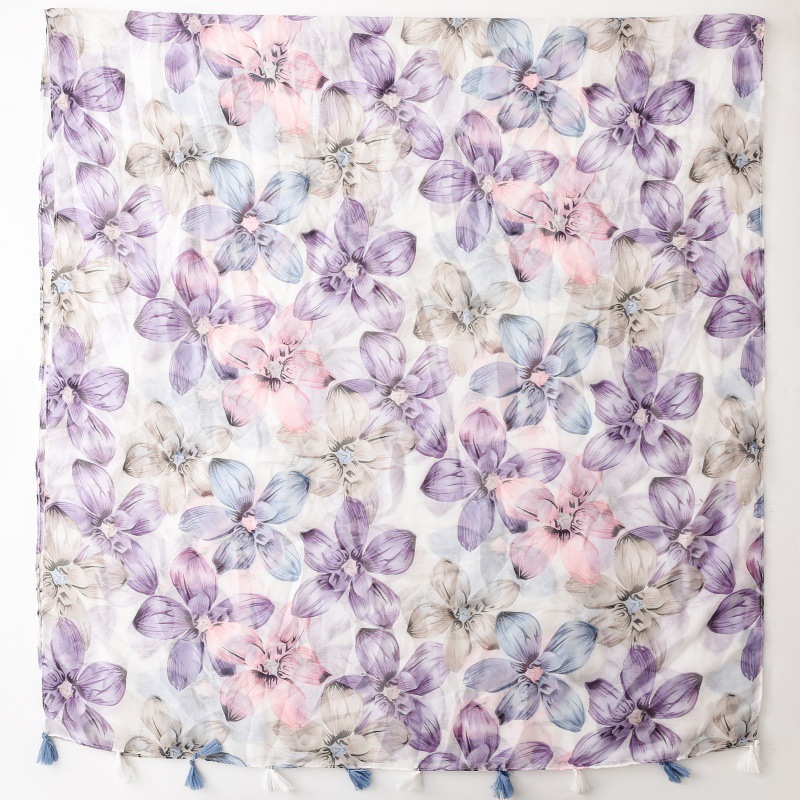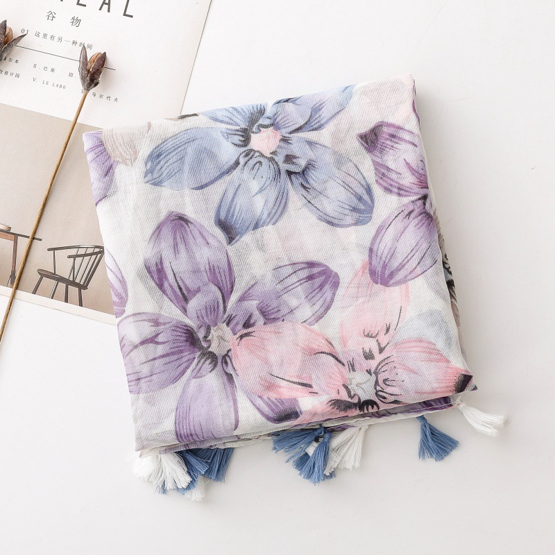 국경 간 수출 스카프 발리 원사 스카프 작은 신선한 푸른 보라색 꽃 술 숙녀 액세서리 목도리 길이스토어 가기