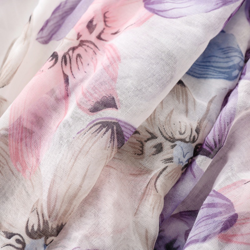 국경 간 수출 스카프 발리 원사 스카프 작은 신선한 푸른 보라색 꽃 술 숙녀 액세서리 목도리 길이