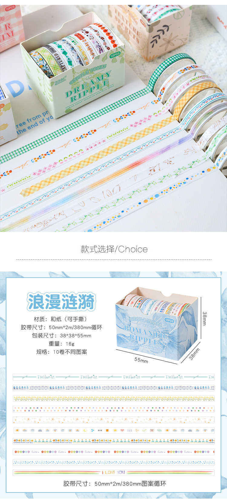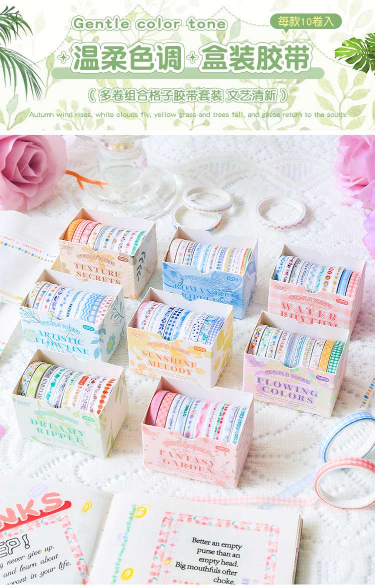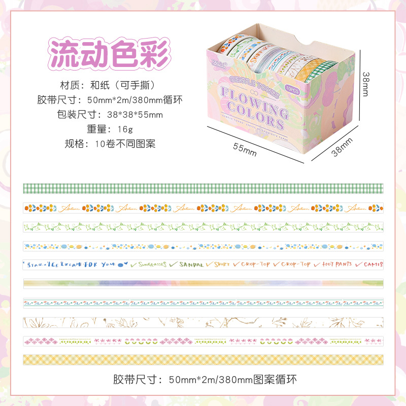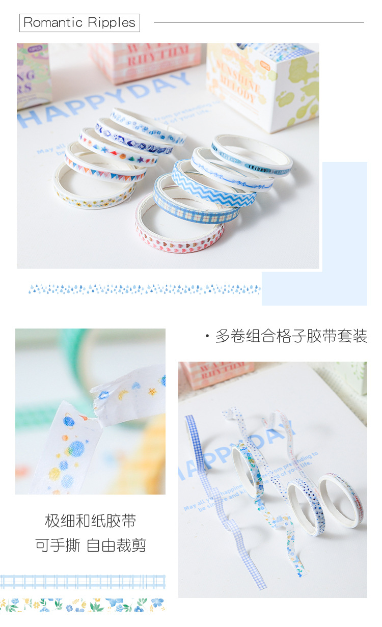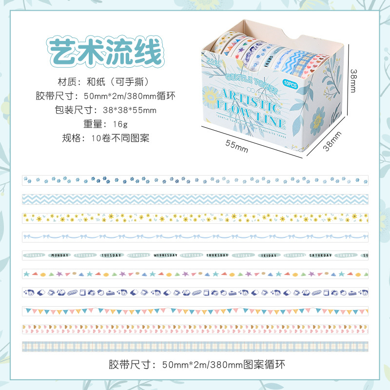 새로운 부드러운 톤 간단한 스트라이프 손 계정 테이프 테두리 장식 DIY 스티커 테이프 도매스토어 가기