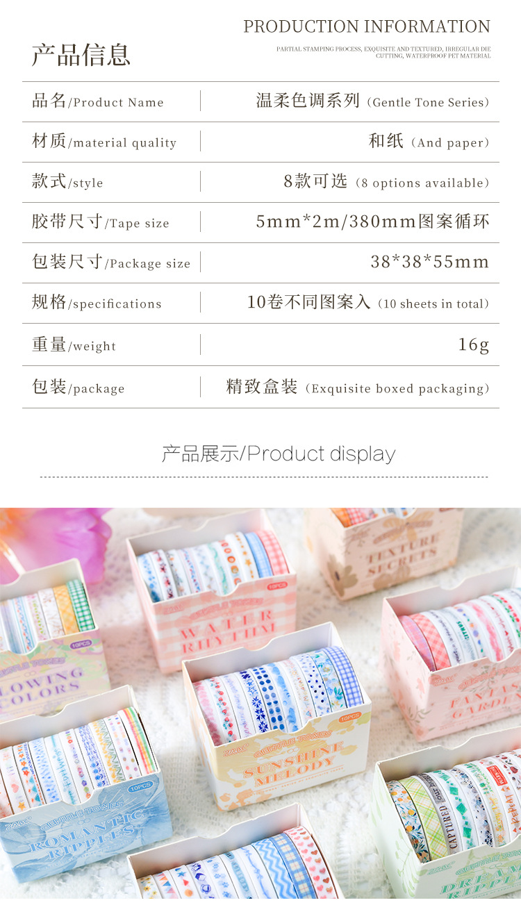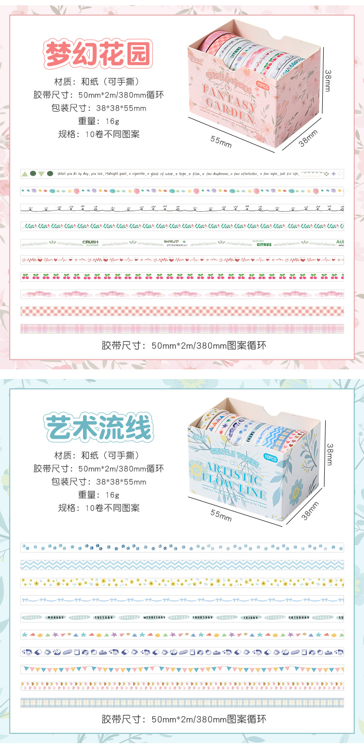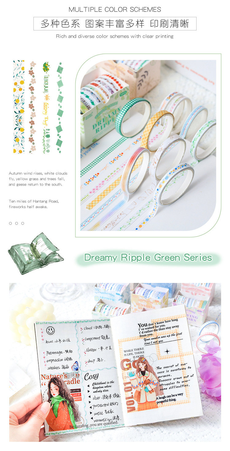 새로운 부드러운 톤 간단한 스트라이프 손 계정 테이프 테두리 장식 DIY 스티커 테이프 도매스토어 가기
