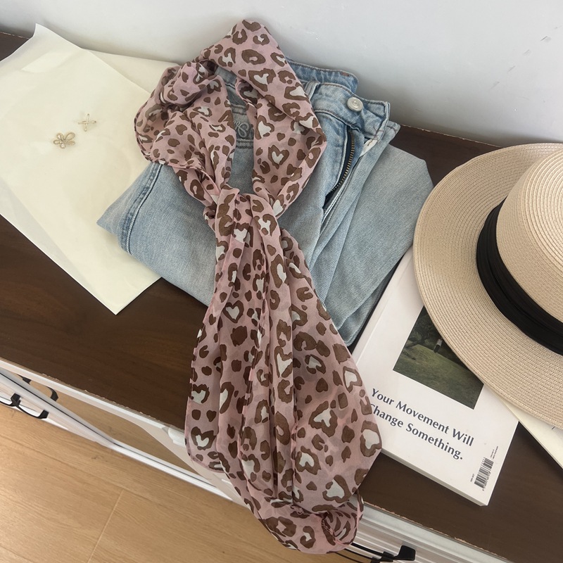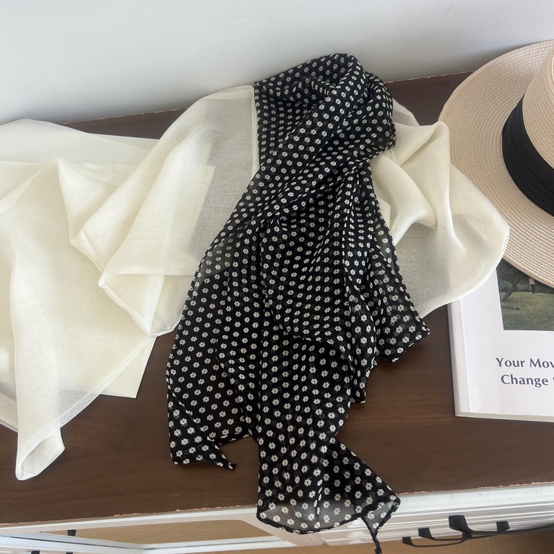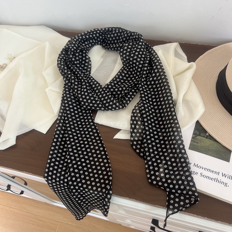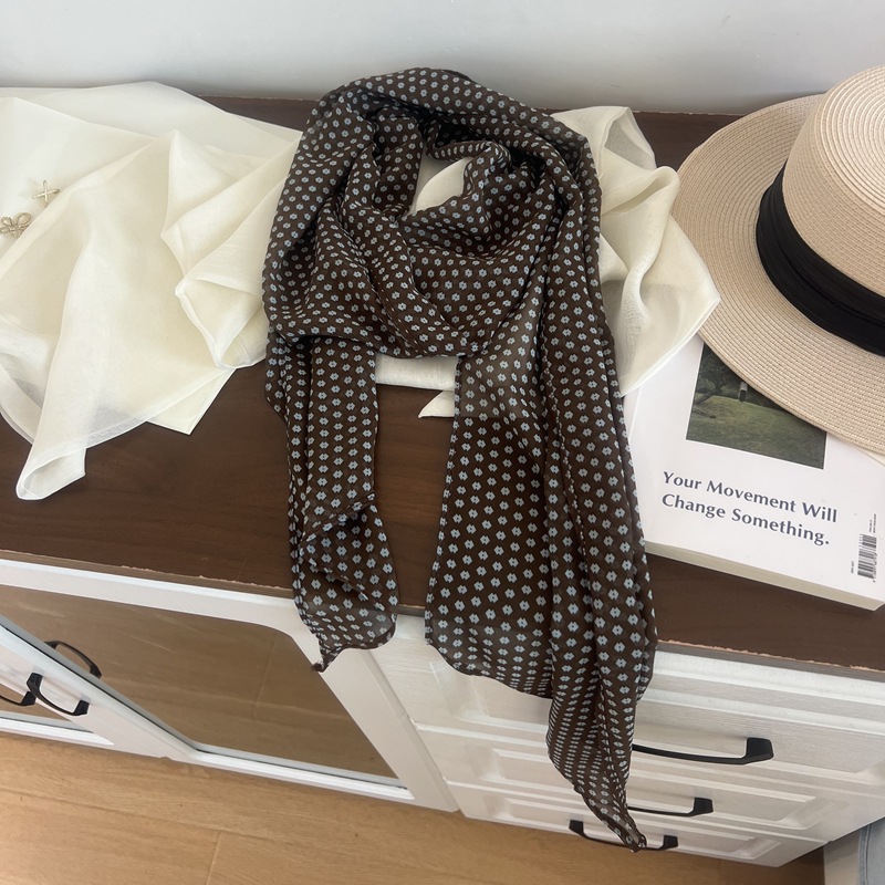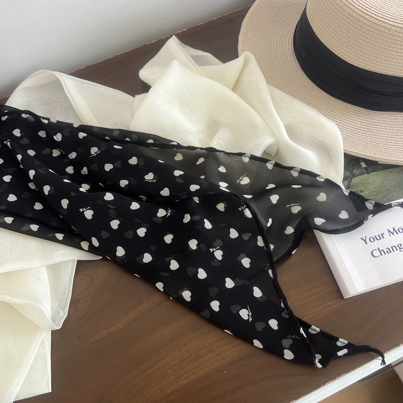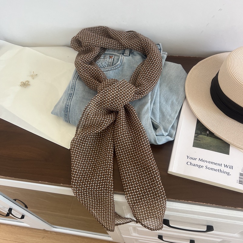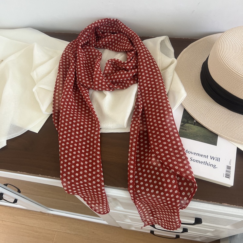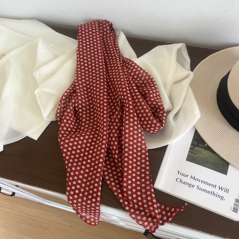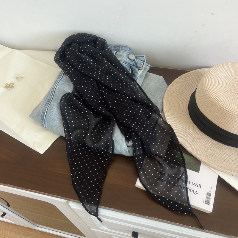 프랑스 스타일 게으른 스타일 고급 블루 웨이브 도트 긴 쉬폰 실크 스카프 여성 휴가 목 정리 스카프 리본 헤어 밴드