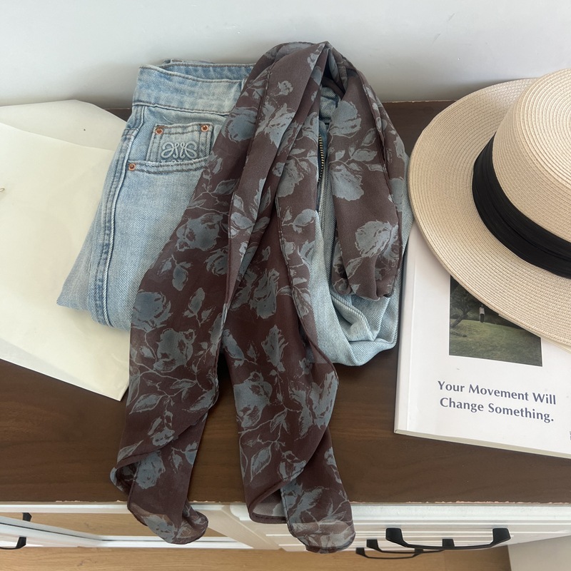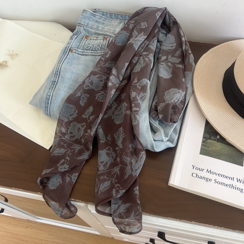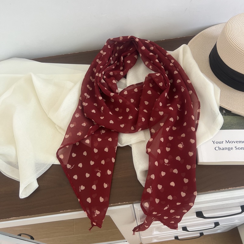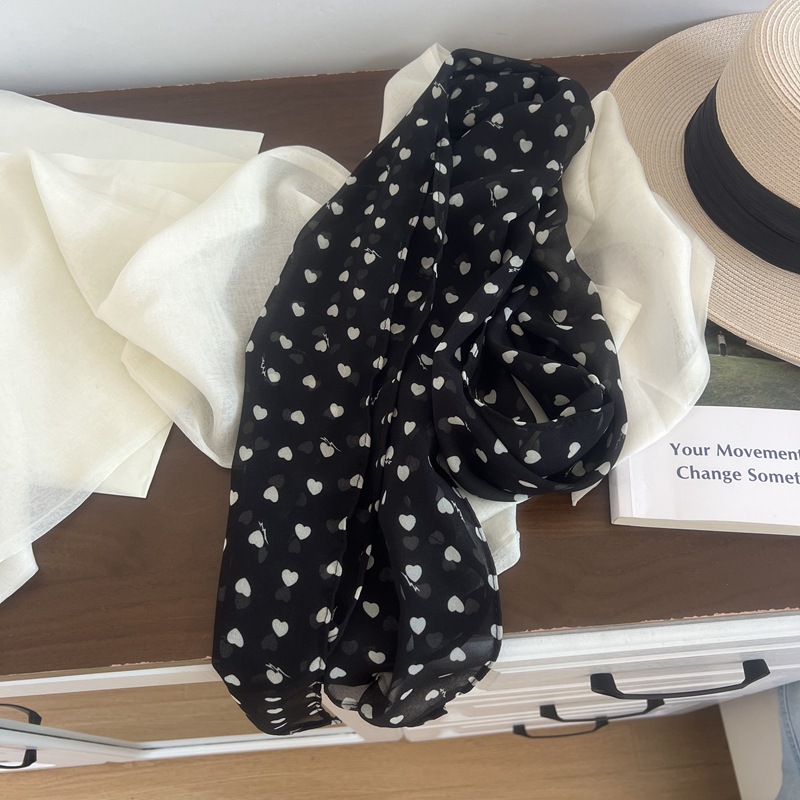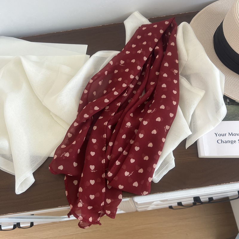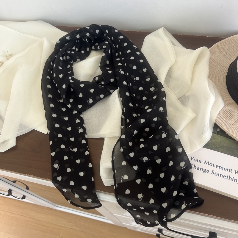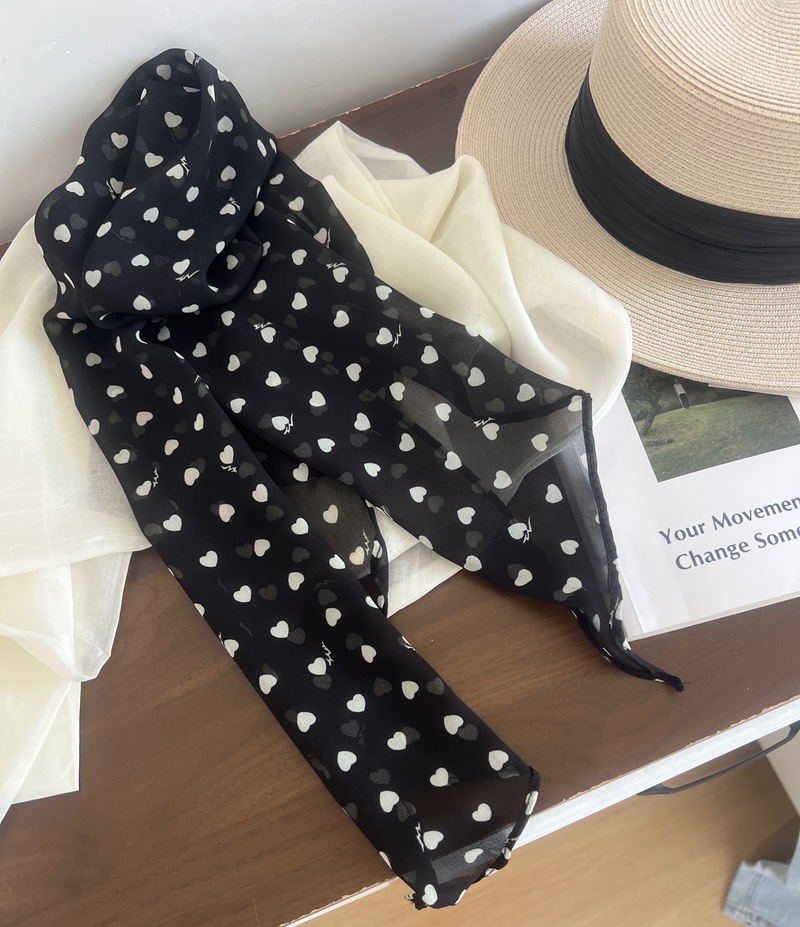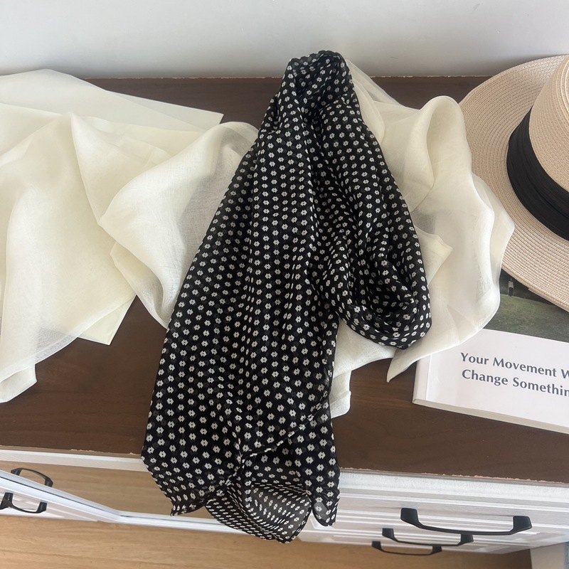 프랑스 스타일 게으른 스타일 고급 블루 웨이브 도트 긴 쉬폰 실크 스카프 여성 휴가 목 정리 스카프 리본 헤어 밴드
