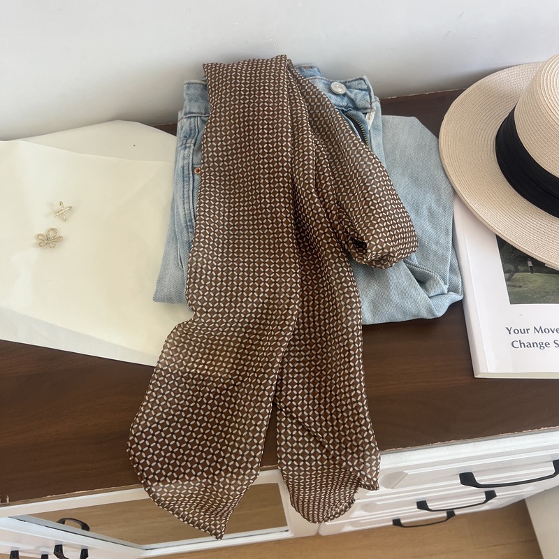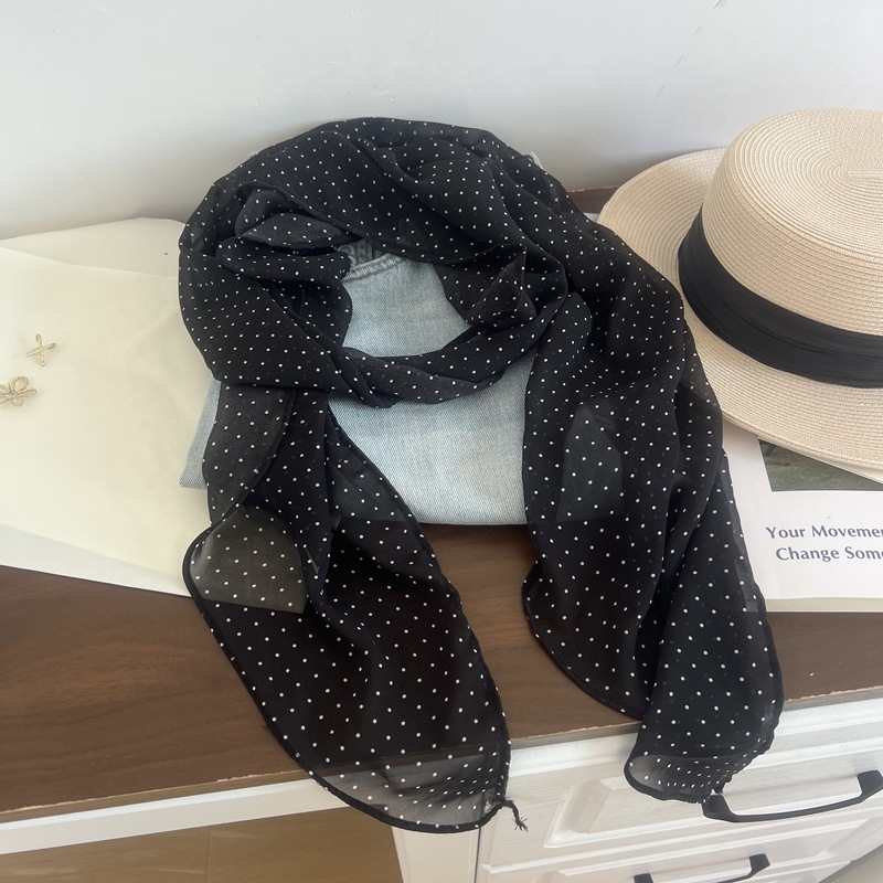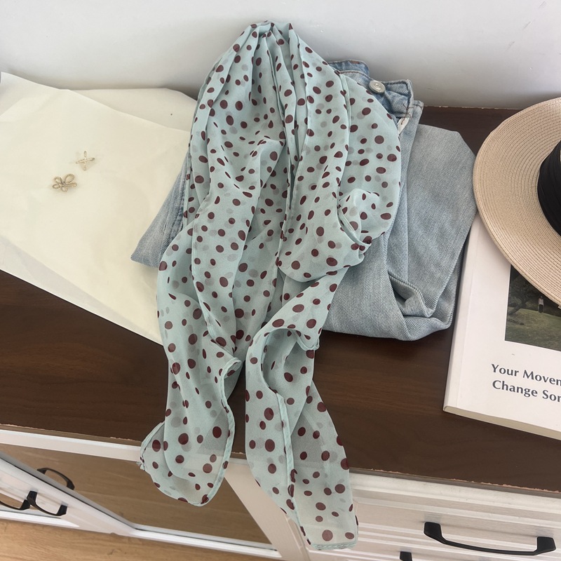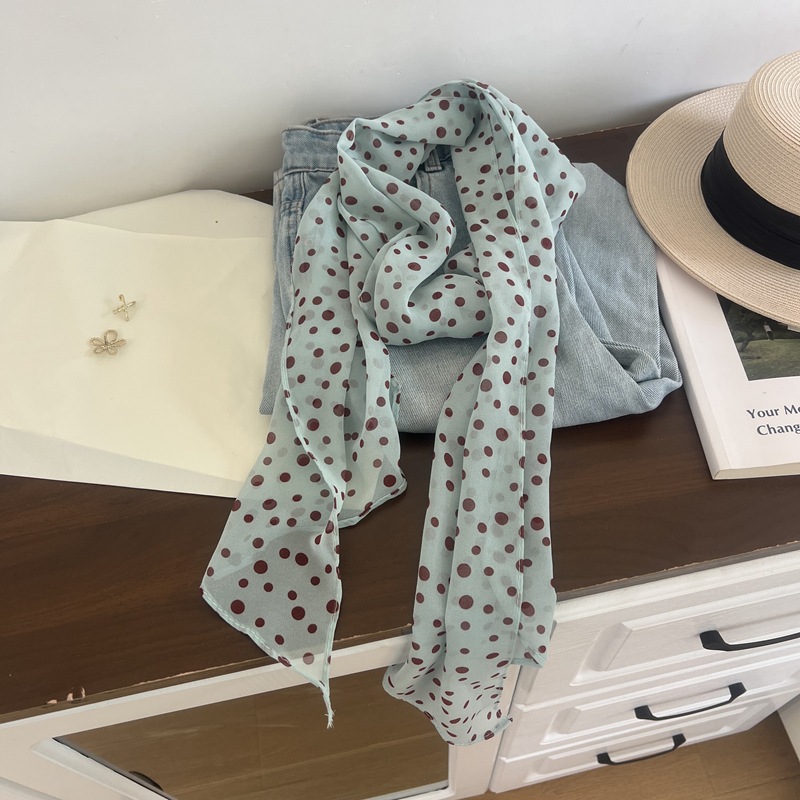 프랑스 스타일 게으른 스타일 고급 블루 웨이브 도트 긴 쉬폰 실크 스카프 여성 휴가 목 정리 스카프 리본 헤어 밴드스토어 가기