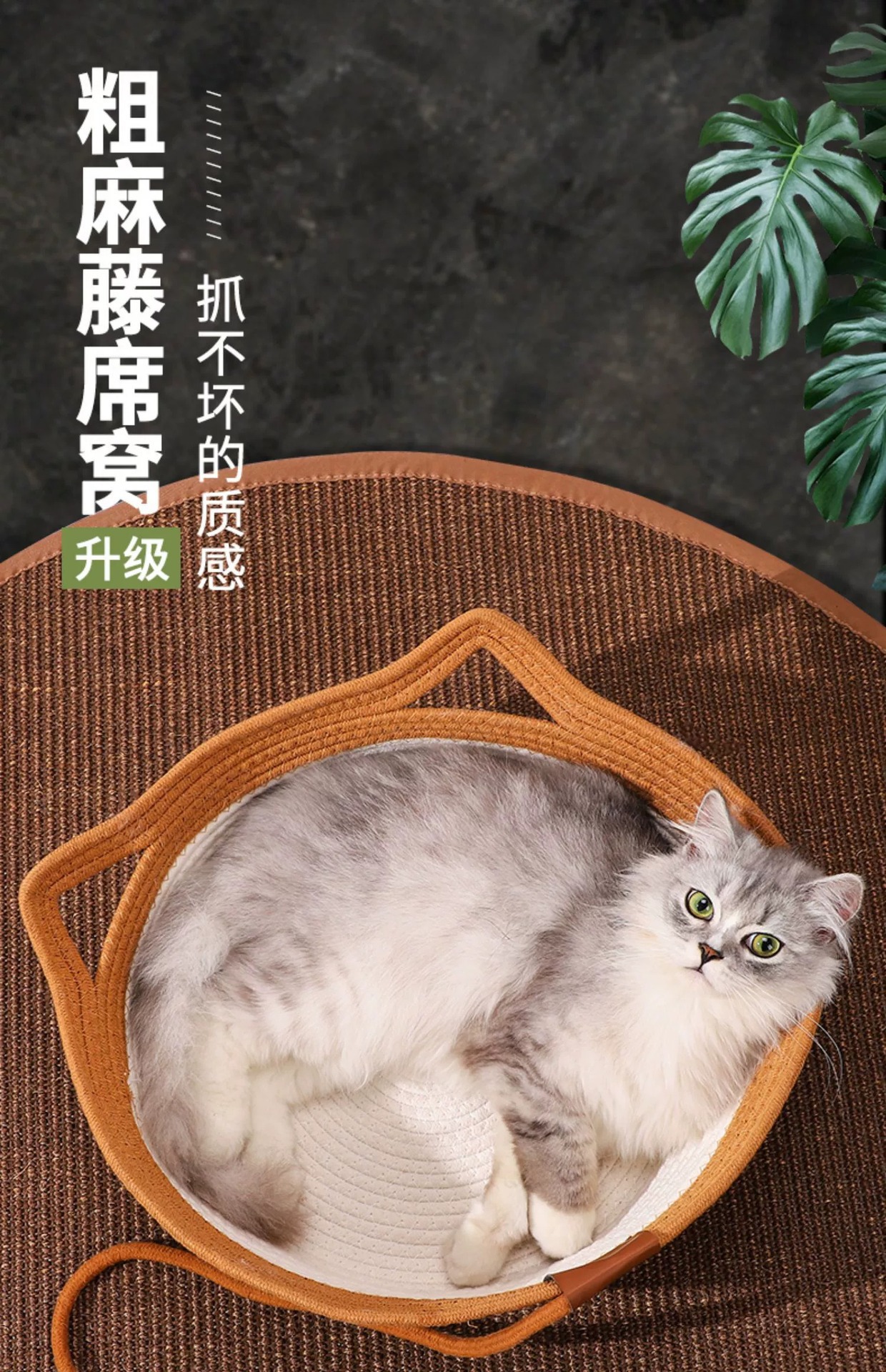둥근 등나무 고양이 둥지, 손으로 짠 일본식 등나무 둥지, 센텔라 애완 동물 둥지, 둥근 매트 둥지, 개집 도매 국경 간스토어 가기