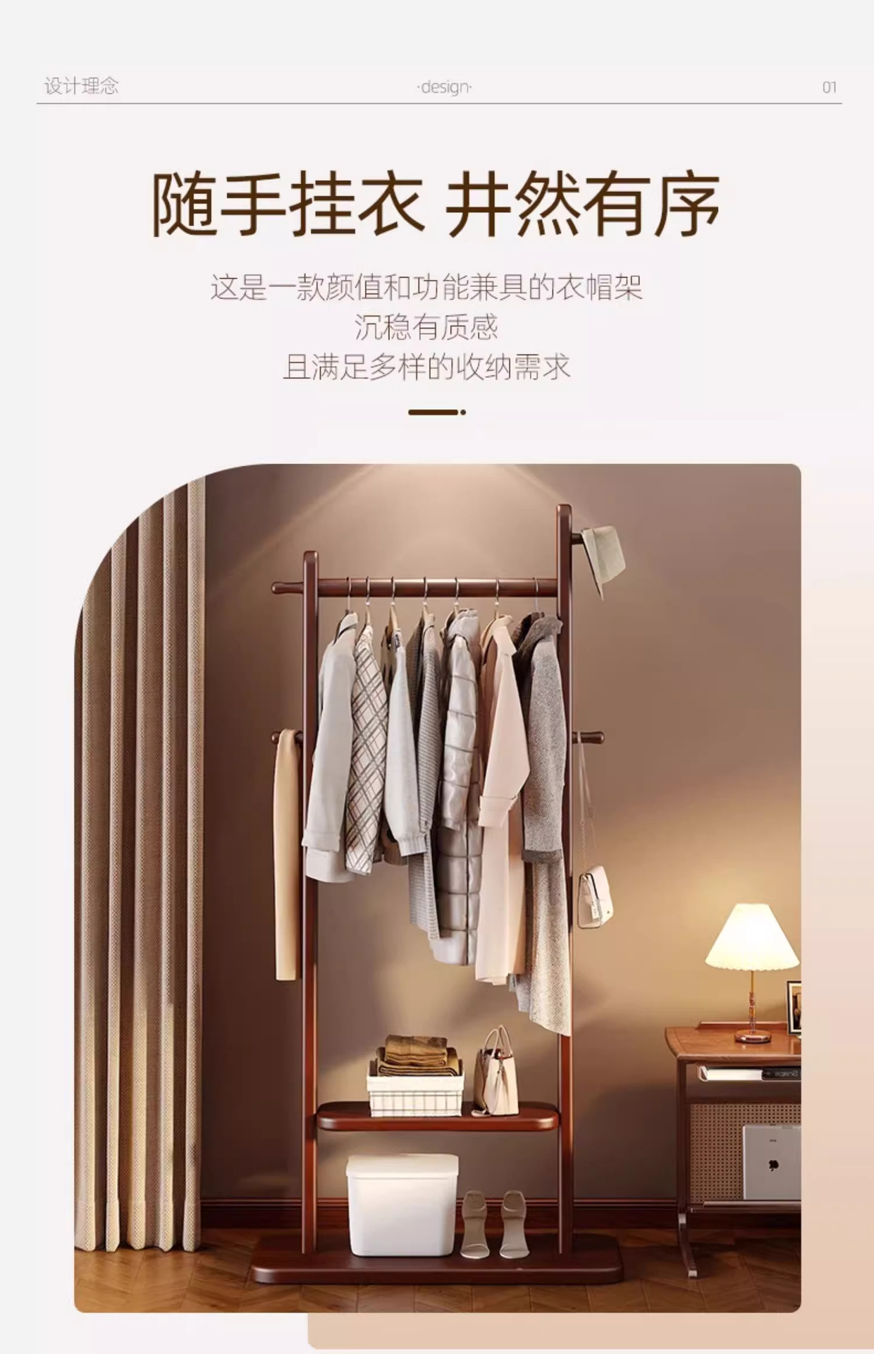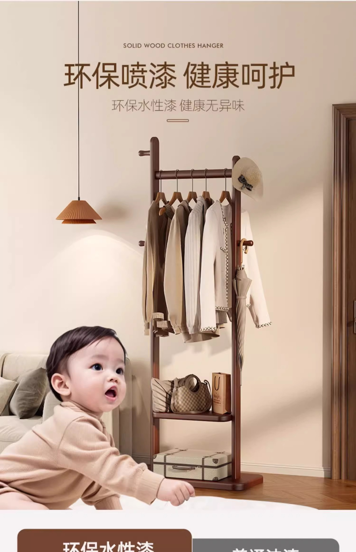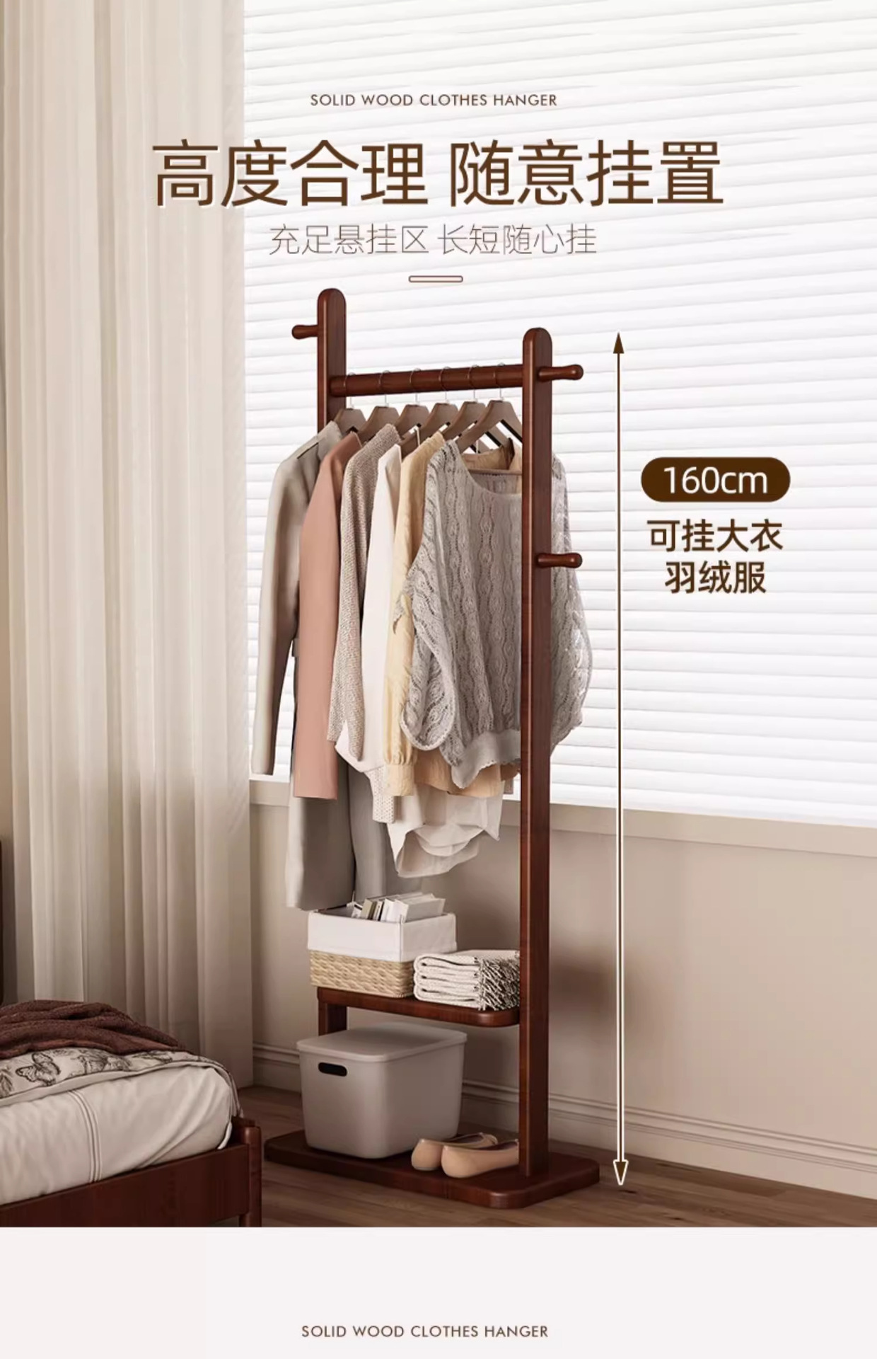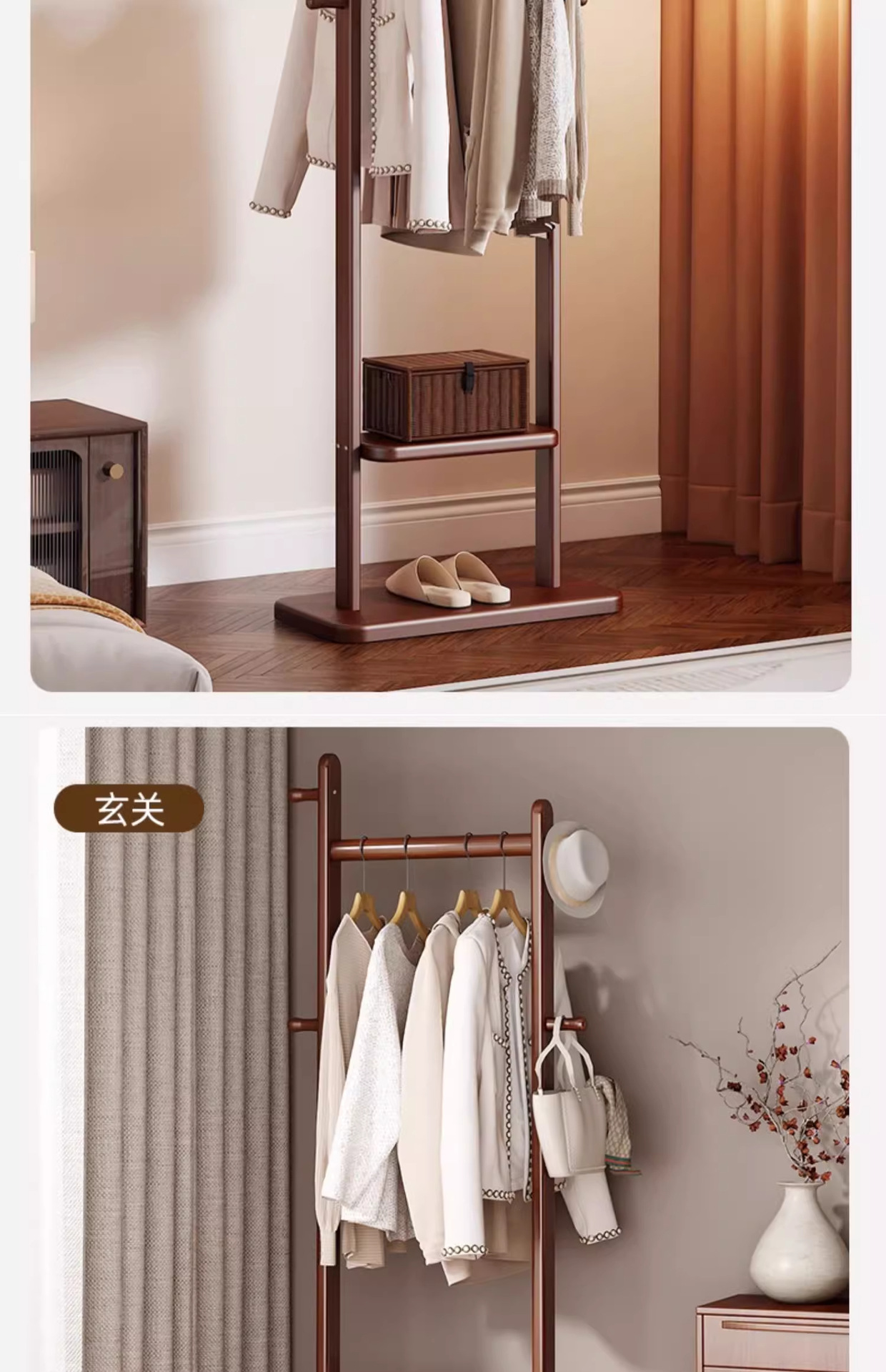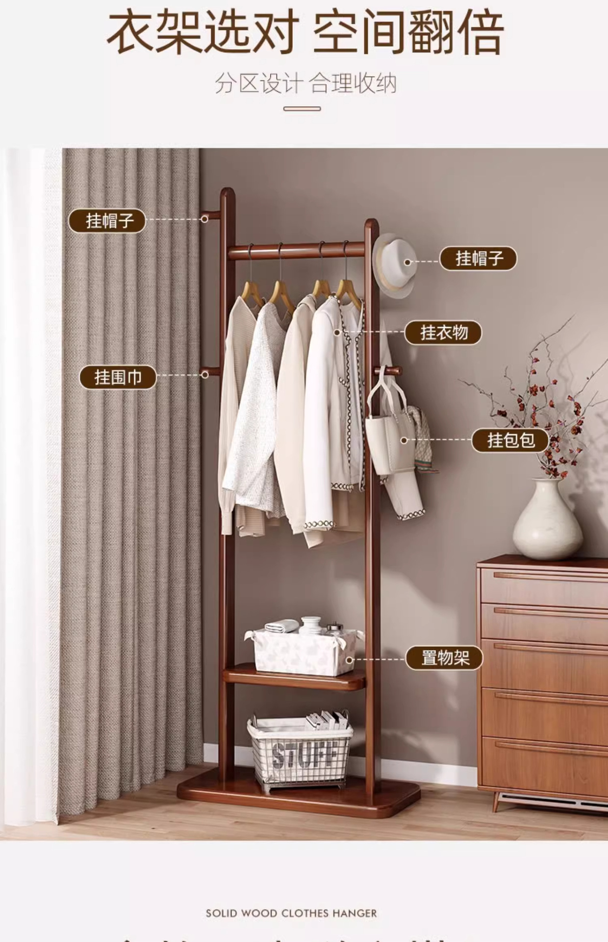 고급 단단한 나무 코트 랙, 바닥에서 천장까지 침실 수직 가정용 옷걸이, 가방 걸이, 옷장 선반 조립스토어 가기