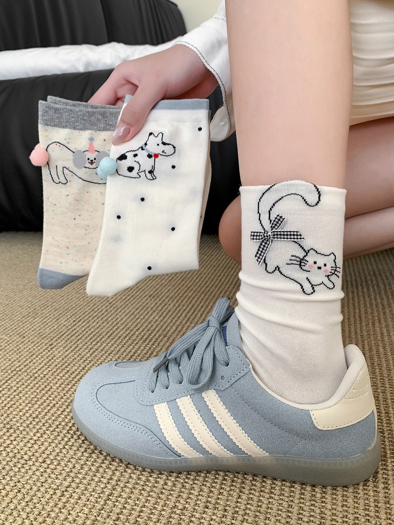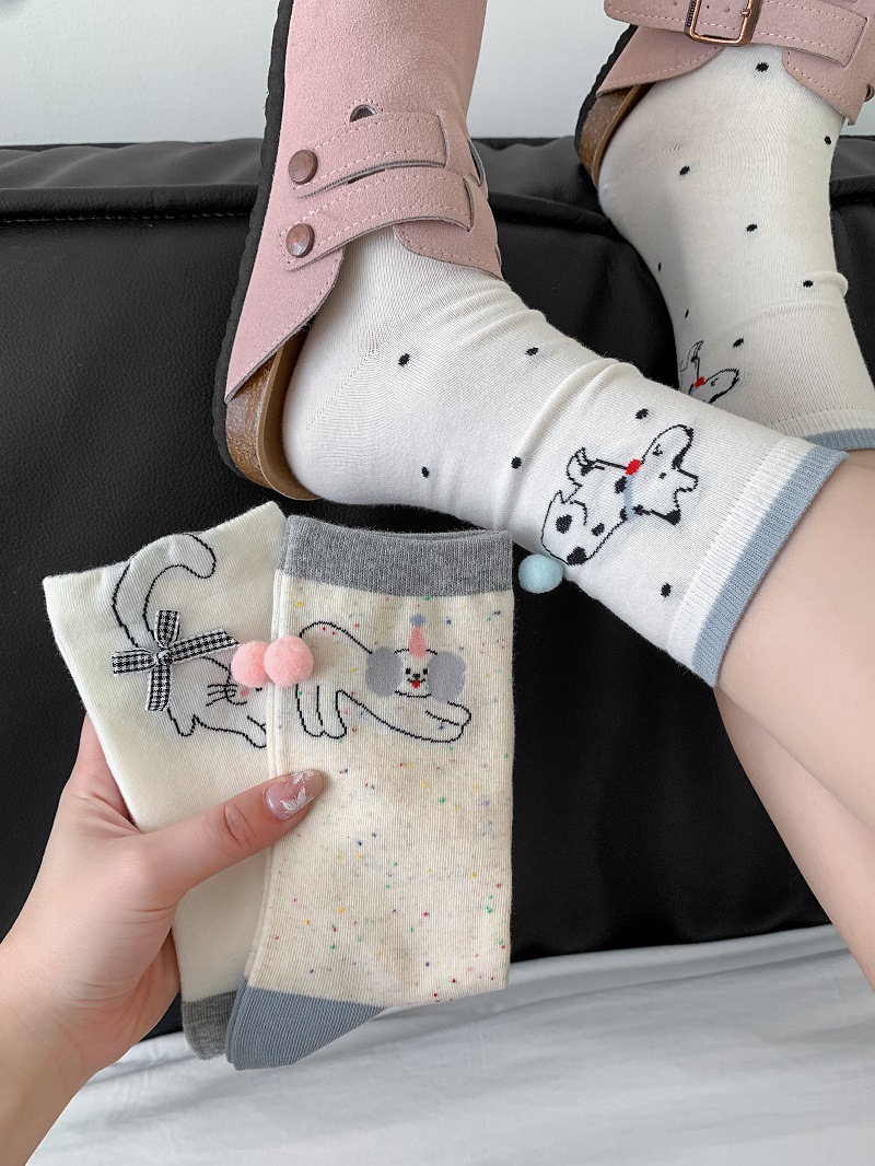 한국 동대문 새 귀여운 만화 강아지 양말 여성의 봄과 여름 일본 뼈없는 더미 스타킹