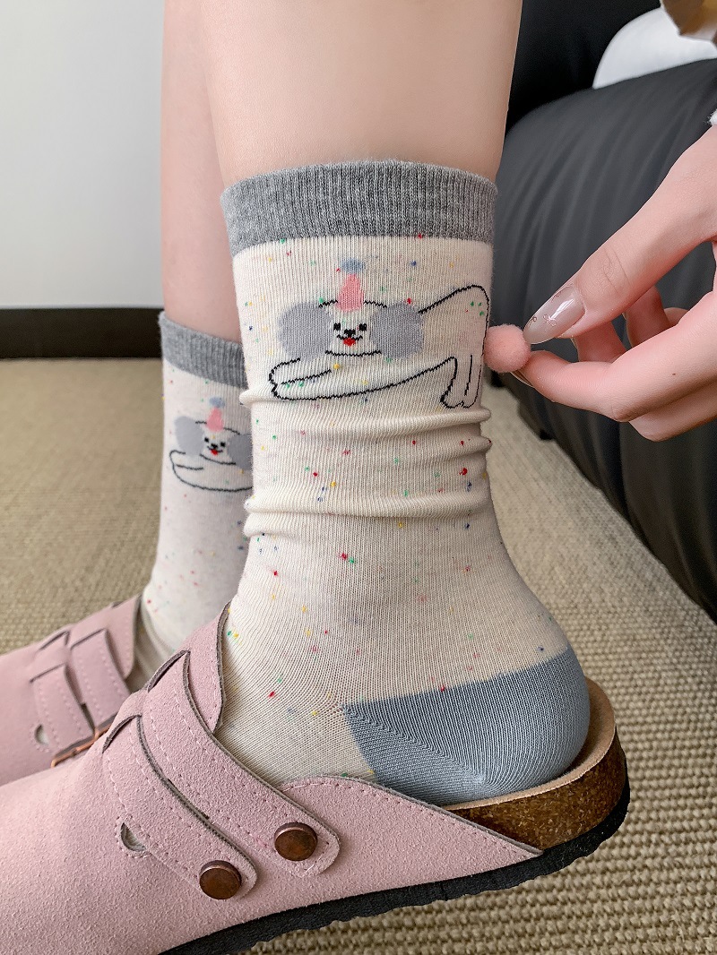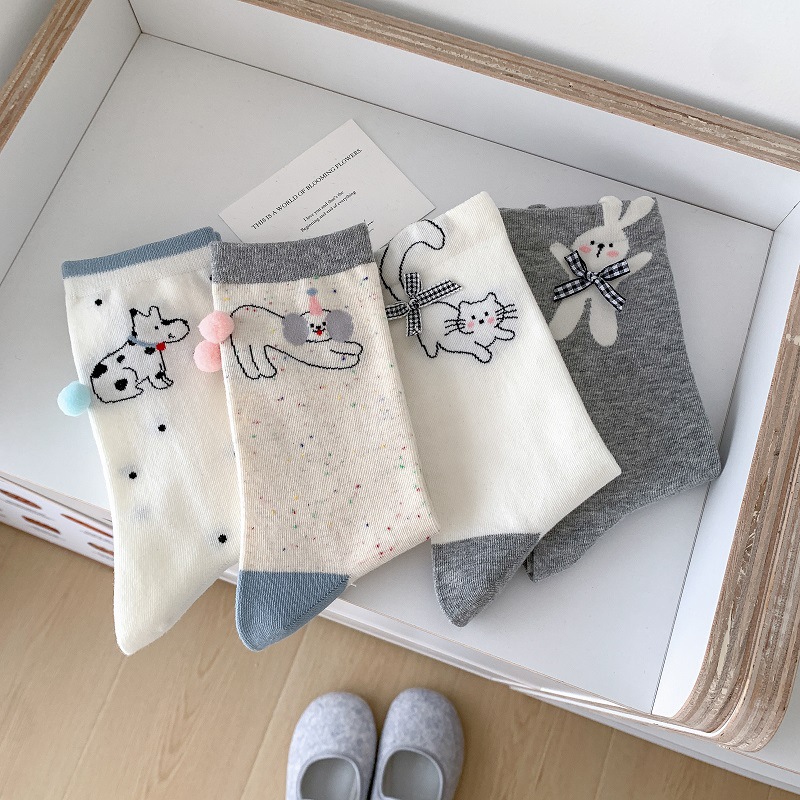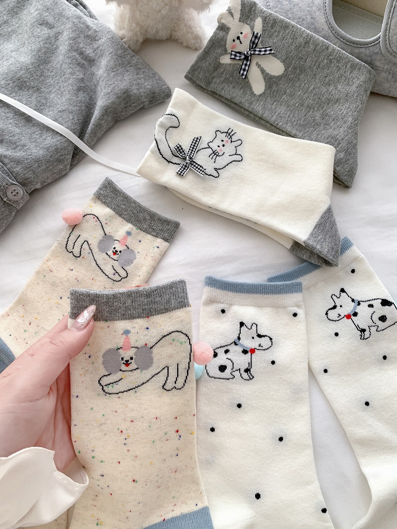 한국 동대문 새 귀여운 만화 강아지 양말 여성의 봄과 여름 일본 뼈없는 더미 스타킹스토어 가기