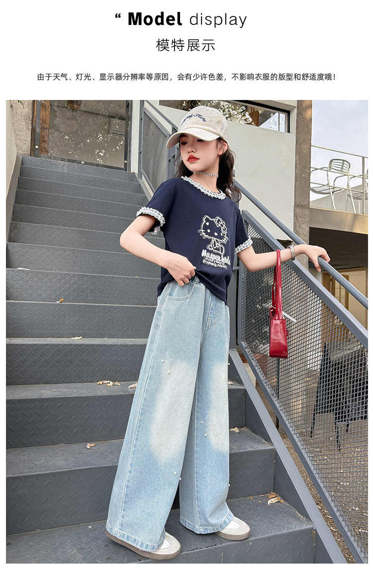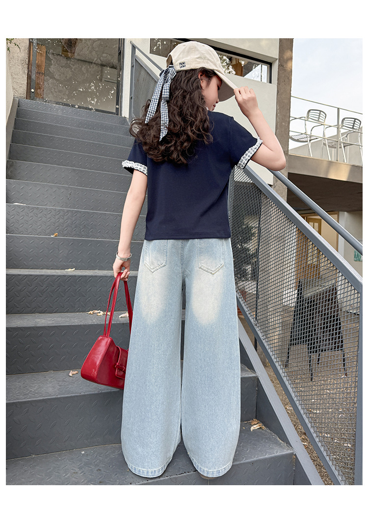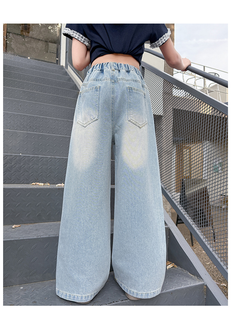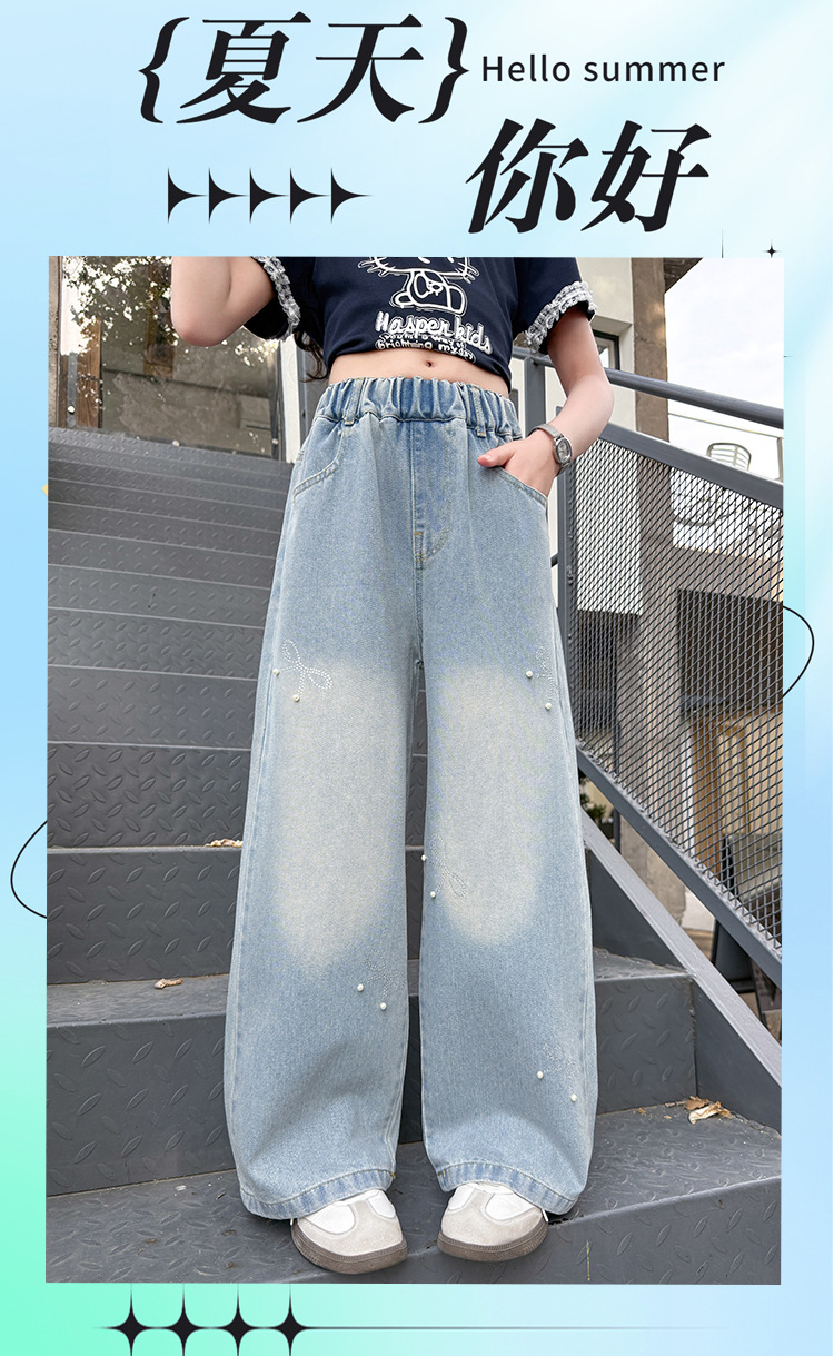 여아 여름 데님 팬츠 얇은 여름옷 2026 신상 아동용 스타일리쉬한 빅사이즈 여름 핫픽스 루즈핏 와이드 팬츠스토어 가기