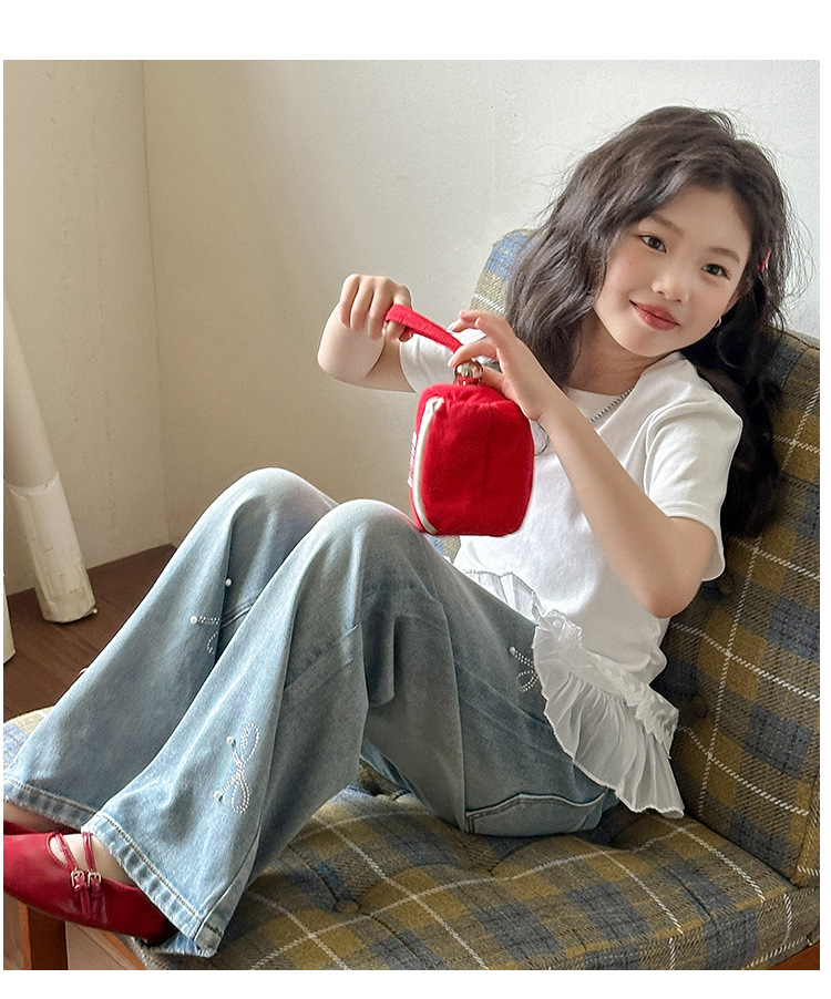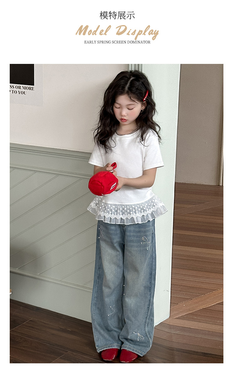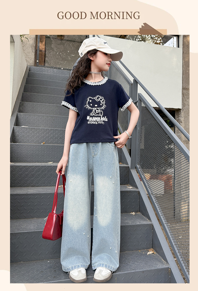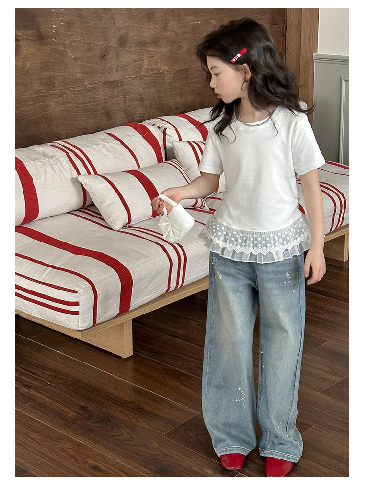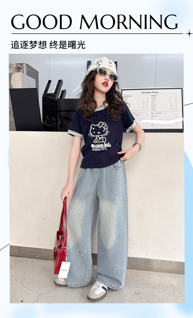 여아 여름 데님 팬츠 얇은 여름옷 2026 신상 아동용 스타일리쉬한 빅사이즈 여름 핫픽스 루즈핏 와이드 팬츠스토어 가기