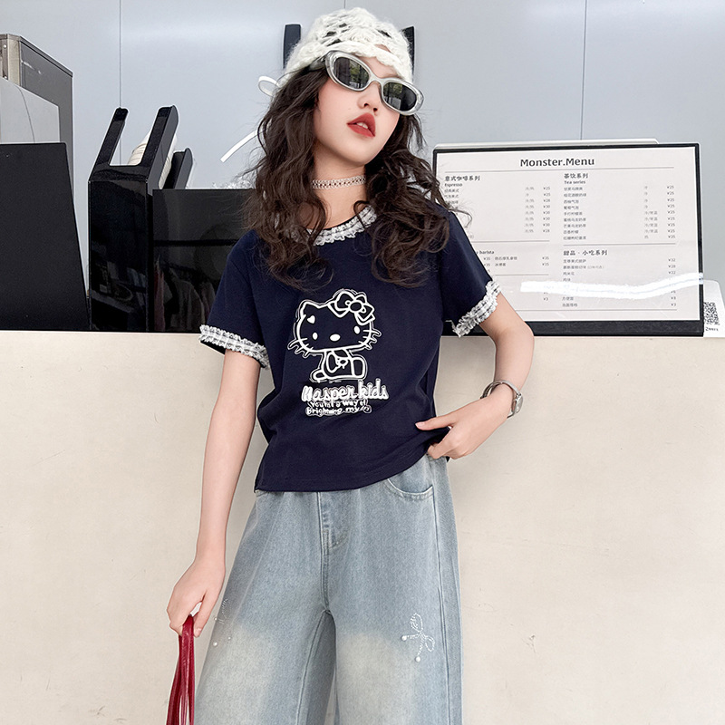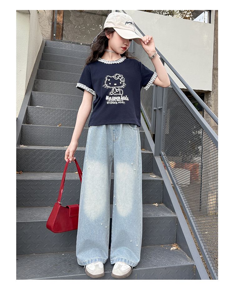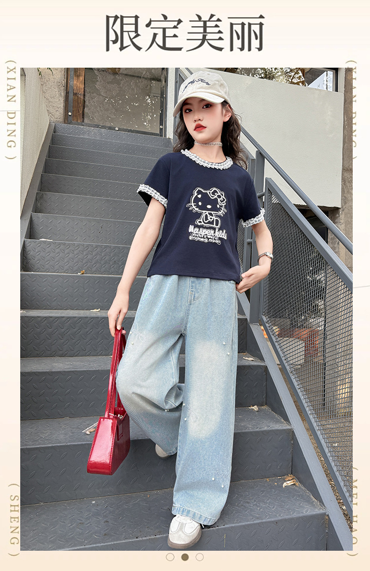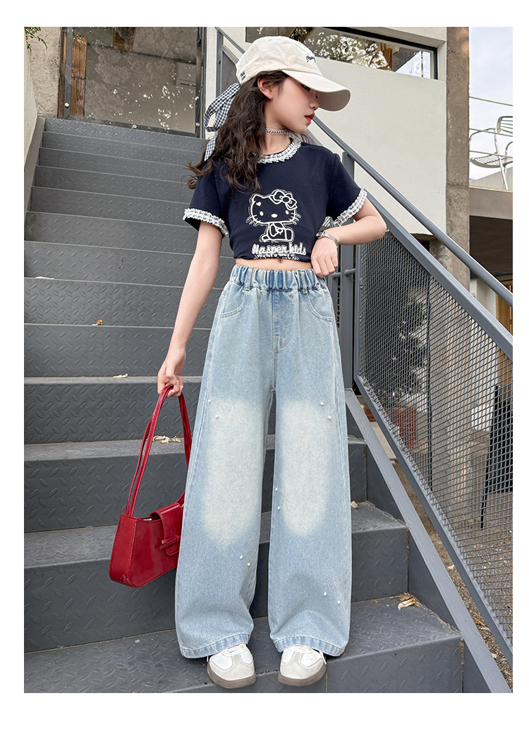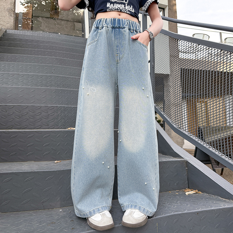 여아 여름 데님 팬츠 얇은 여름옷 2026 신상 아동용 스타일리쉬한 빅사이즈 여름 핫픽스 루즈핏 와이드 팬츠