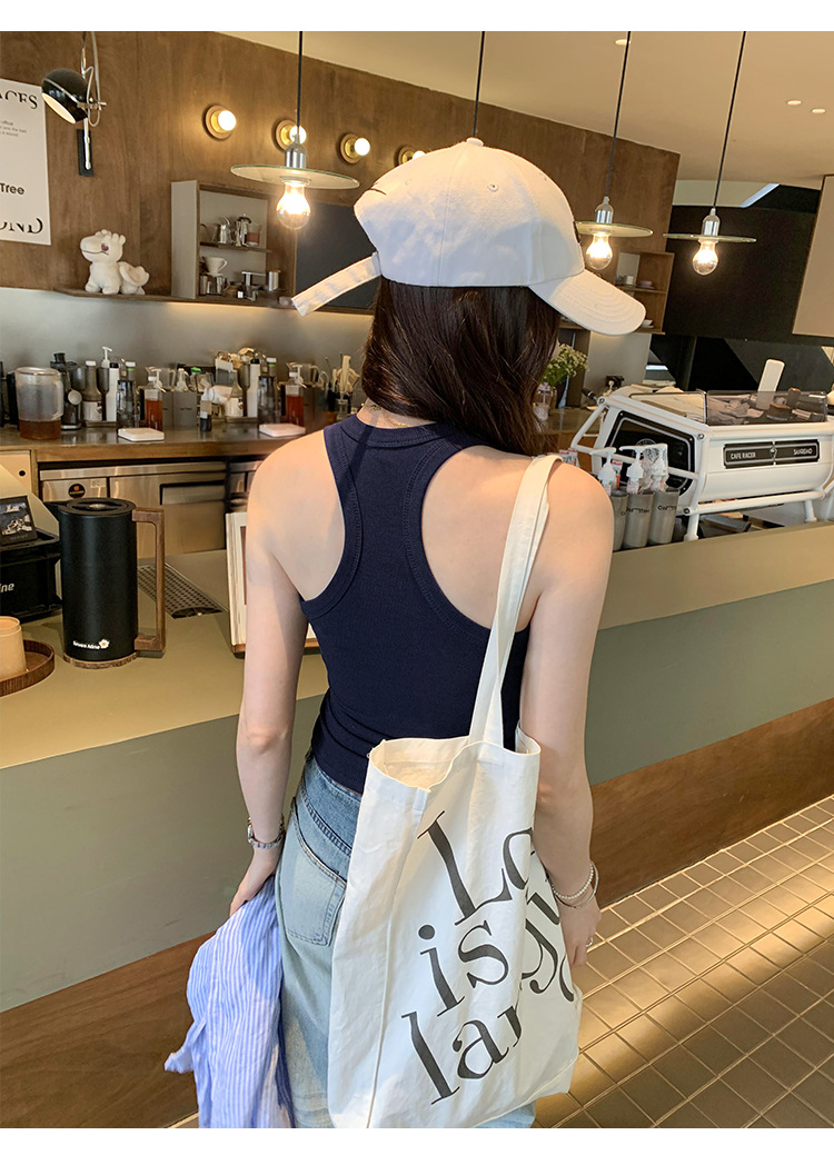 아메리칸 스타일 레트로 네이비 스레드 U-Neck I-Neck Small Camisole Women's 2025 여름 새로운 외부 착용 타이트한 허리 탑스토어 가기