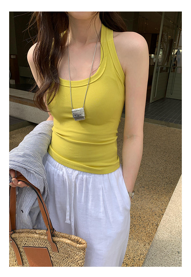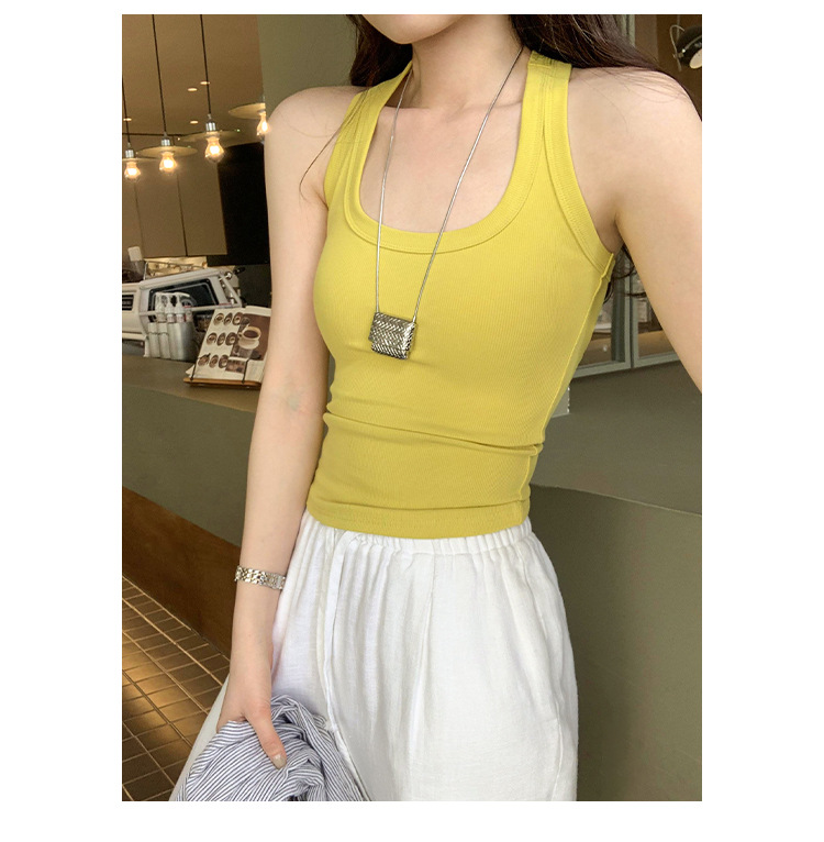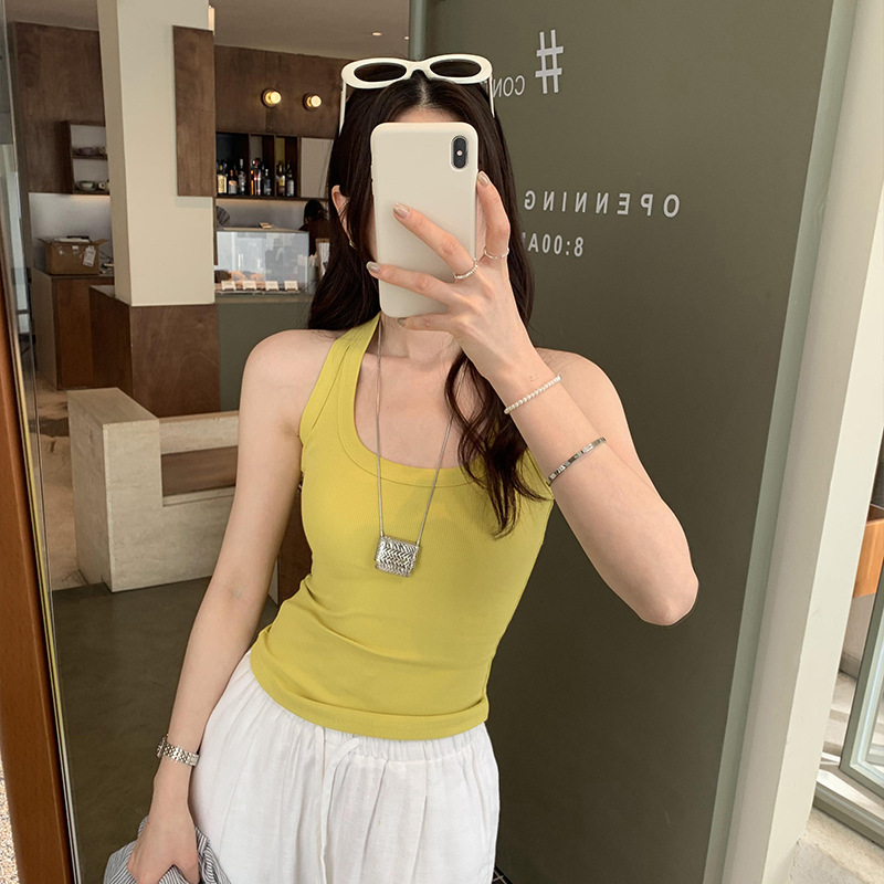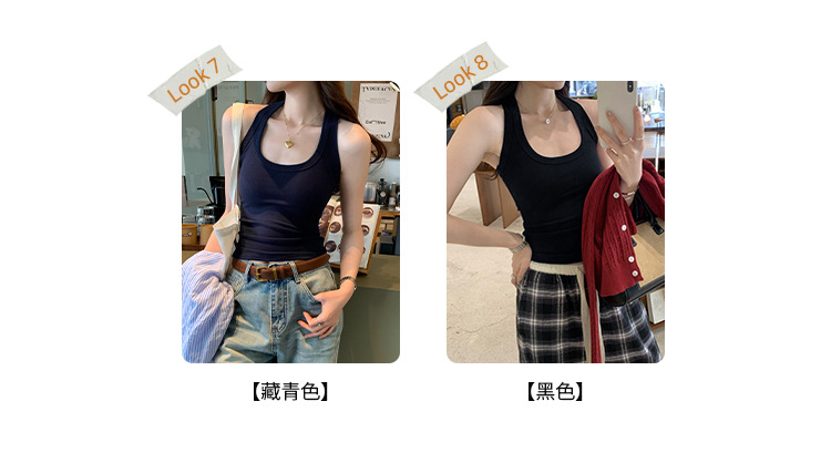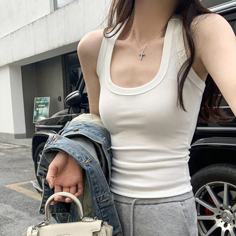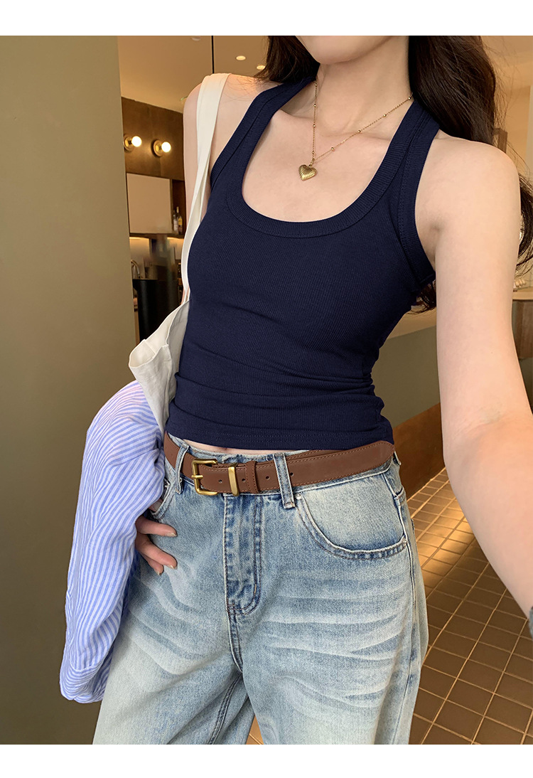 아메리칸 스타일 레트로 네이비 스레드 U-Neck I-Neck Small Camisole Women's 2025 여름 새로운 외부 착용 타이트한 허리 탑