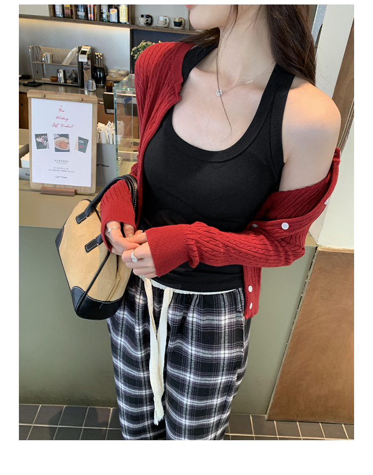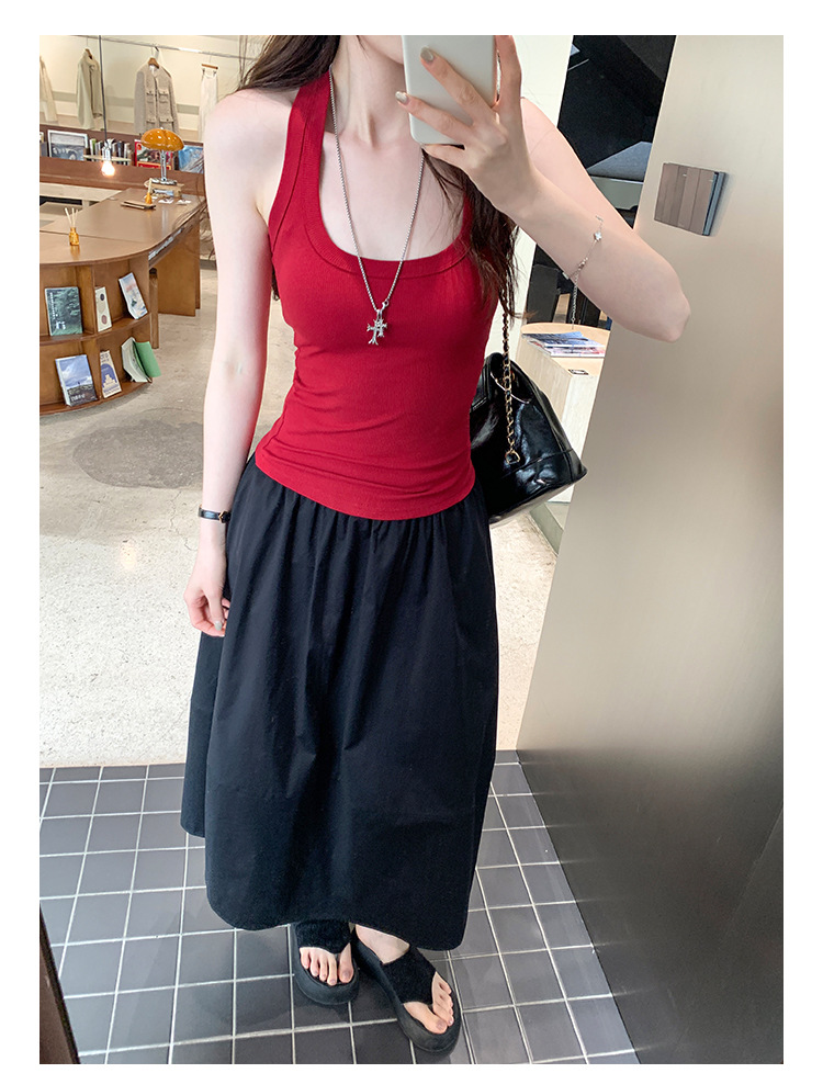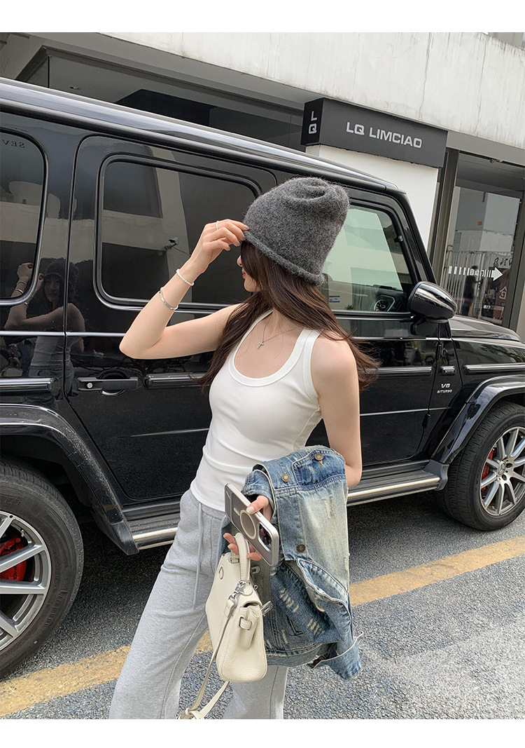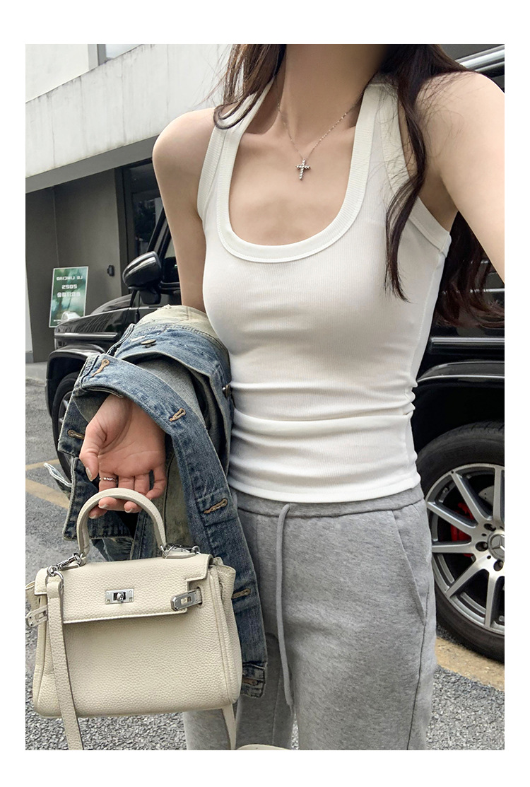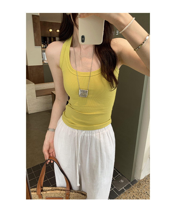 아메리칸 스타일 레트로 네이비 스레드 U-Neck I-Neck Small Camisole Women's 2025 여름 새로운 외부 착용 타이트한 허리 탑