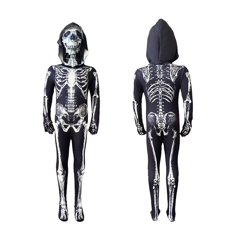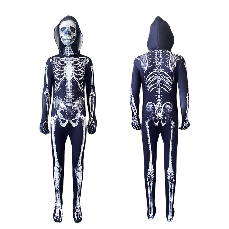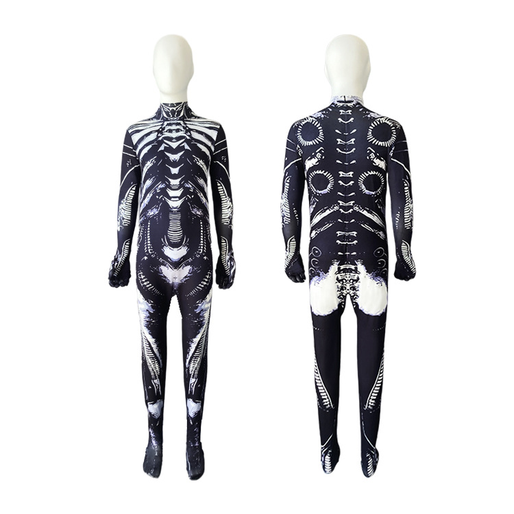 2025년 신상품 어린이용 해골 점프수트 밀크 실크 통기성 할로윈 코스프레 의상 트렌드