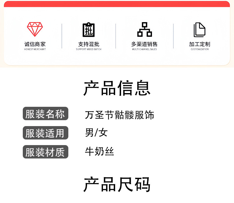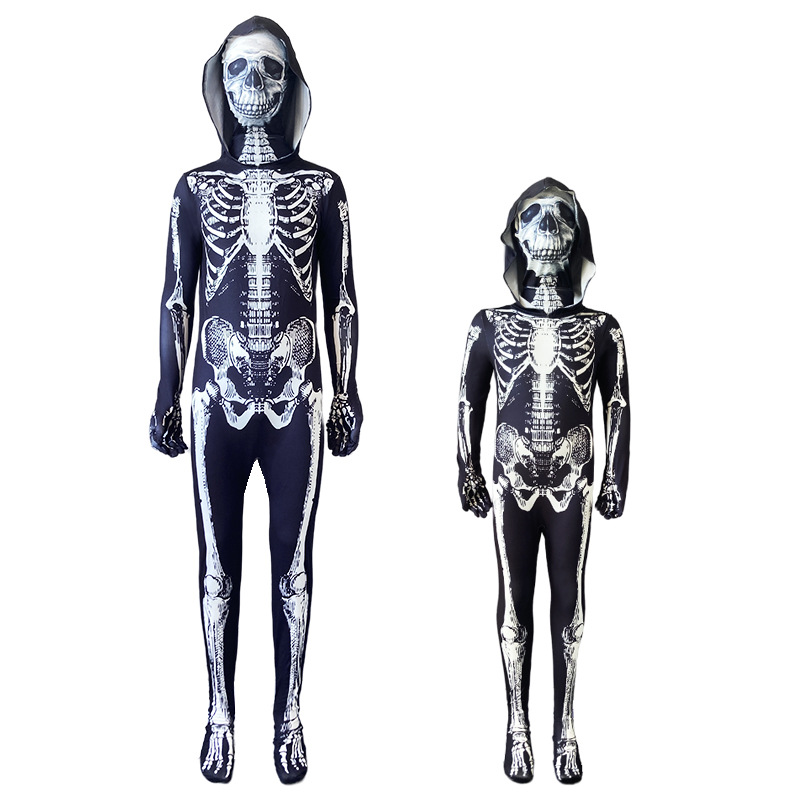 2025년 신상품 어린이용 해골 점프수트 밀크 실크 통기성 할로윈 코스프레 의상 트렌드스토어 가기