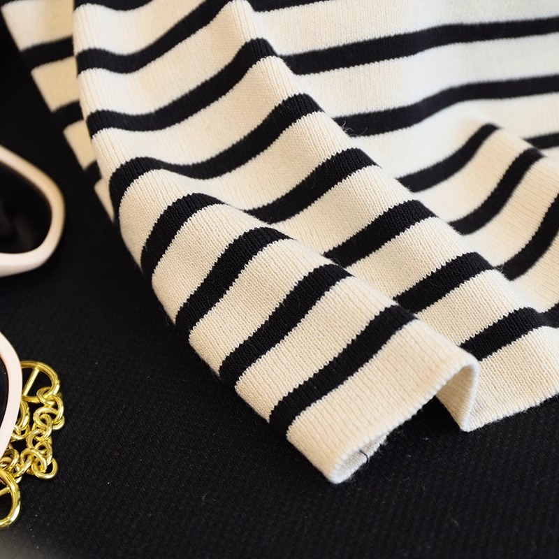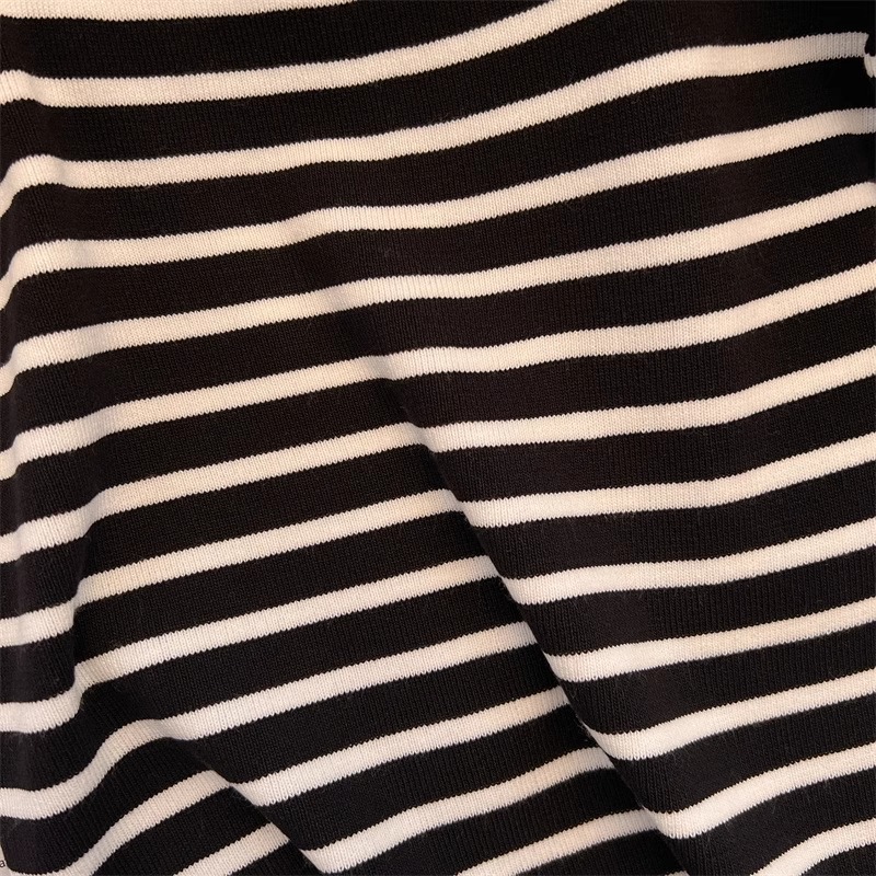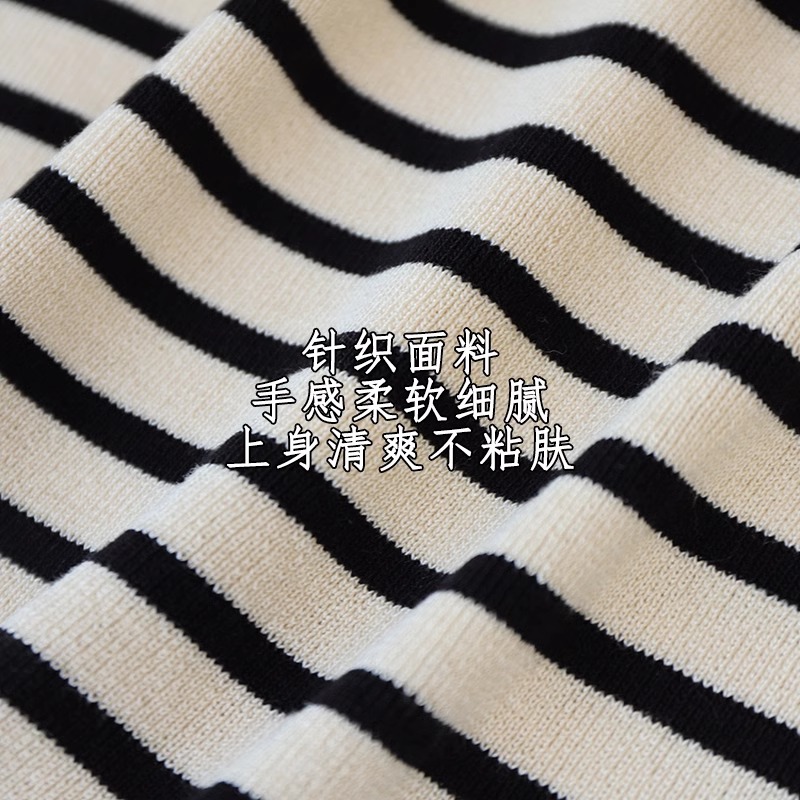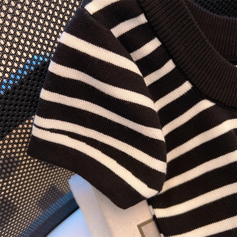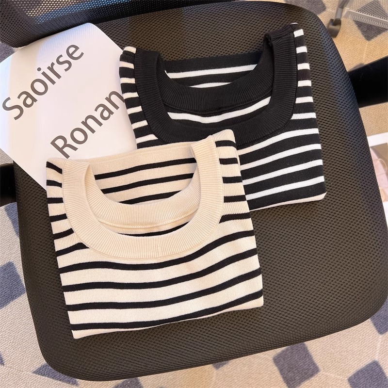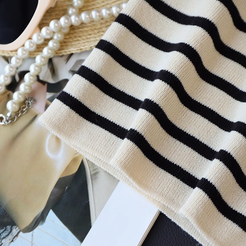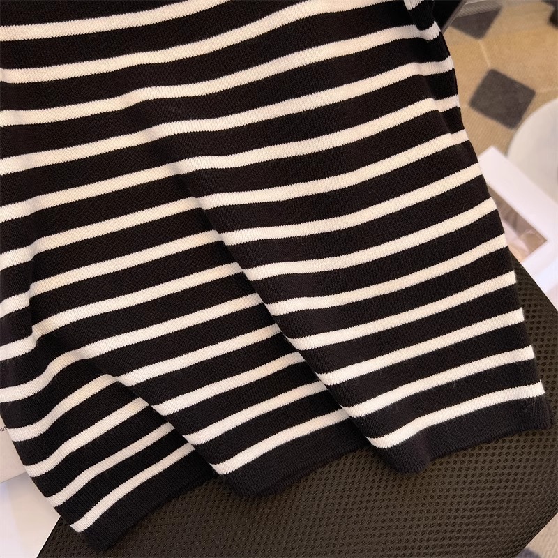 흑백 줄무늬 어깨 반팔 티셔츠 여성용 여름 얇은 프랑스 하이 엔드 니트 셔츠 작은 탑 여성 의류스토어 가기