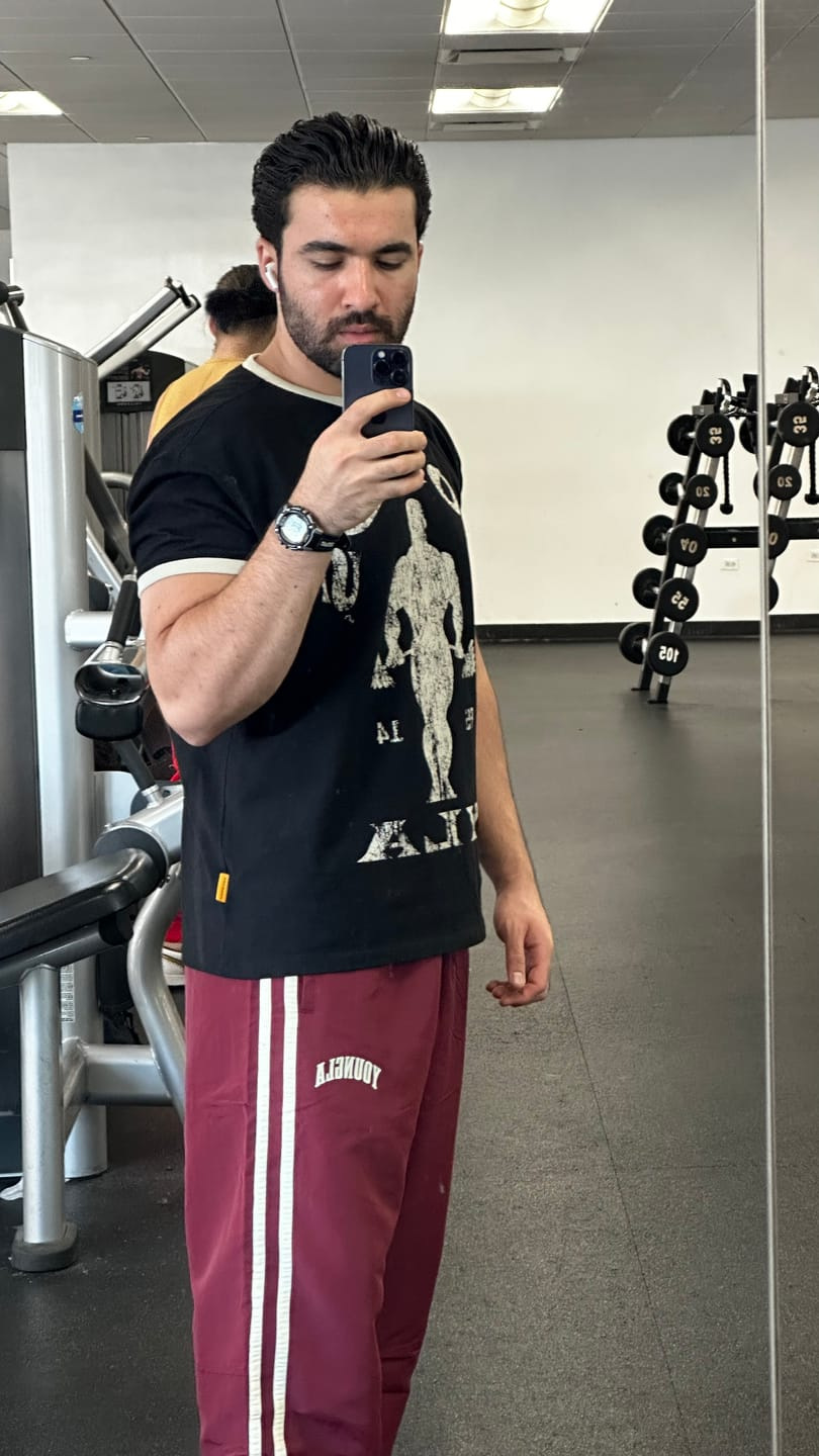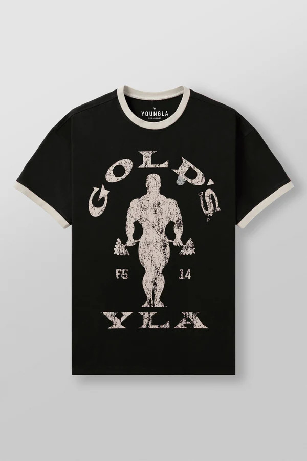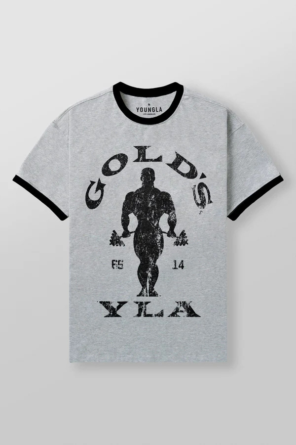 새로운 미국 YOUNGLA 공동 브랜드 GOLDSGYM 스포츠 반팔 복고풍 피트니스 캐주얼 코튼 탑 티셔츠 남성용스토어 가기