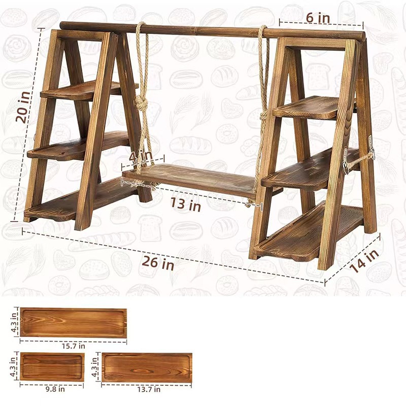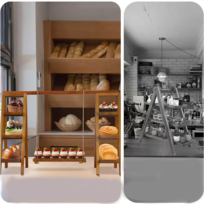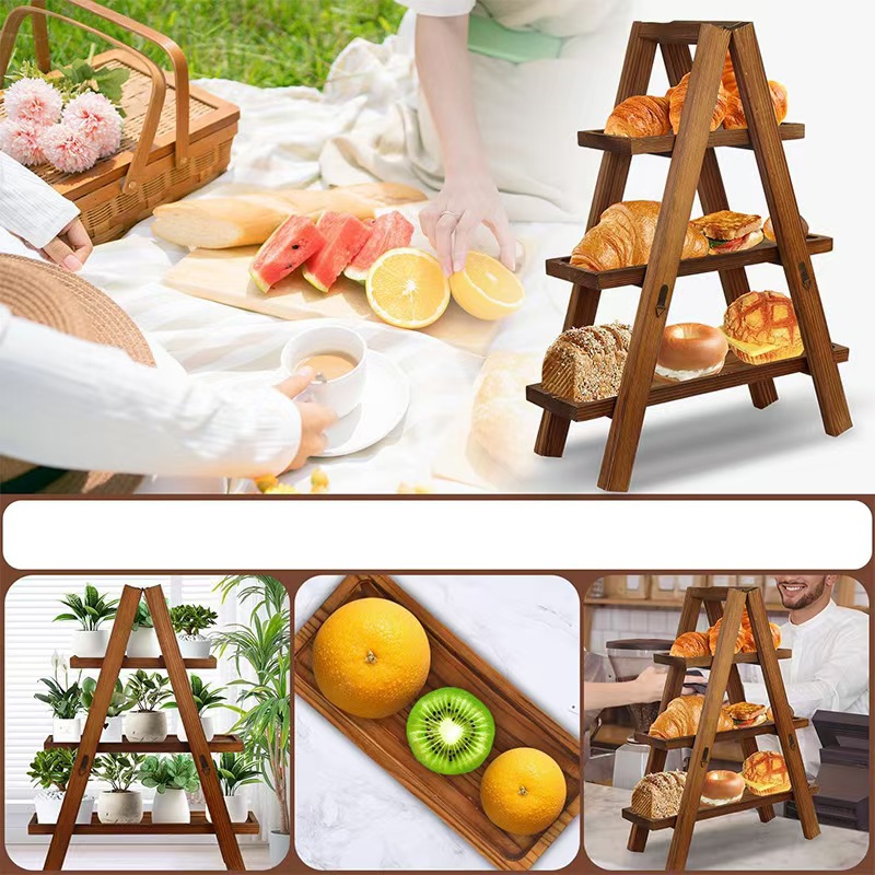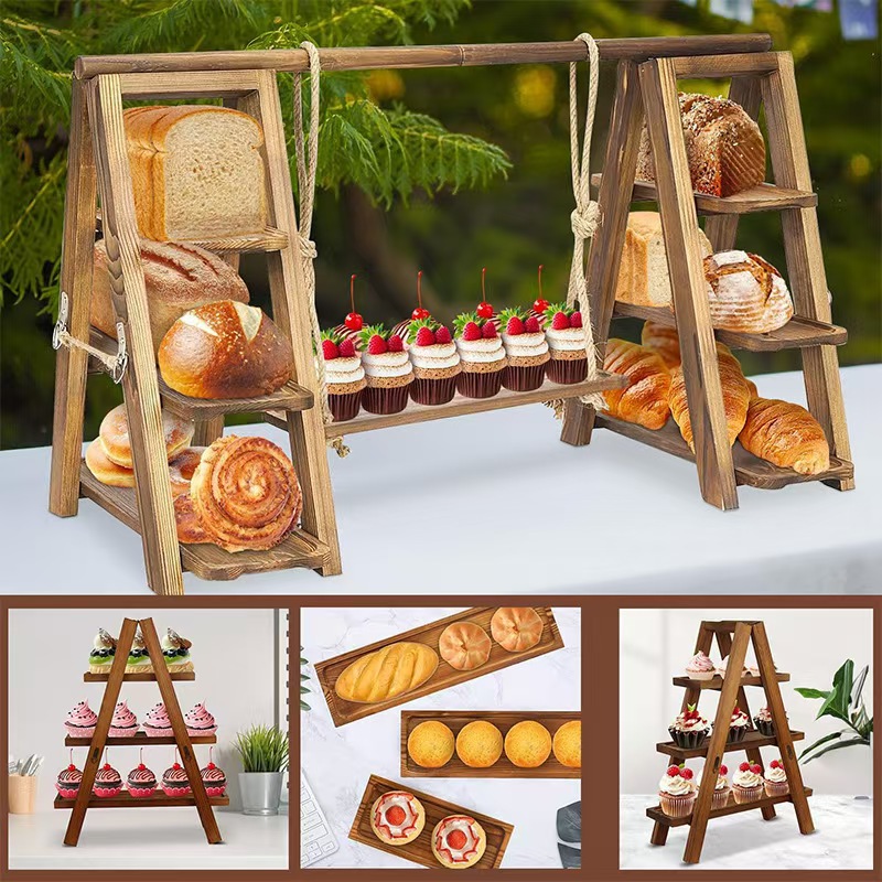 크리 에이 티브 나무 트레이 케이크 스낵 스탠드 데스크탑 단단한 나무 컵케익 디스플레이 스탠드 야외 파티 디저트 트레이스토어 가기