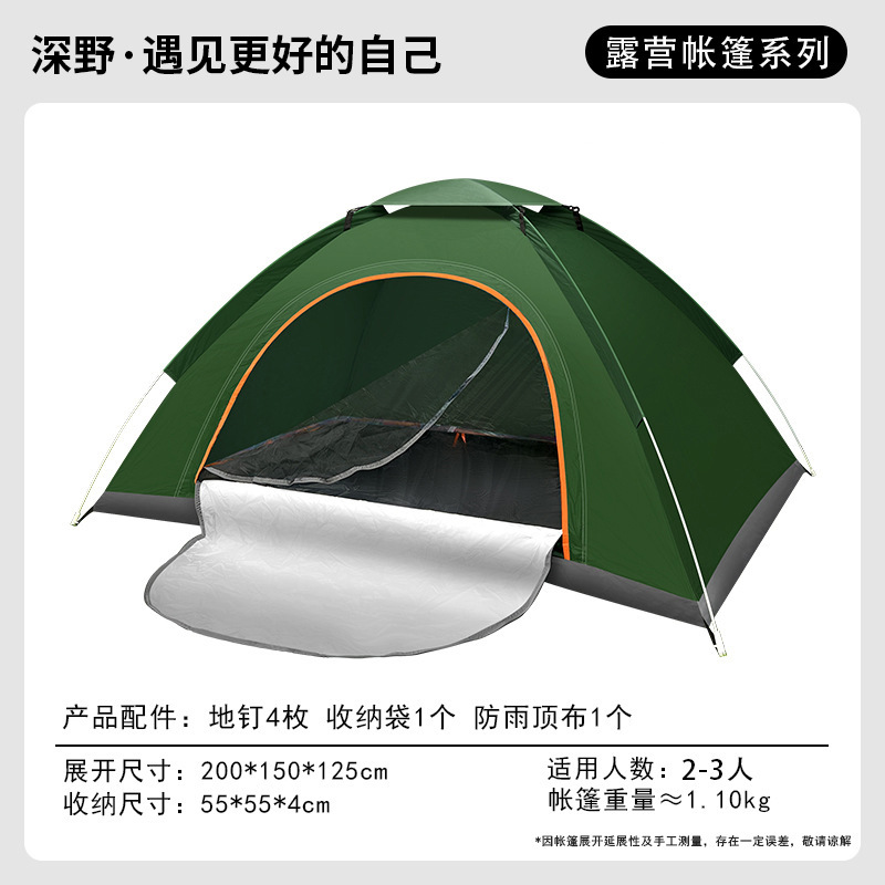 • 2~3인용 퀵오픈 텐트, 단일 도어 + 채광창 - 진한 녹색(상단 커버 포함)