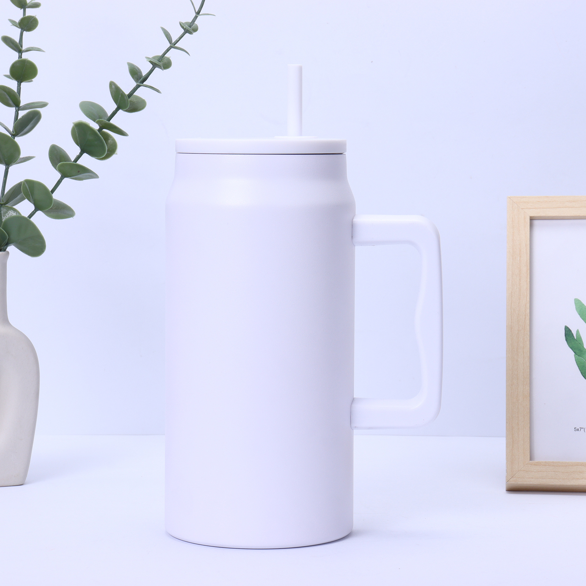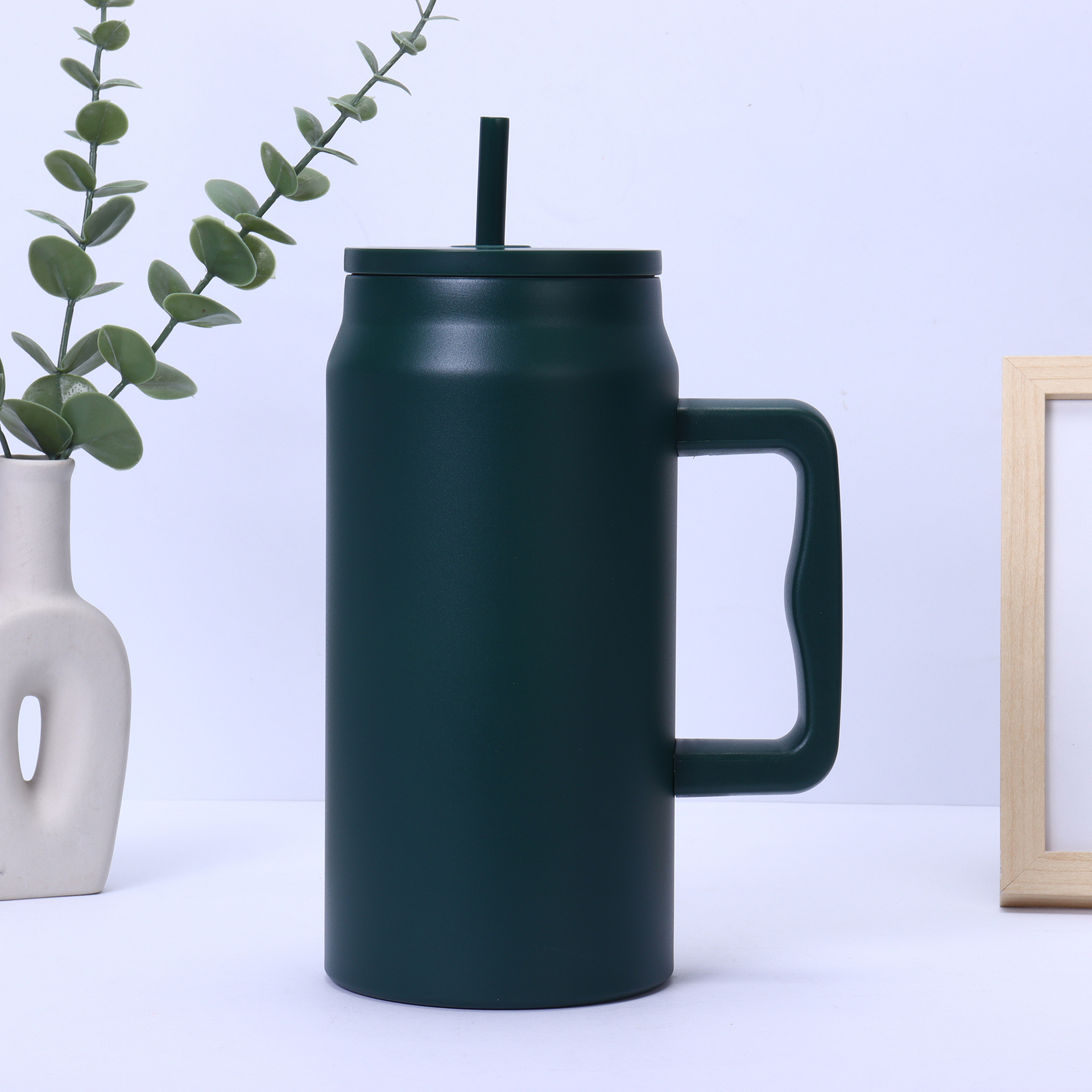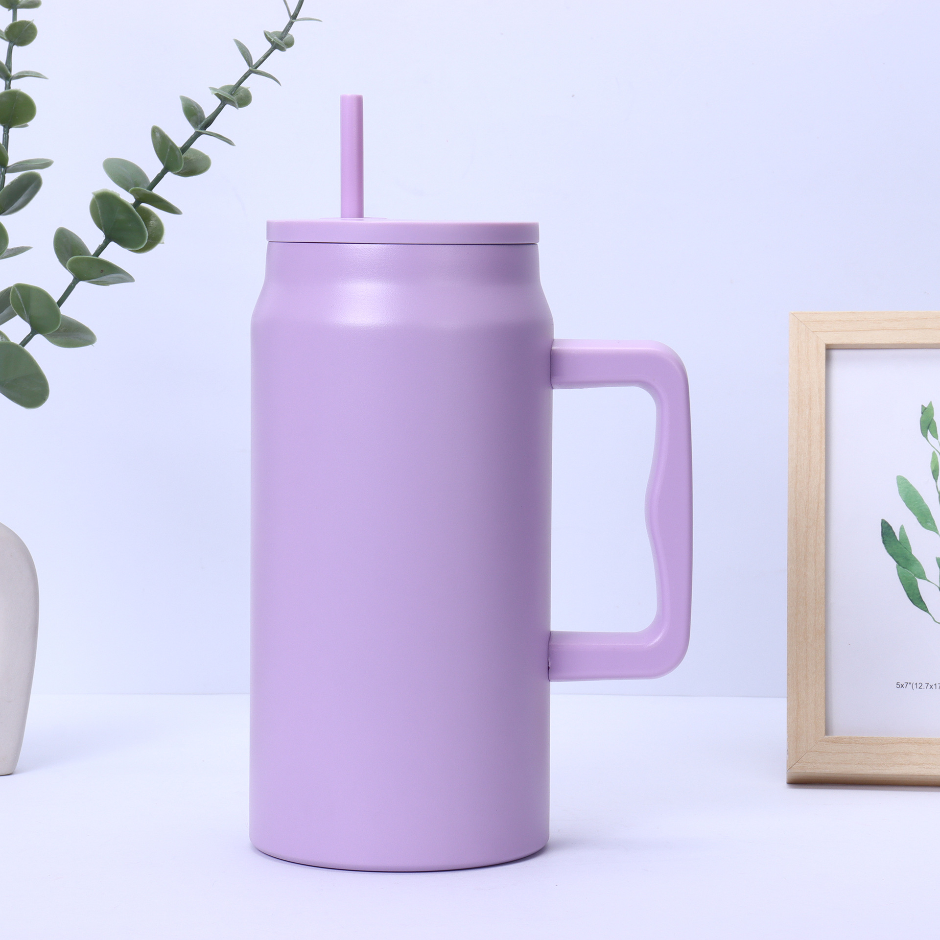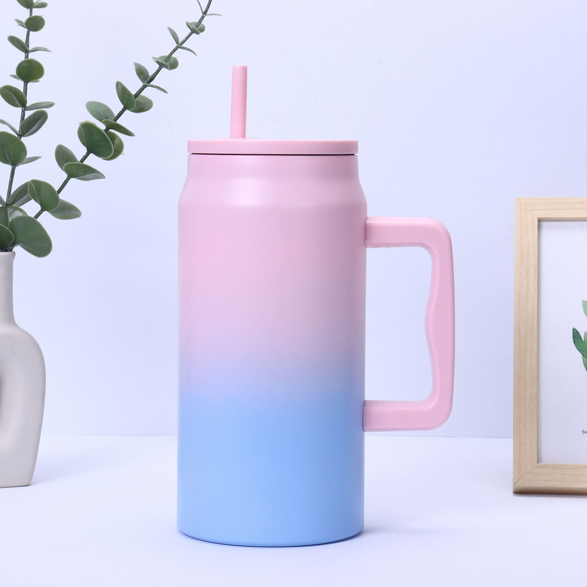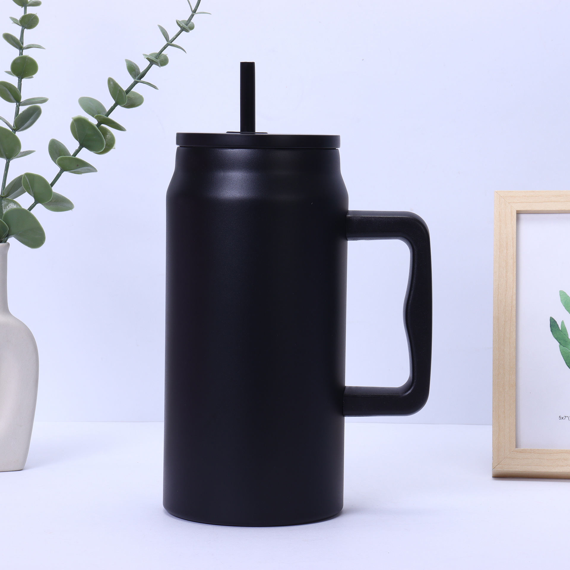 304 스테인레스 스틸 보온병 컵 50oz 대용량 휴대용 컵 맥도날드 밀짚 컵 아이스 컵 핸들 자동차 컵