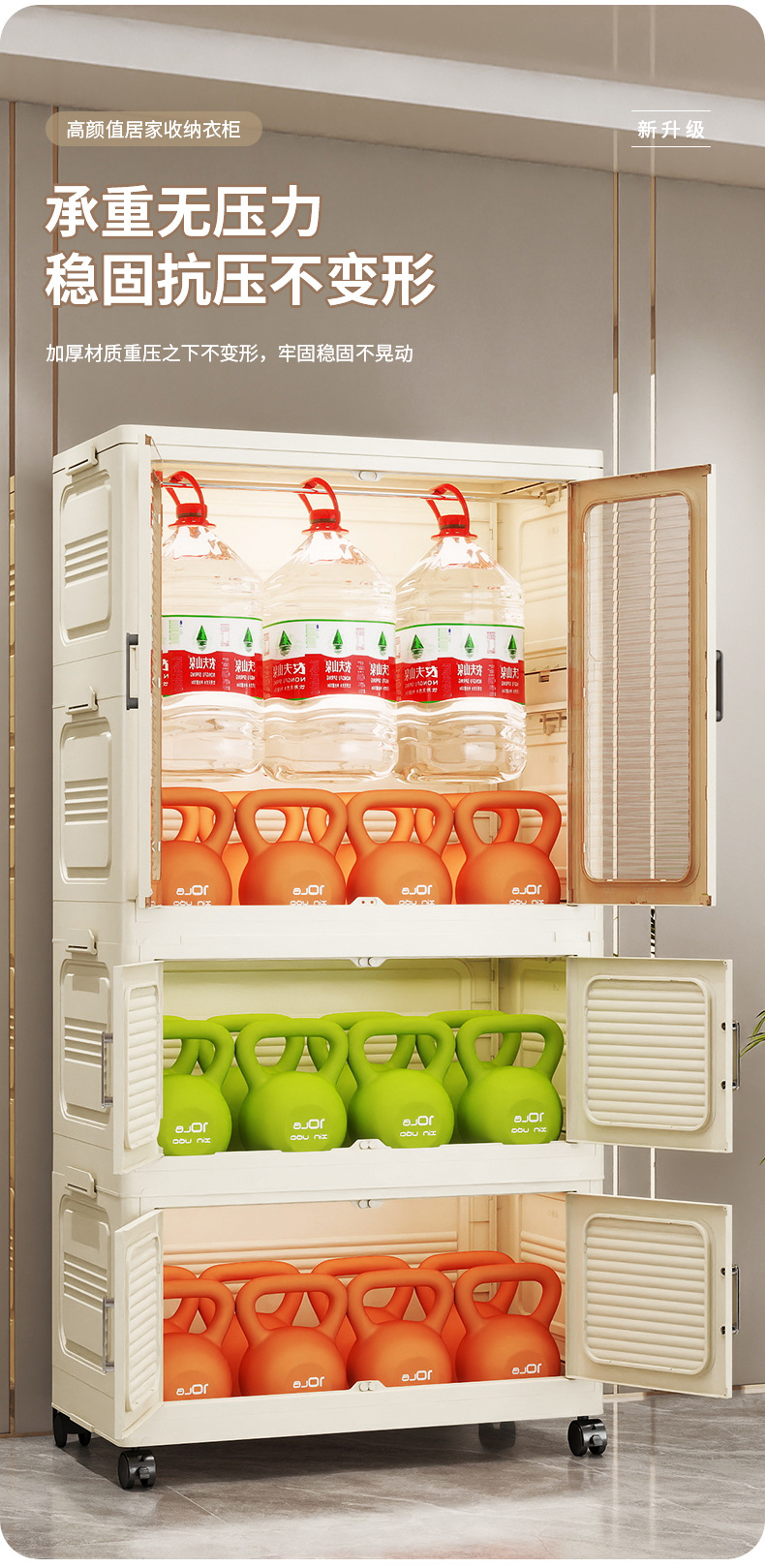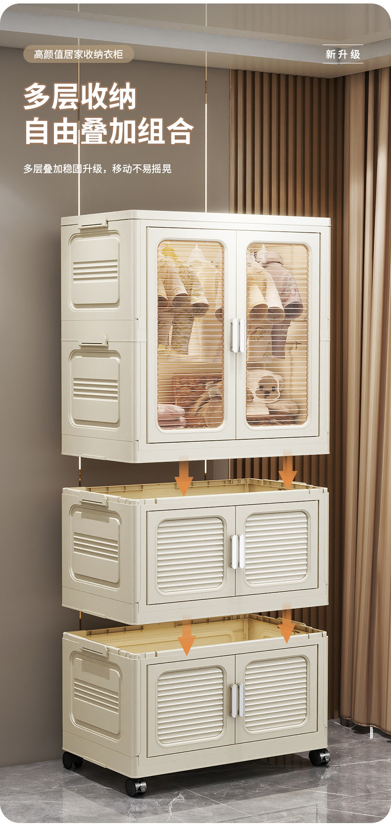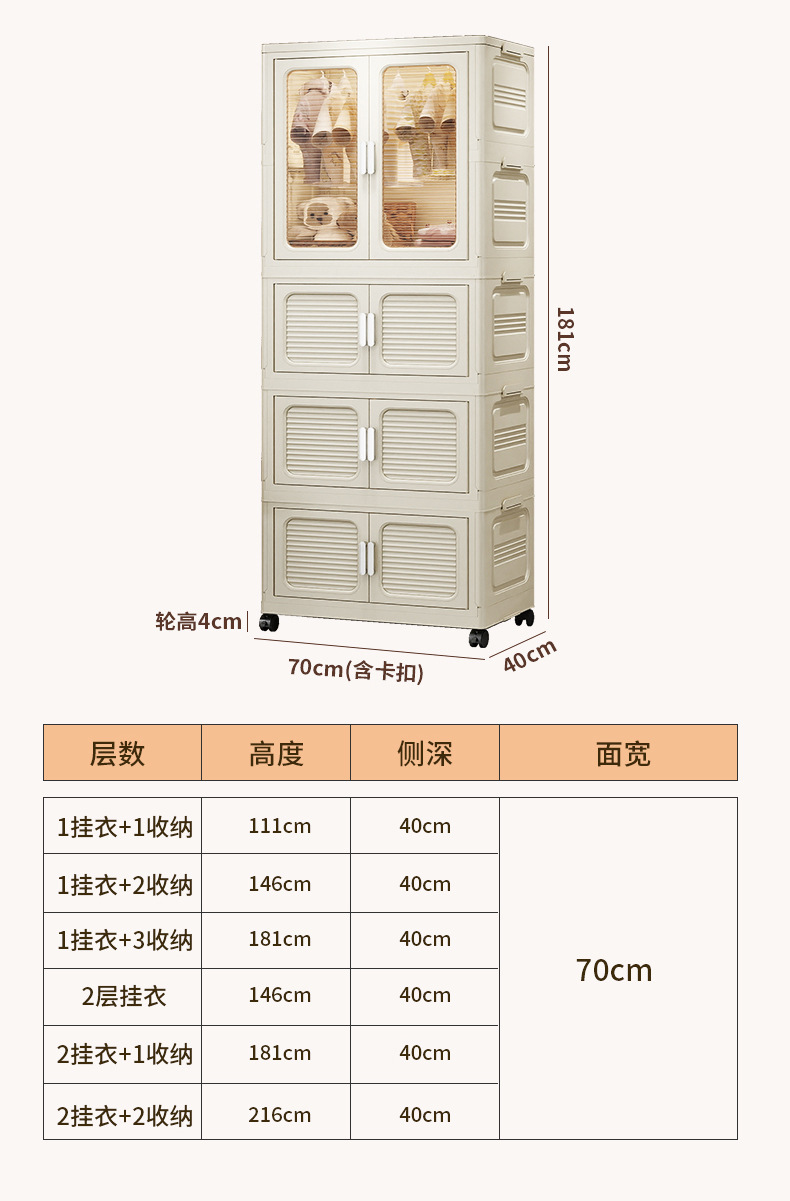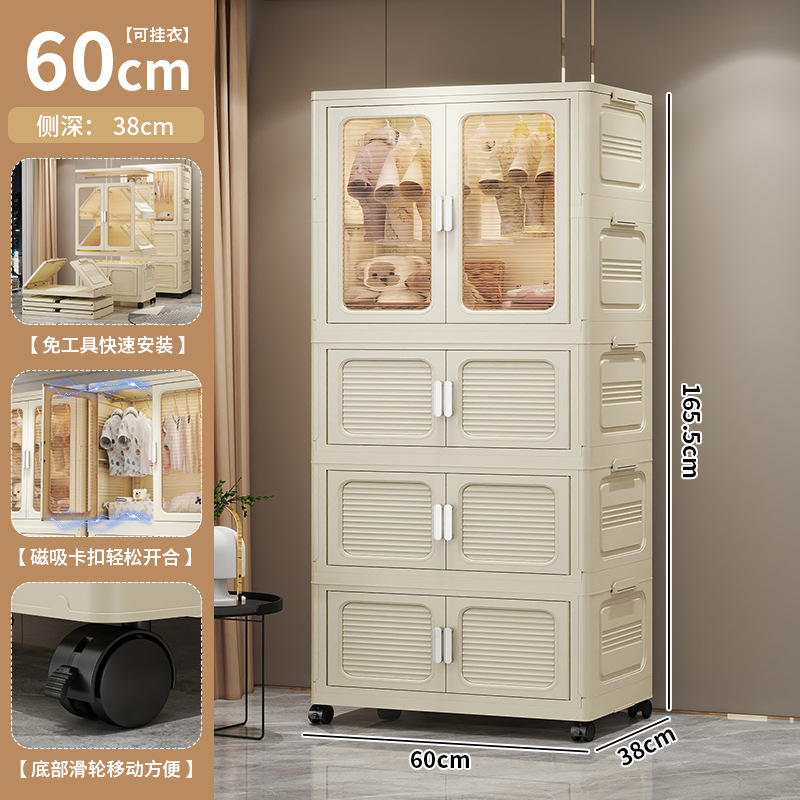 설치가 필요 없는 두꺼운 옷 걸이형 접이식 플라스틱 보관 캐비닛 가정용 침실 계층화 된 아동복 보관 캐비닛
