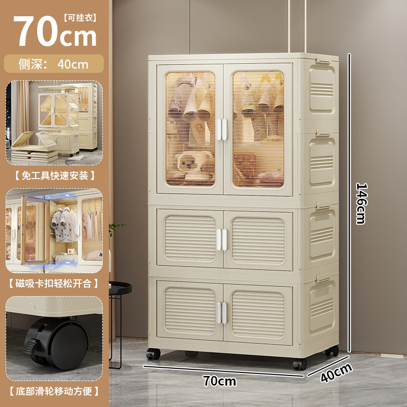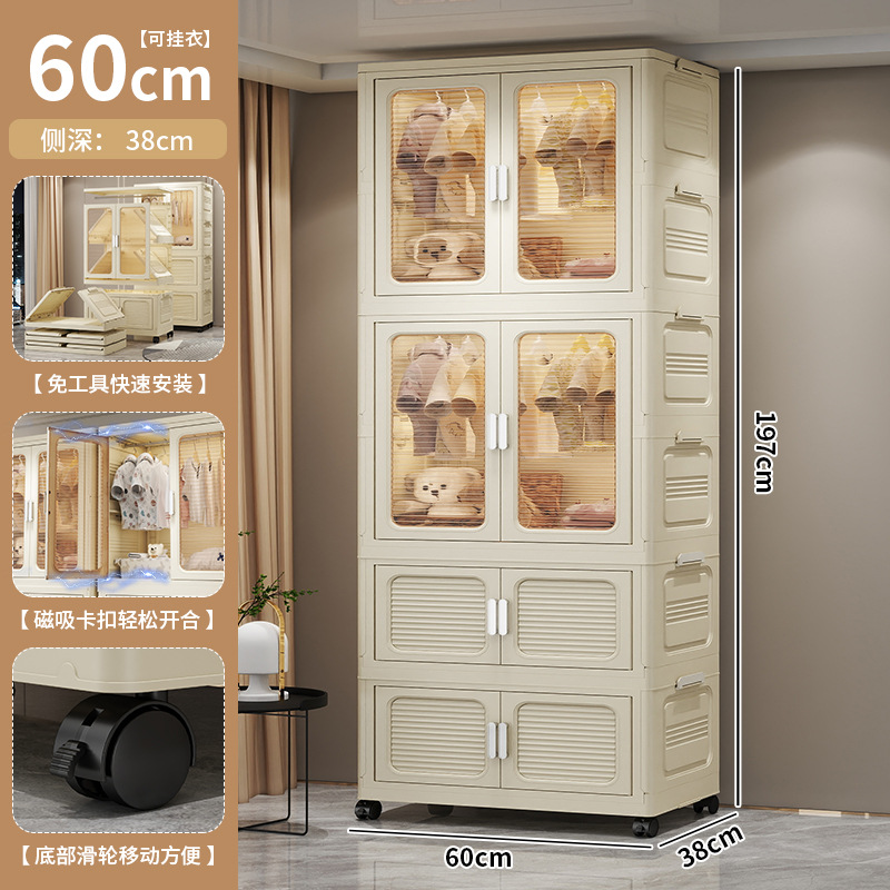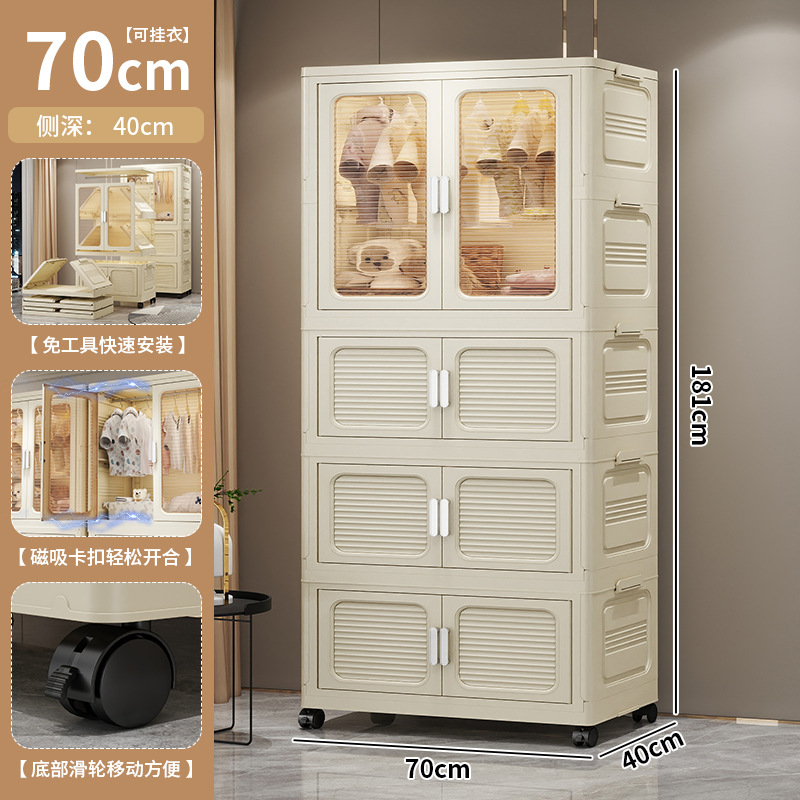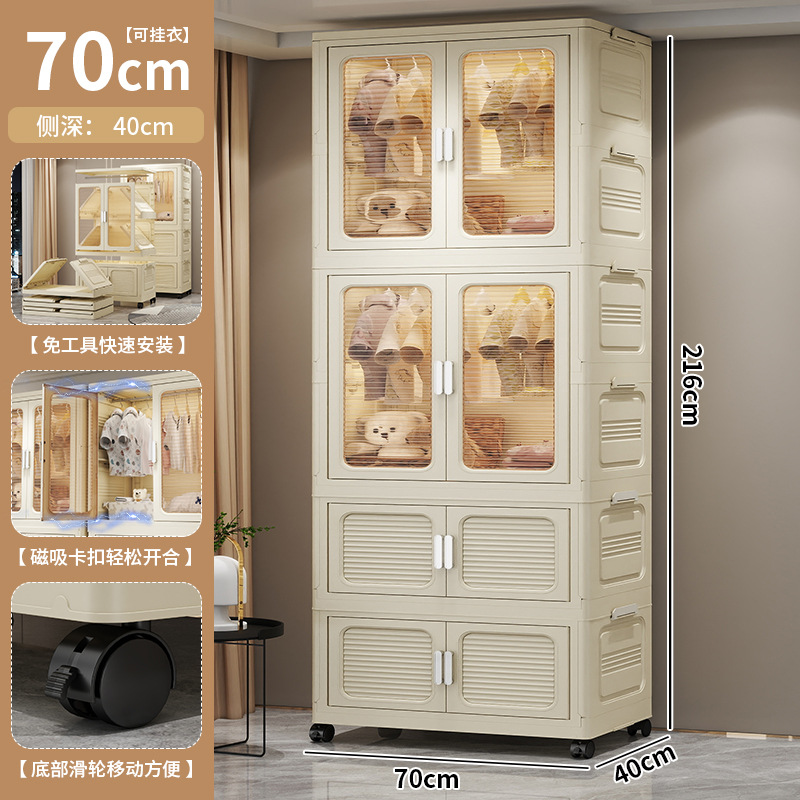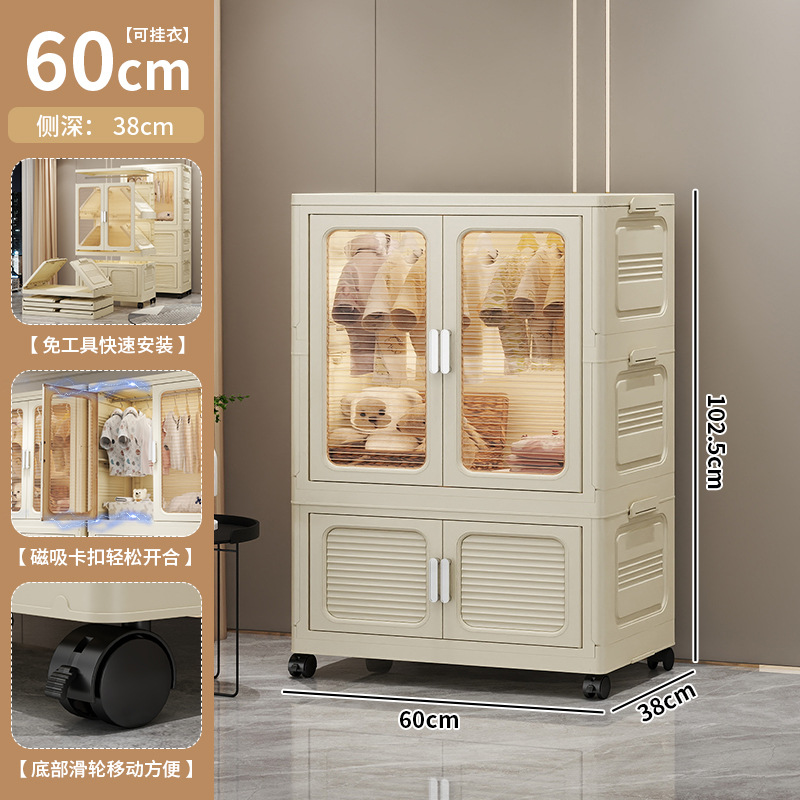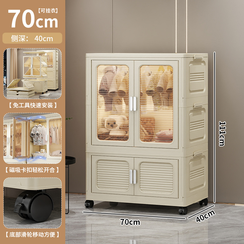 설치가 필요 없는 두꺼운 옷 걸이형 접이식 플라스틱 보관 캐비닛 가정용 침실 계층화 된 아동복 보관 캐비닛스토어 가기