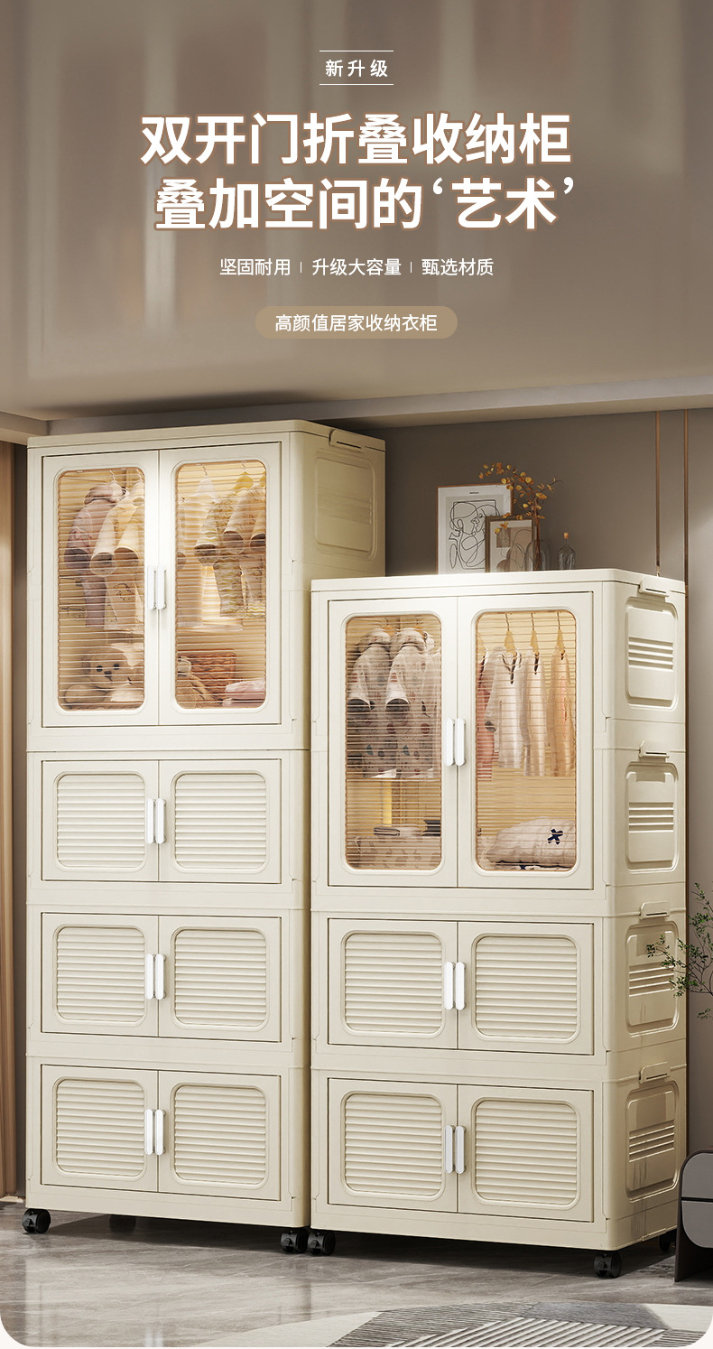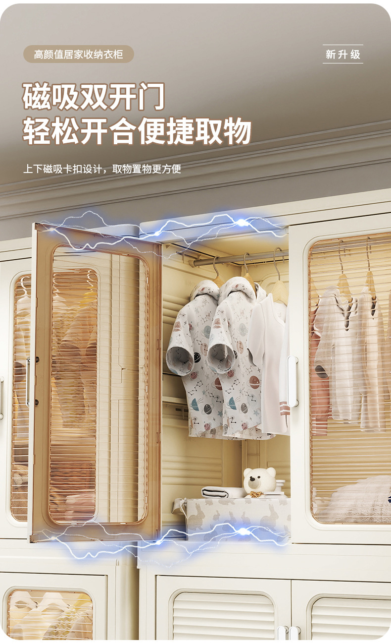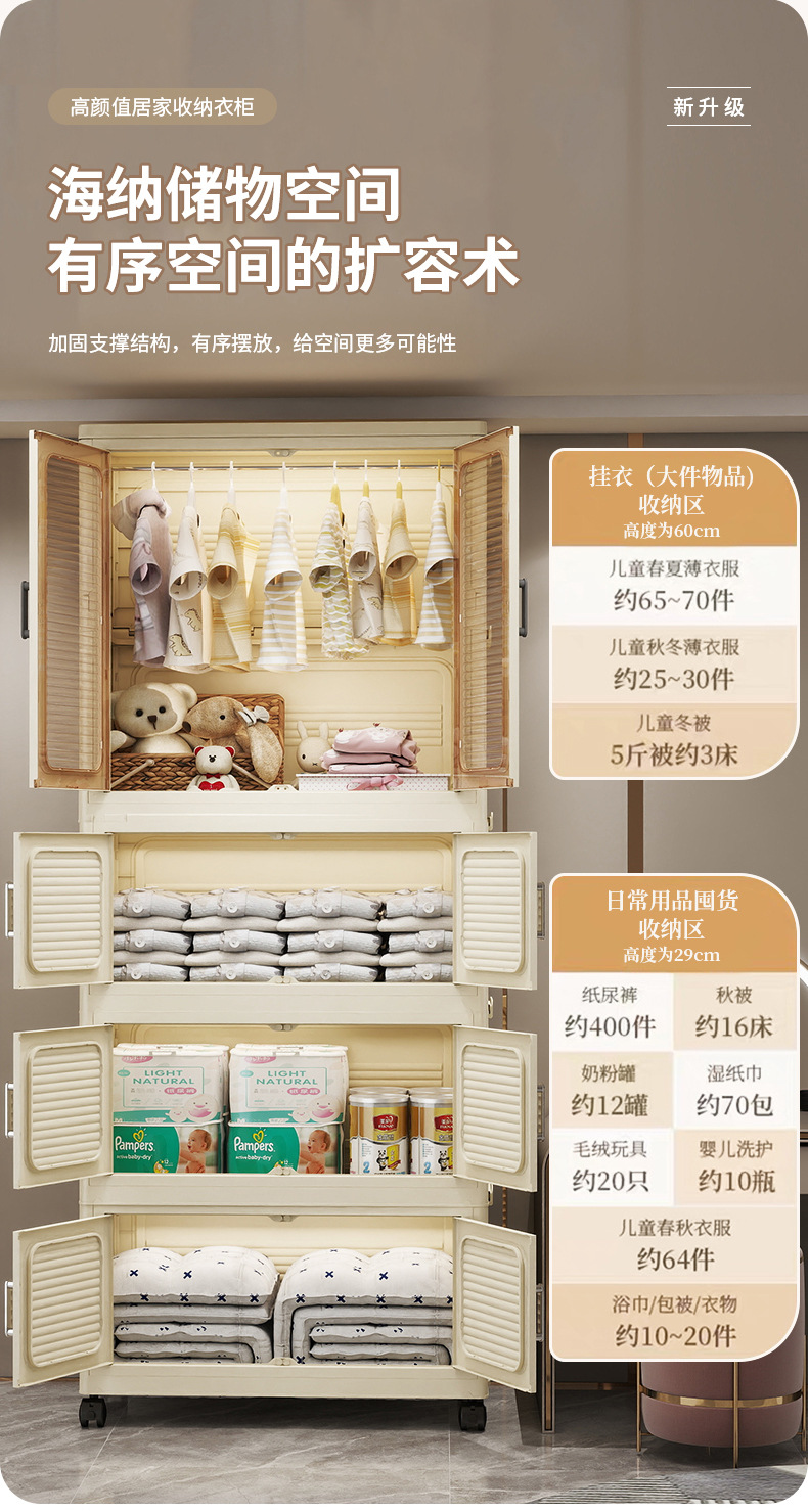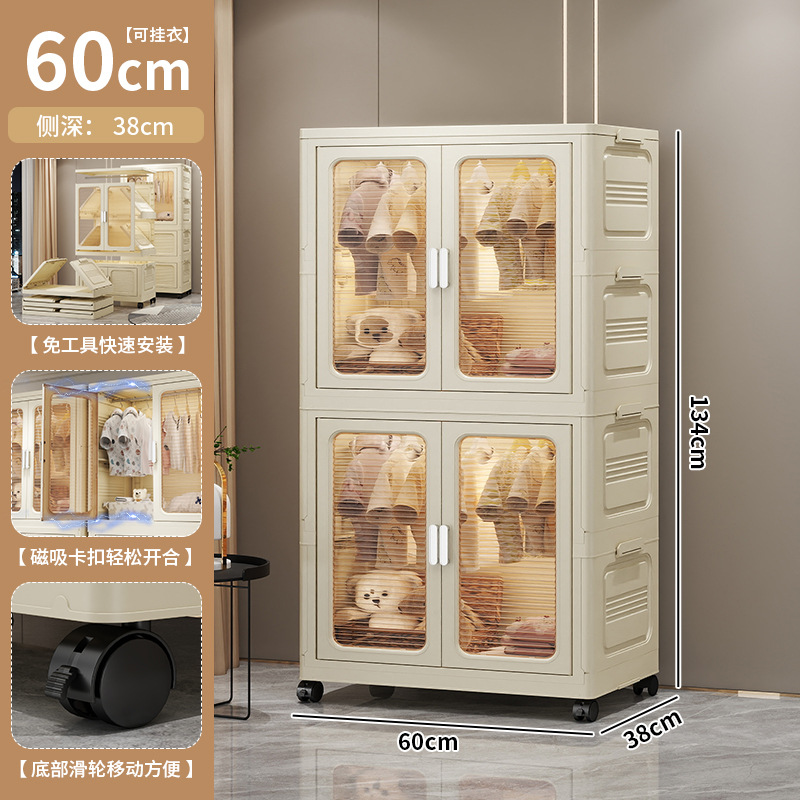 설치가 필요 없는 두꺼운 옷 걸이형 접이식 플라스틱 보관 캐비닛 가정용 침실 계층화 된 아동복 보관 캐비닛스토어 가기