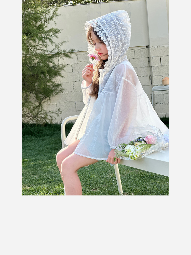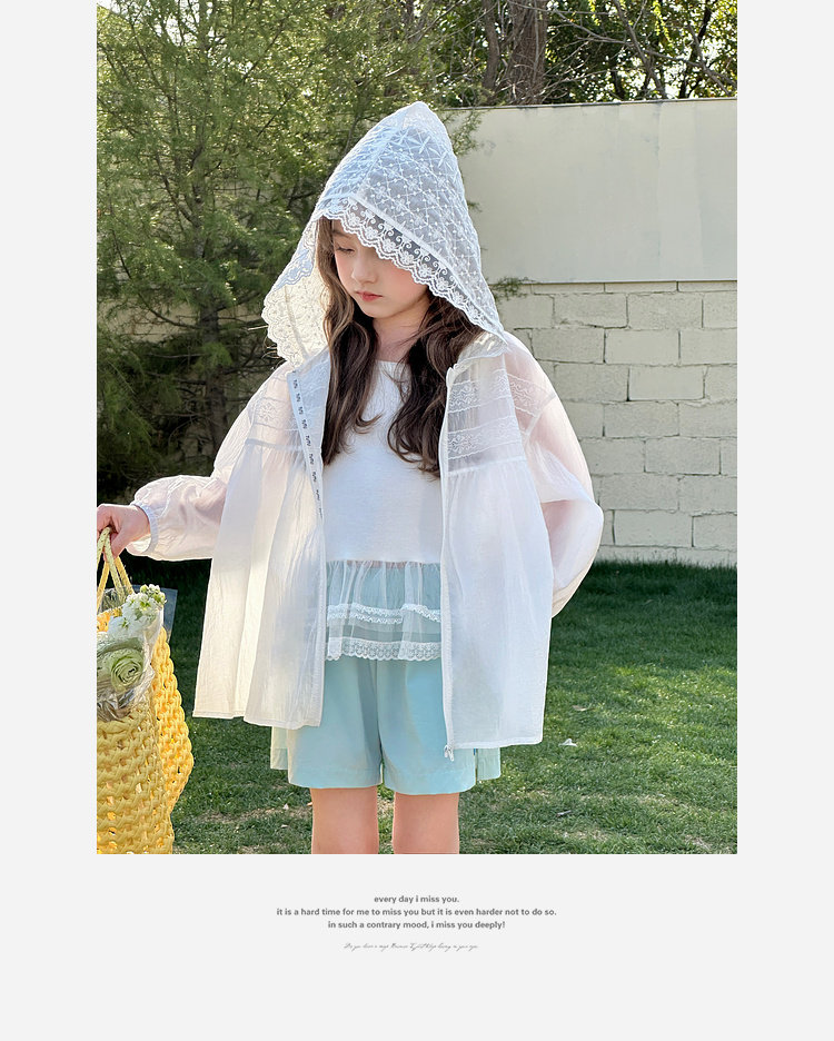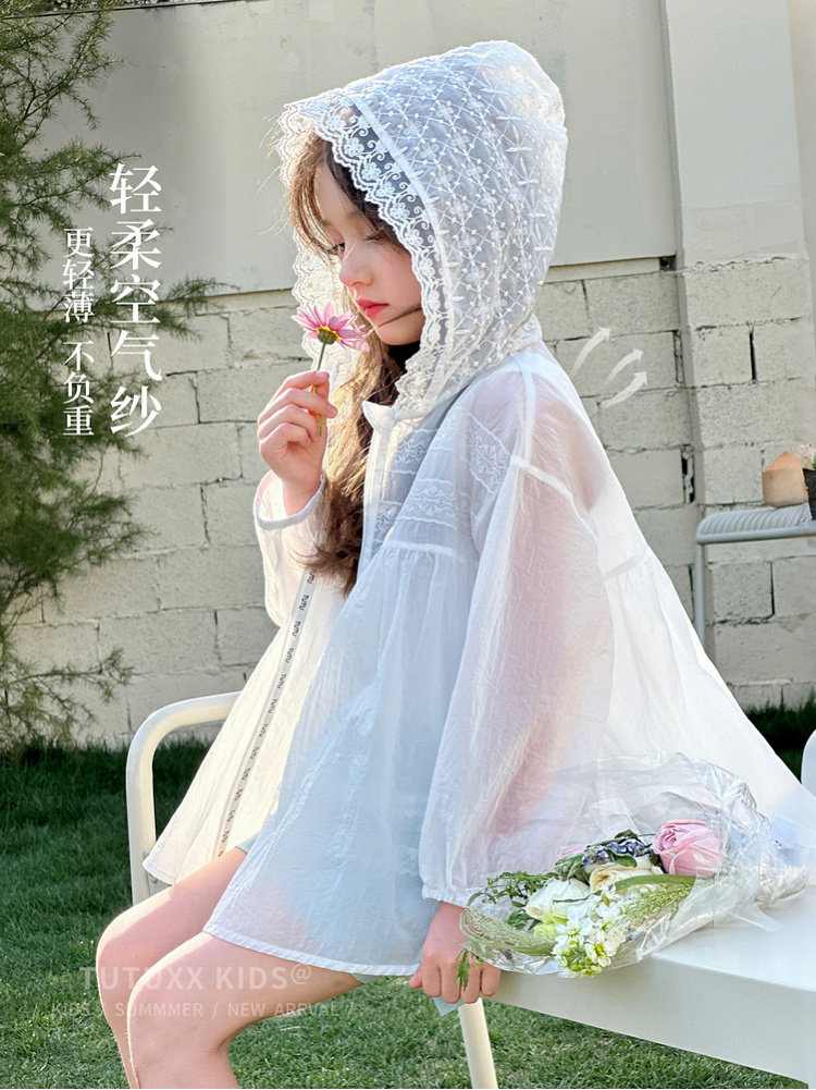 TUTU 아기 코끼리 소녀 경량 재킷 2025 새로운 어린이 여름 레이스 레이스 후드 중 큰 어린이 선 스크린 옷