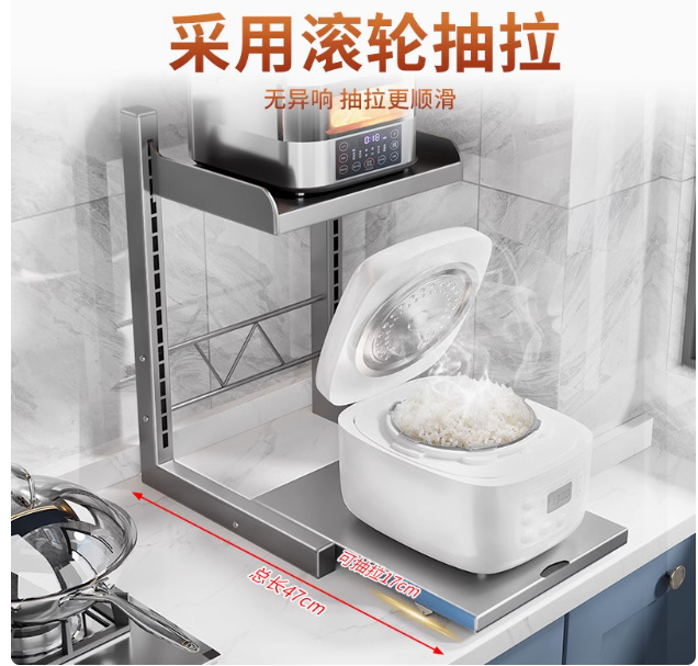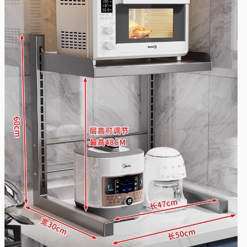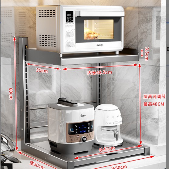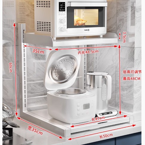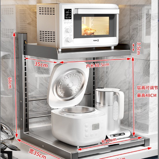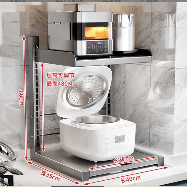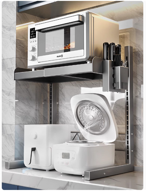 주방 보관 랙 전기 밥솥 전자 레인지 통합 저장 테이블 상단 계층화 된 다기능 전기 냄비 저장 랙