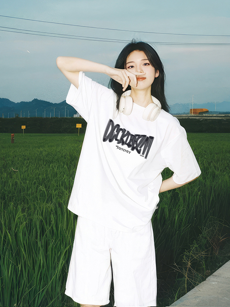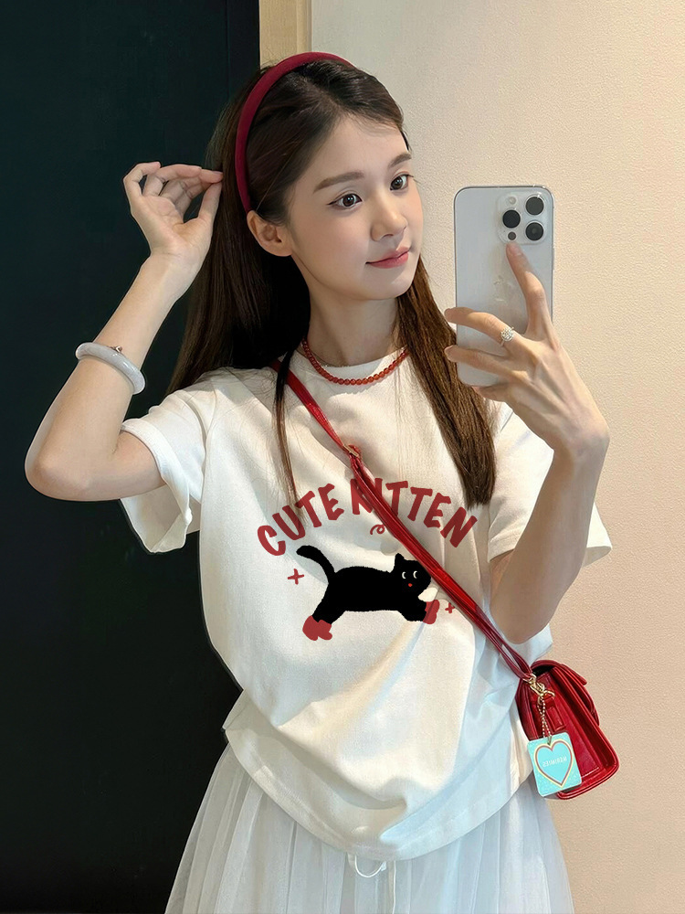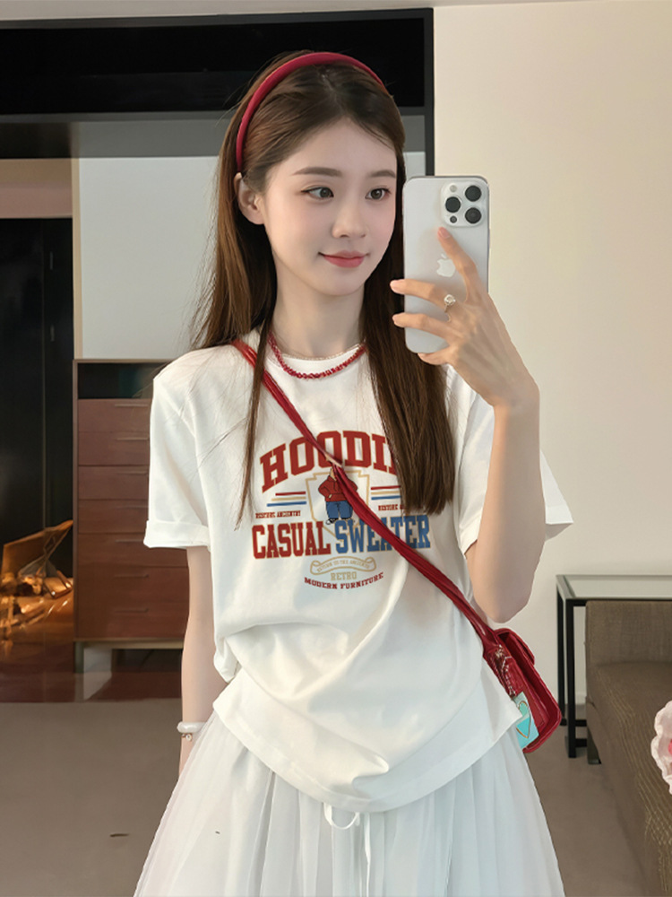 티셔츠 탑 여성의 2025 년 새로운 더운 여름 흰색면 성격 짧은 소매 인기 올해 아름다운 여성 의류스토어 가기