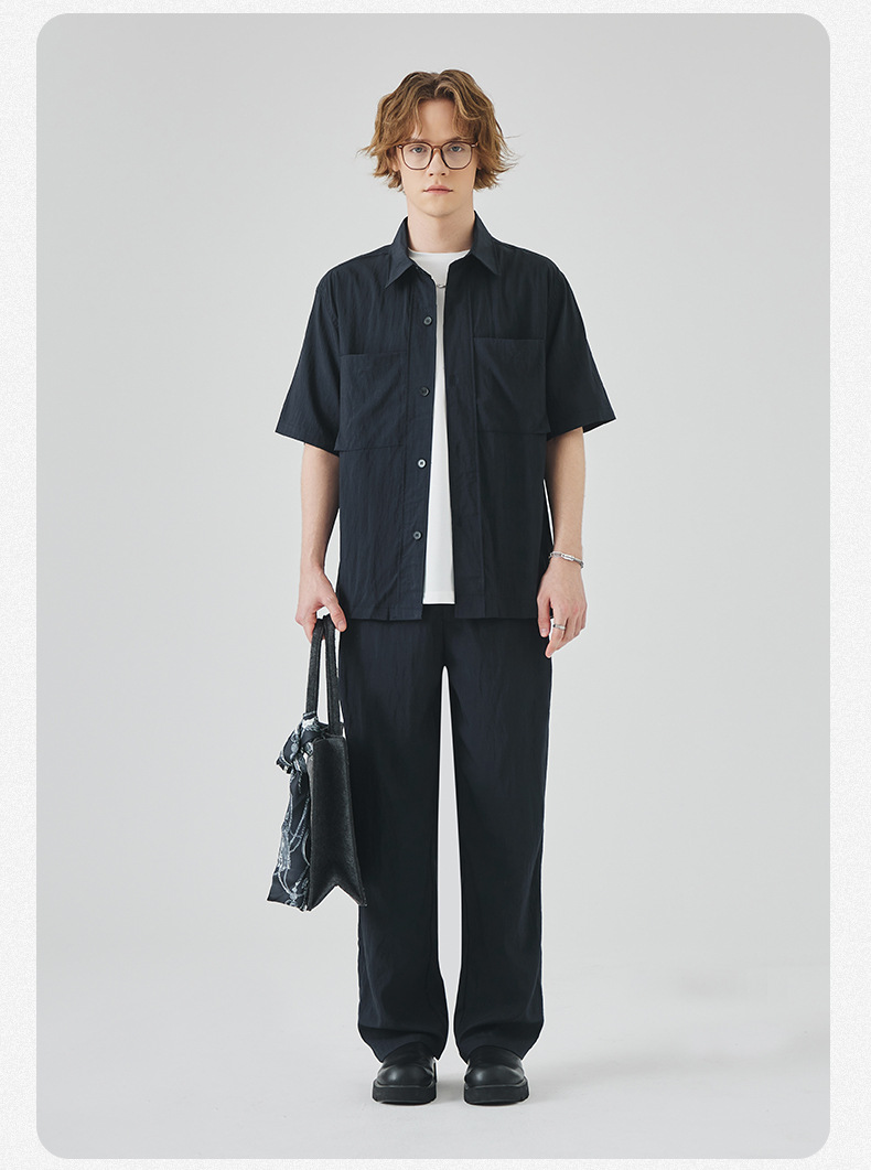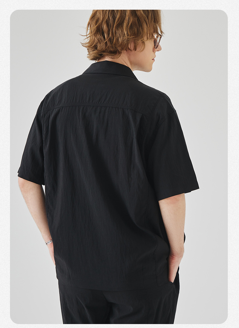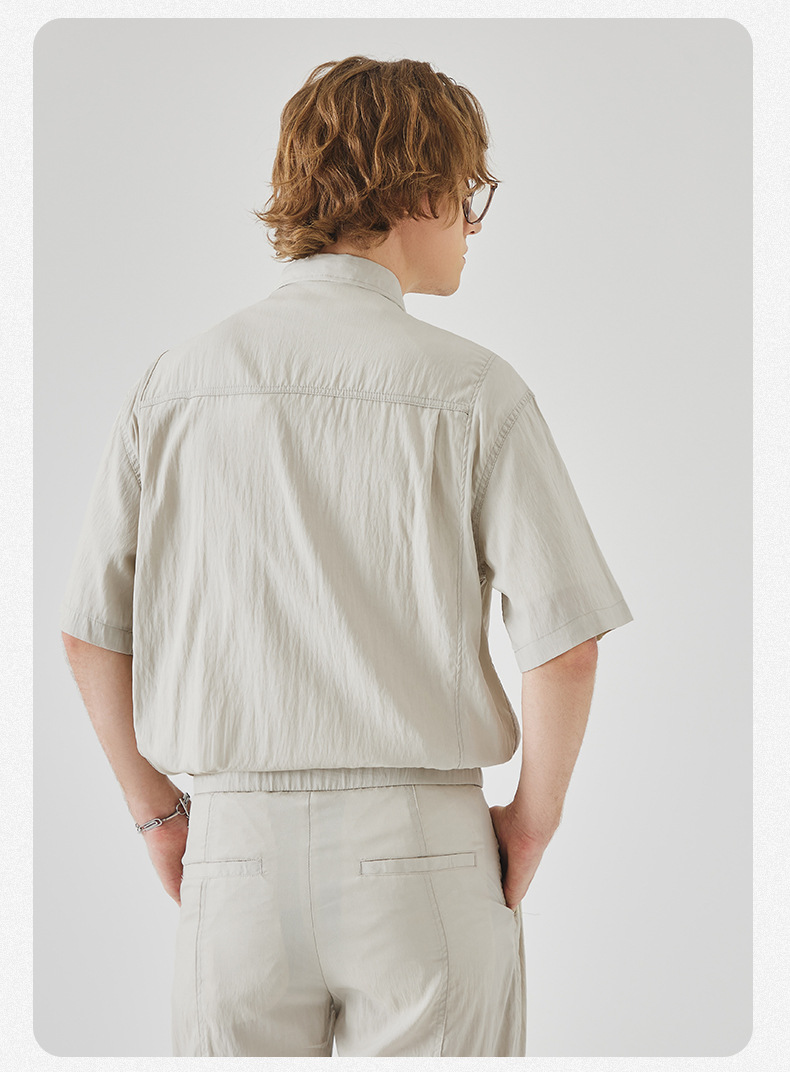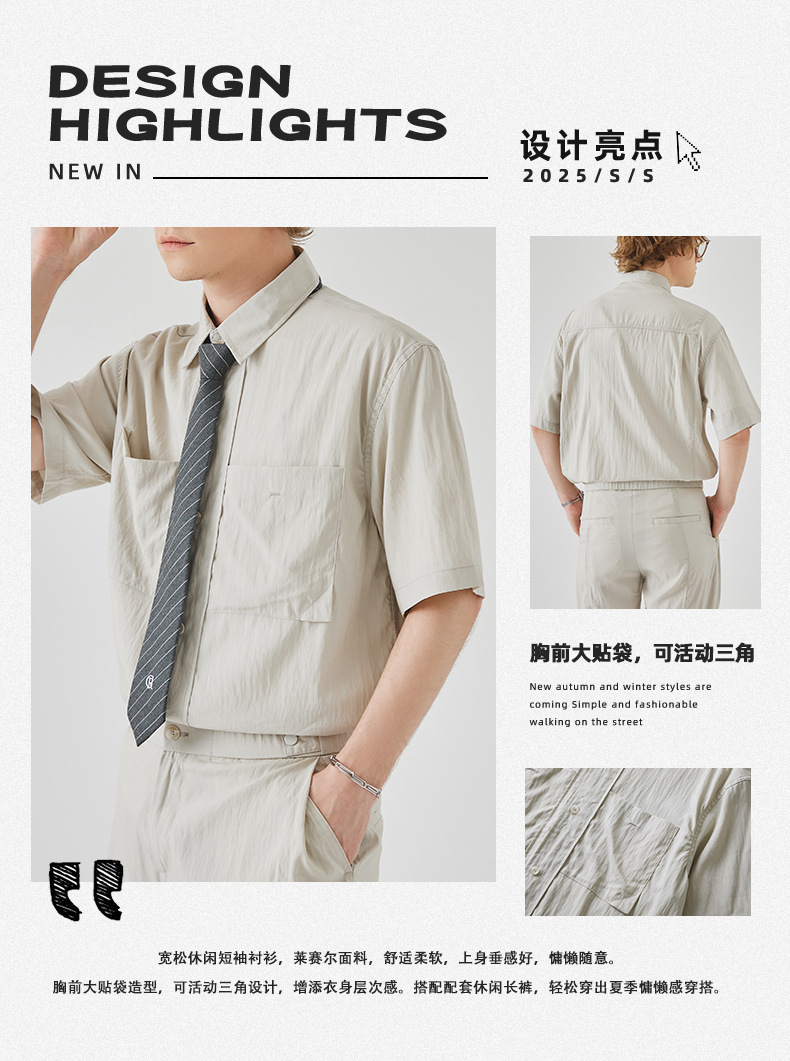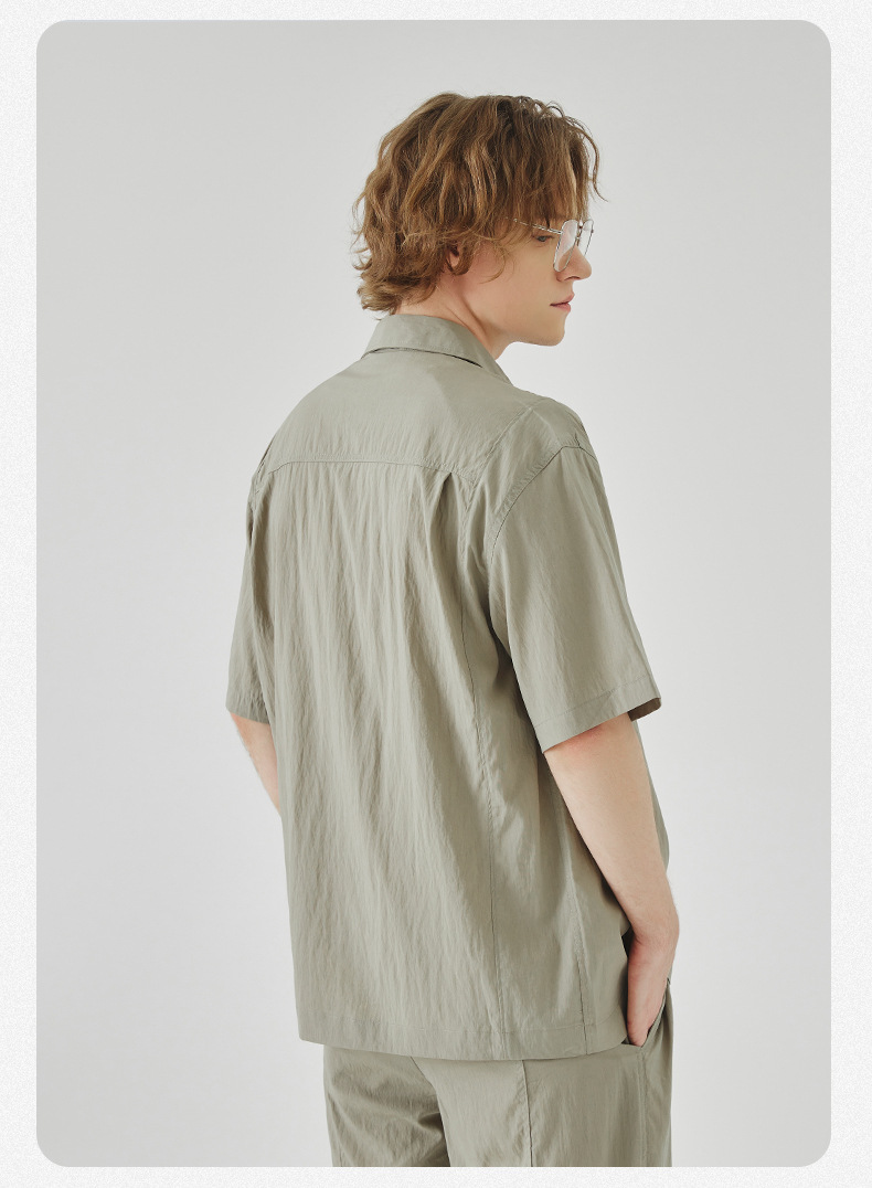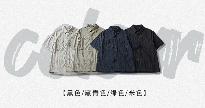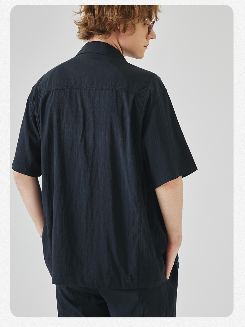 APO 남성복 | Lyocell Draping 반팔 셔츠 남성용 여름 하이 엔드 느낌 푸른 느슨한 캐주얼 옷깃 셔츠스토어 가기