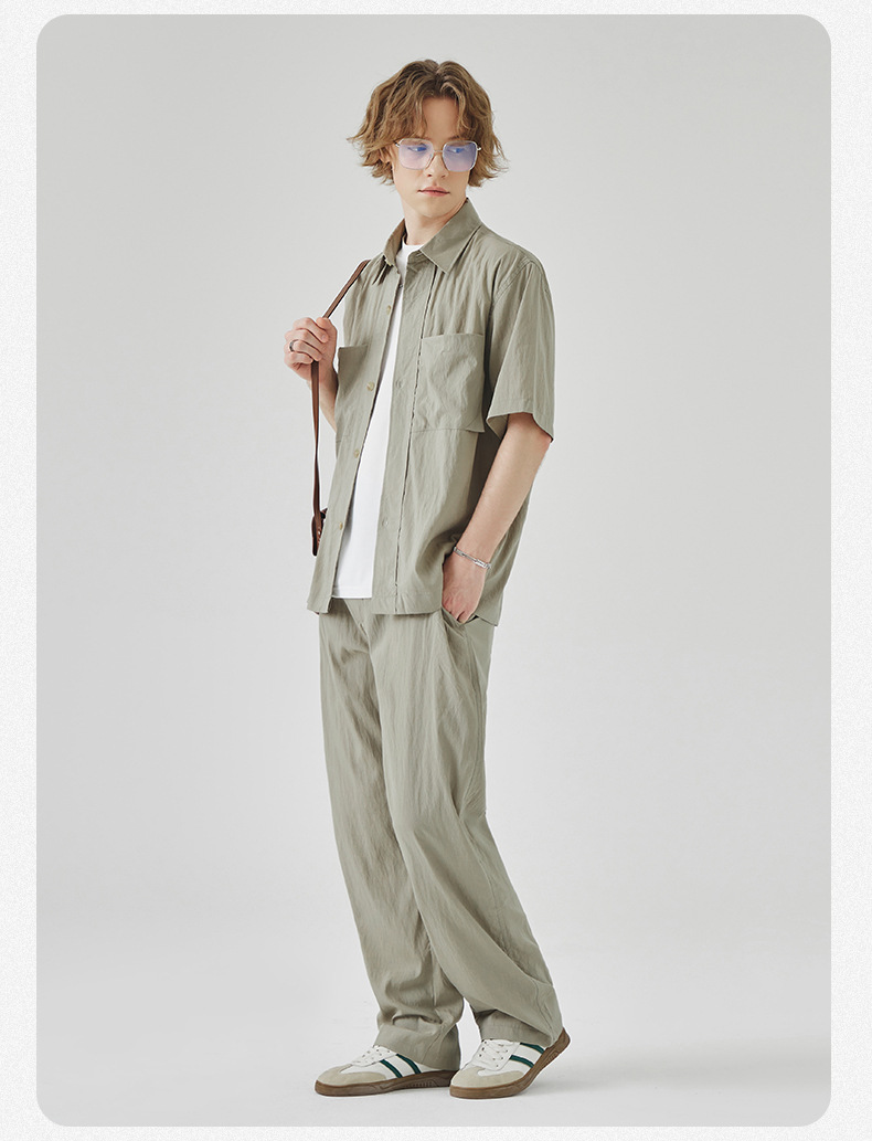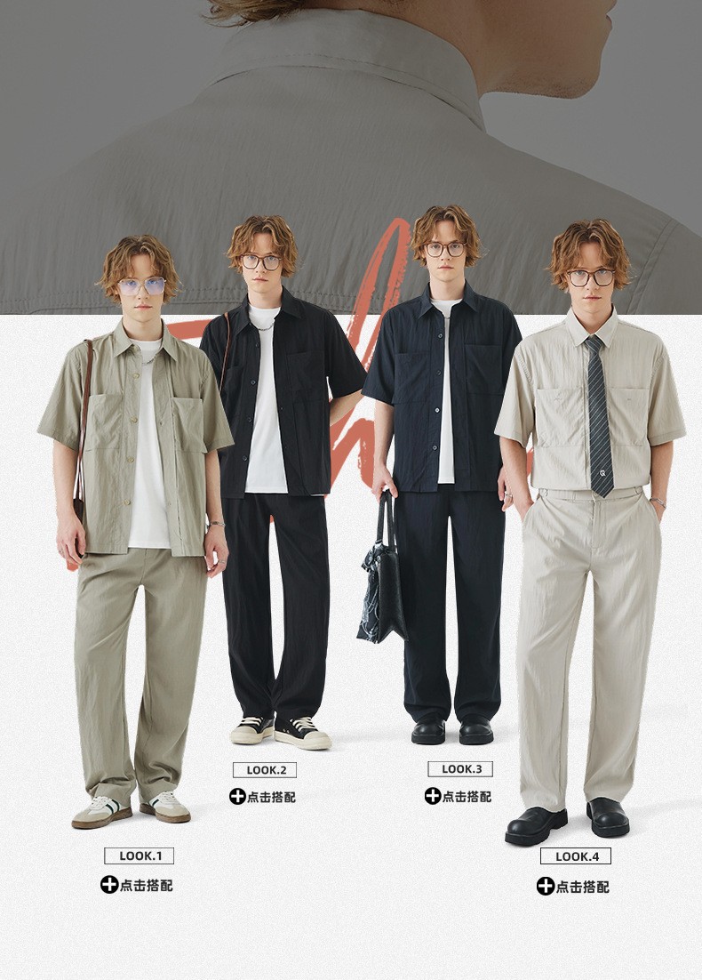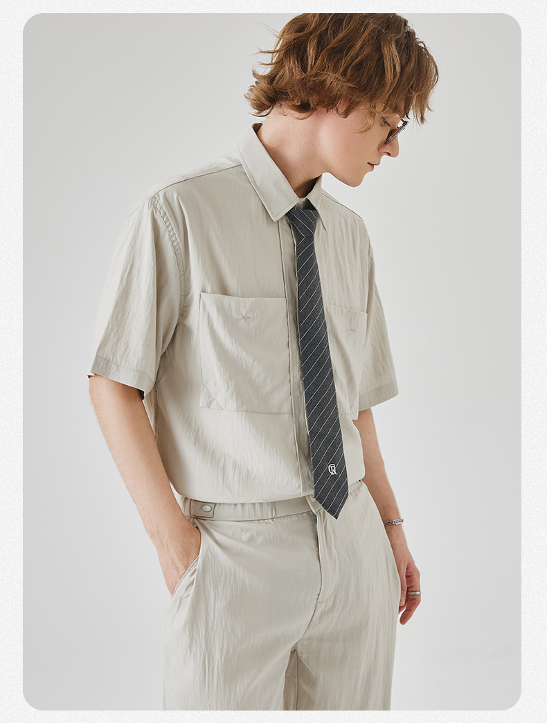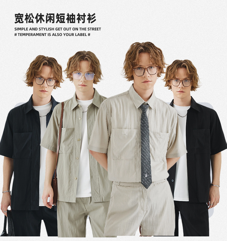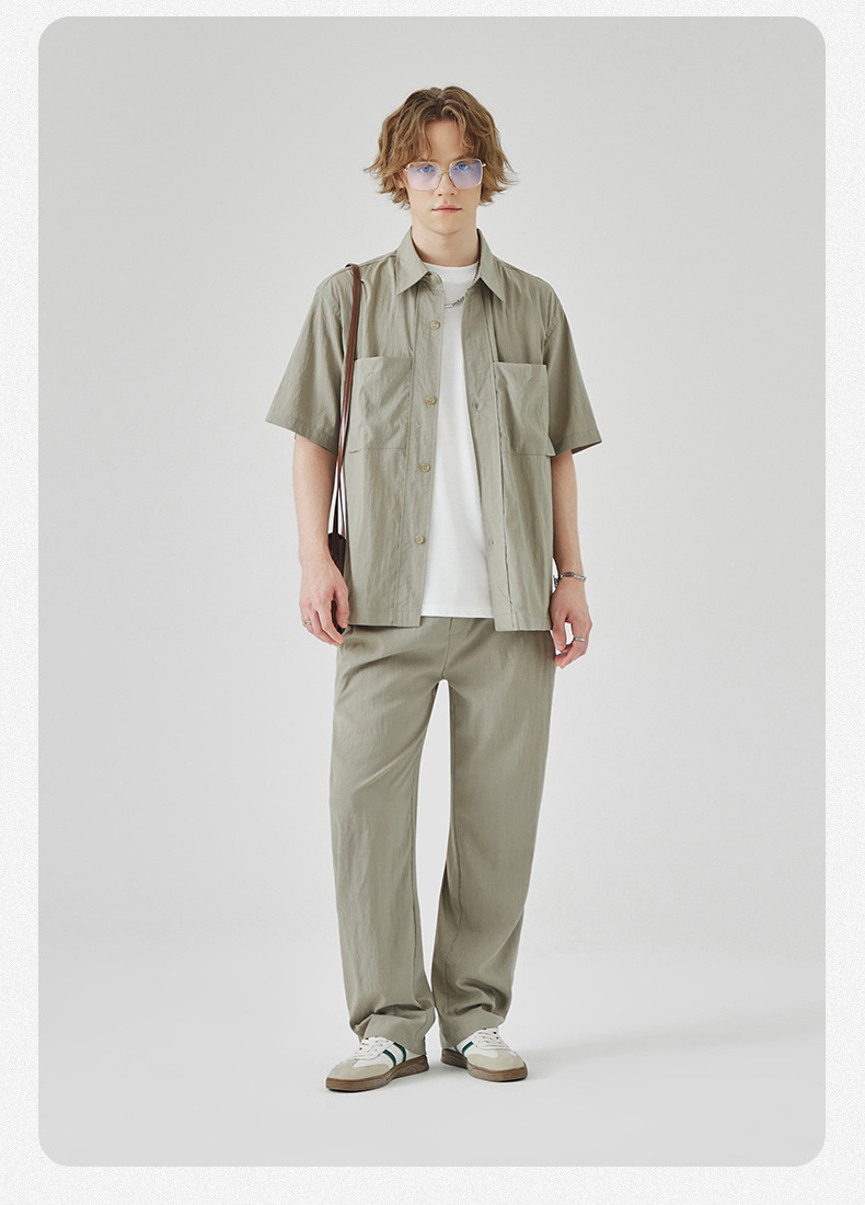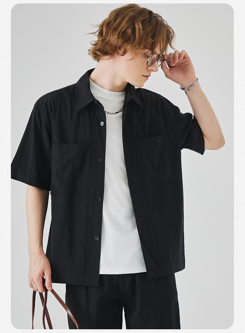APO 남성복 | Lyocell Draping 반팔 셔츠 남성용 여름 하이 엔드 느낌 푸른 느슨한 캐주얼 옷깃 셔츠스토어 가기