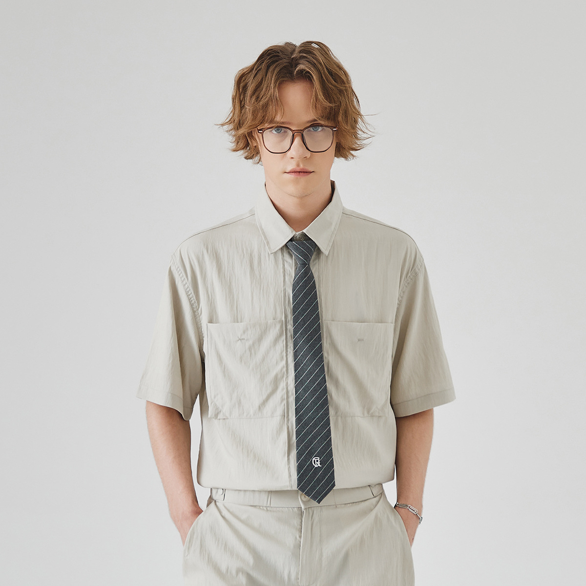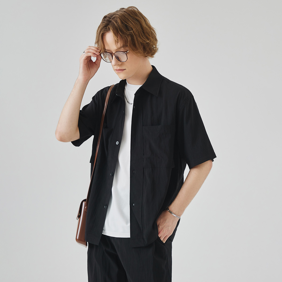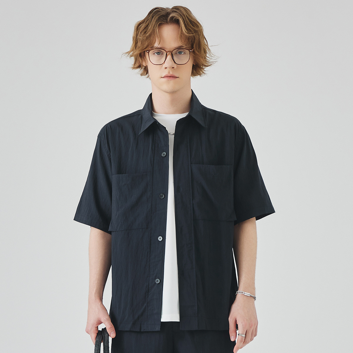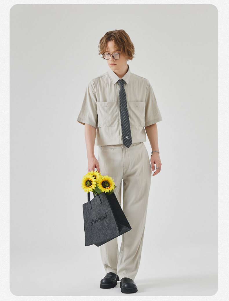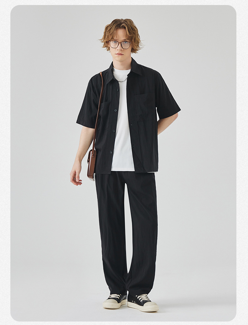 APO 남성복 | Lyocell Draping 반팔 셔츠 남성용 여름 하이 엔드 느낌 푸른 느슨한 캐주얼 옷깃 셔츠스토어 가기