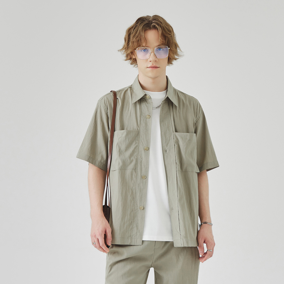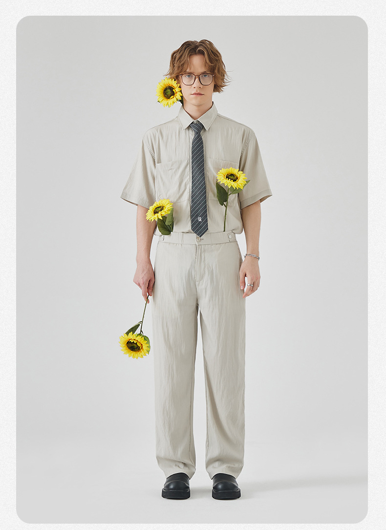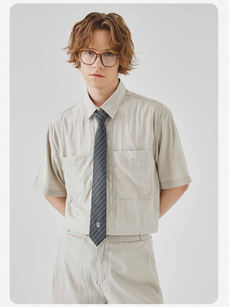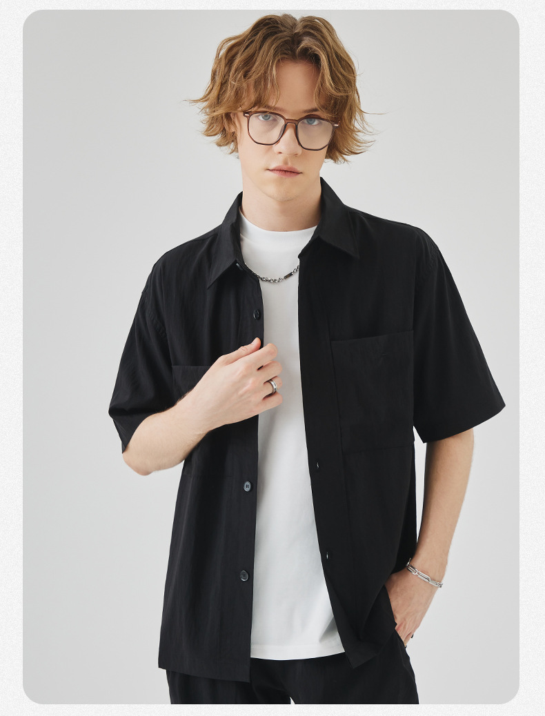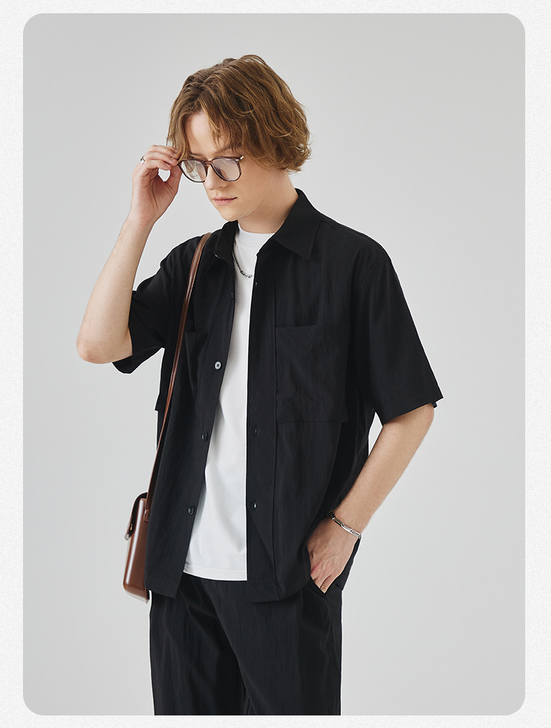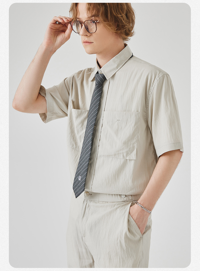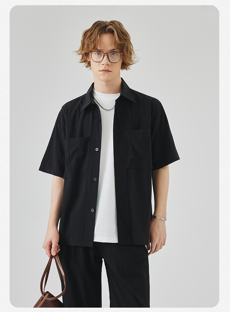 APO 남성복 | Lyocell Draping 반팔 셔츠 남성용 여름 하이 엔드 느낌 푸른 느슨한 캐주얼 옷깃 셔츠