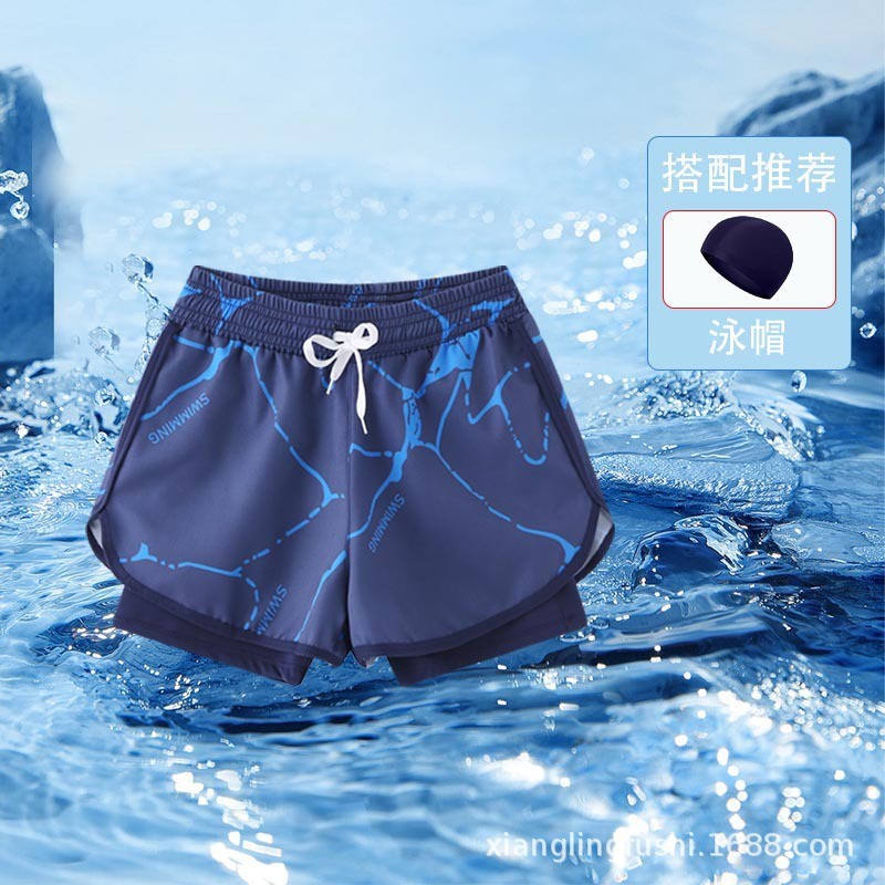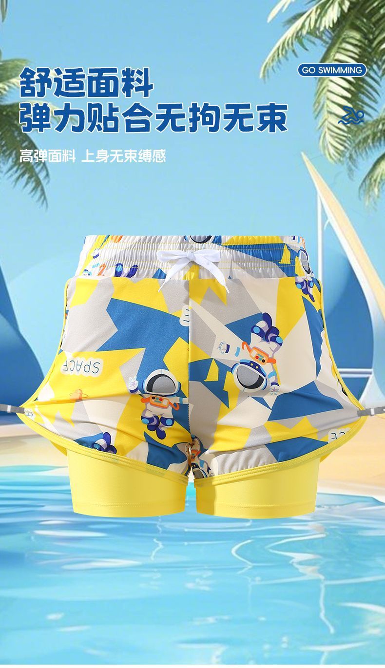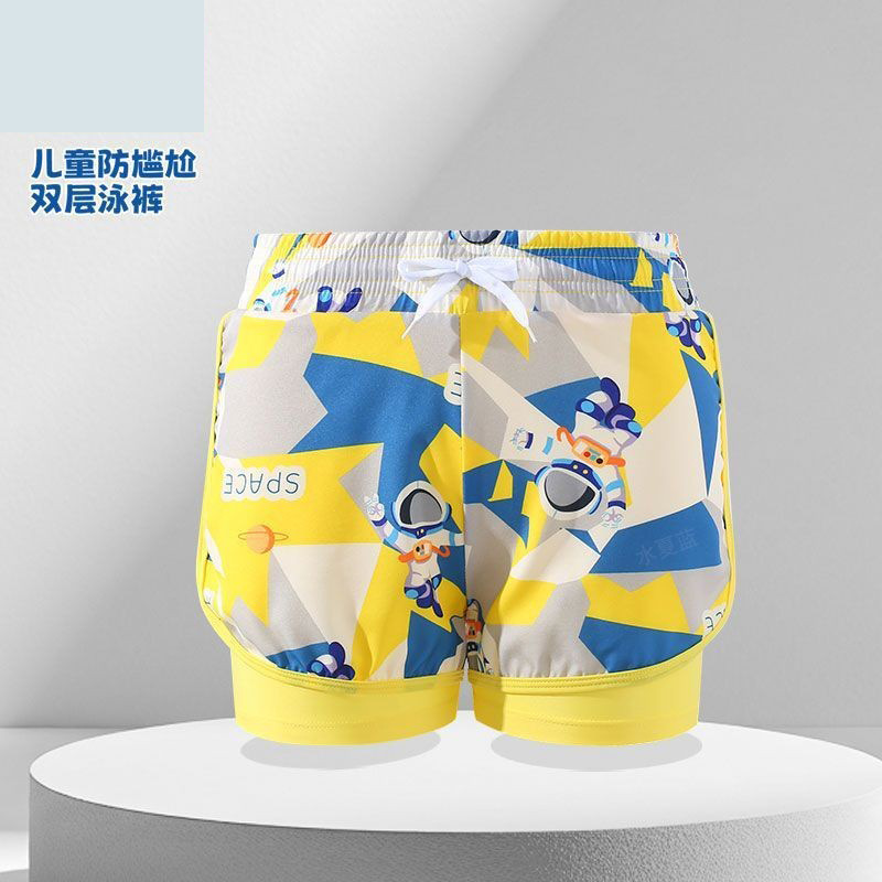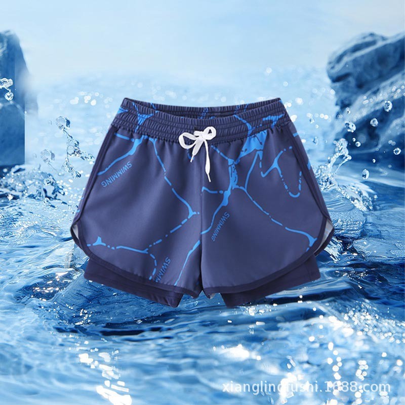 새로운 어린이 수영 트렁크 비치 스포츠 빠른 건조 안티 자외선 전문 수영 훈련 가짜 투피스 플랫 앵글 안티 당혹감