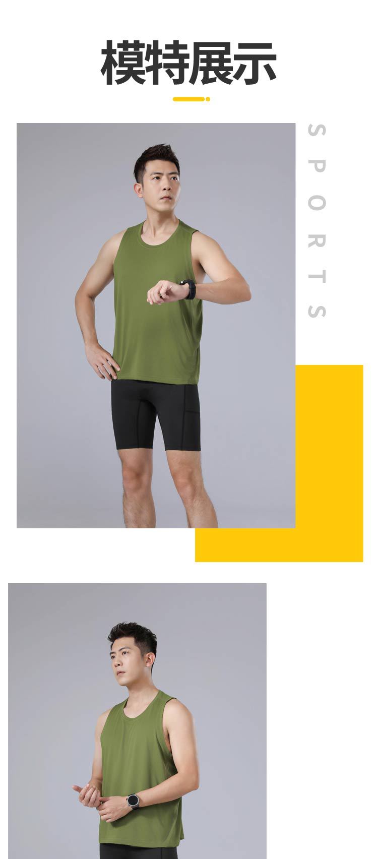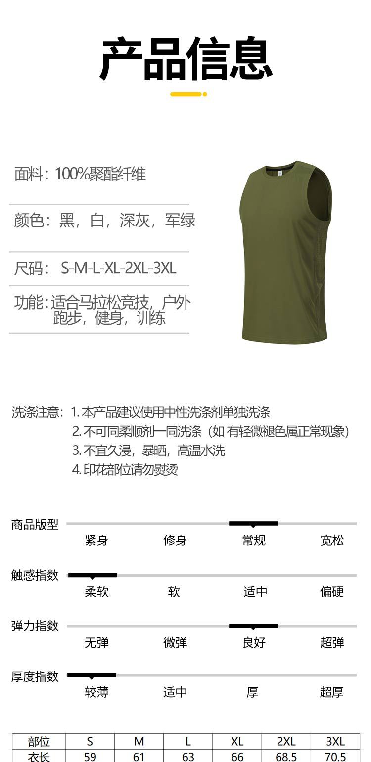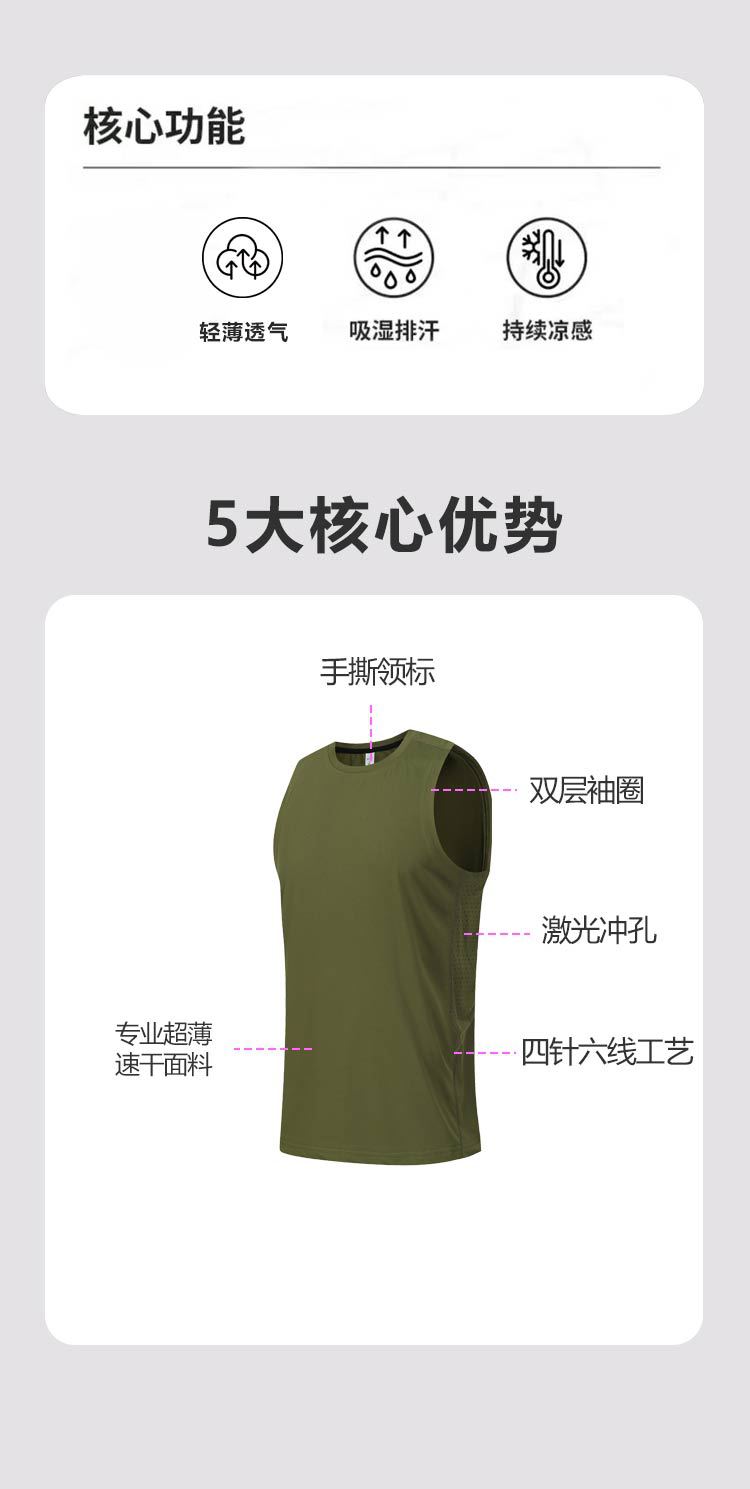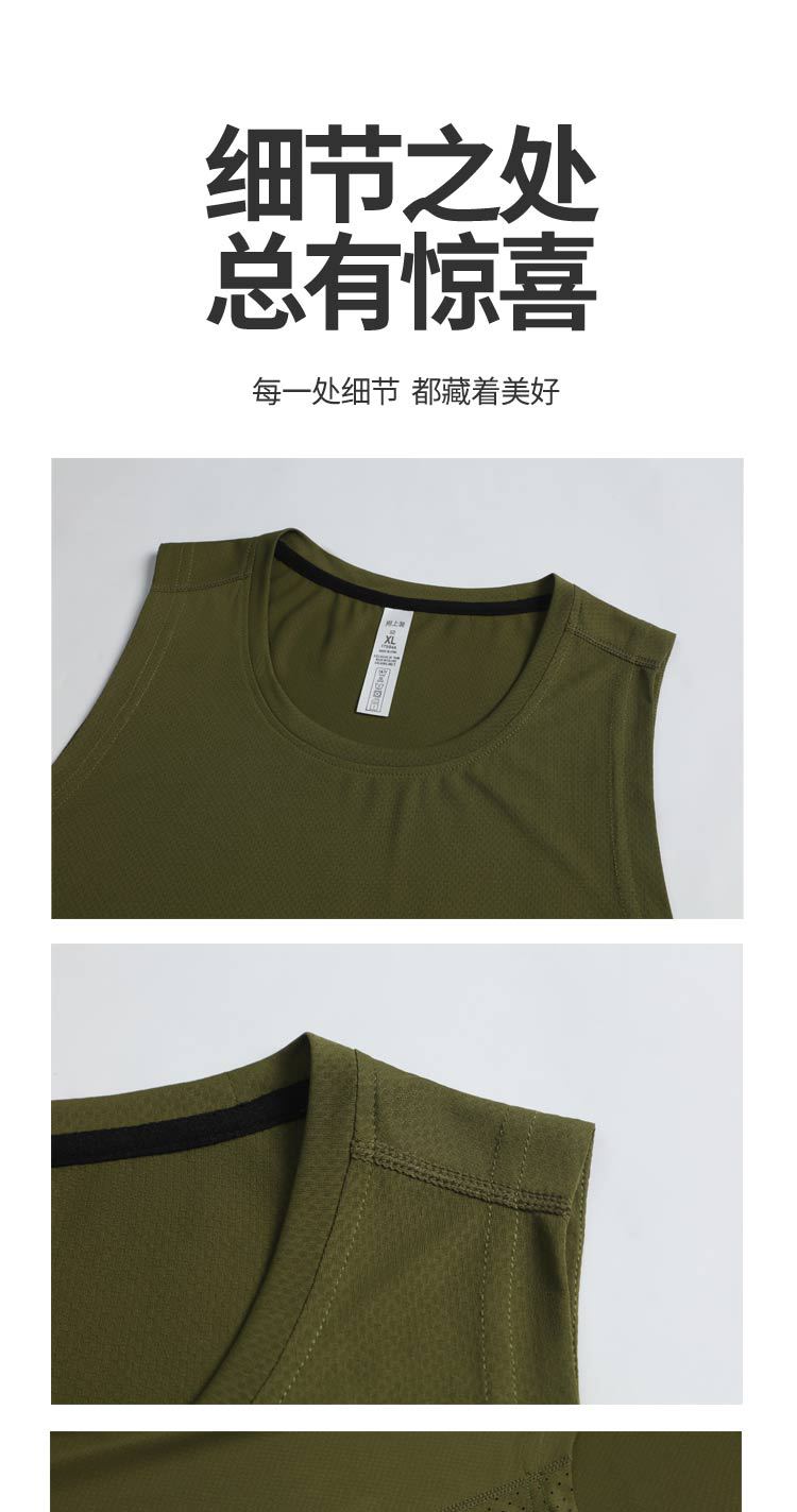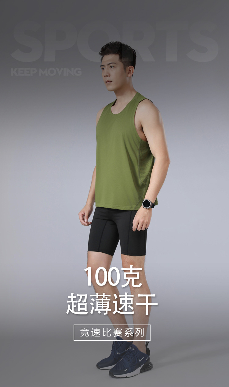 夏季吸湿圆领修身无袖运动跑步速干t恤 轻薄透气户外健身背心男