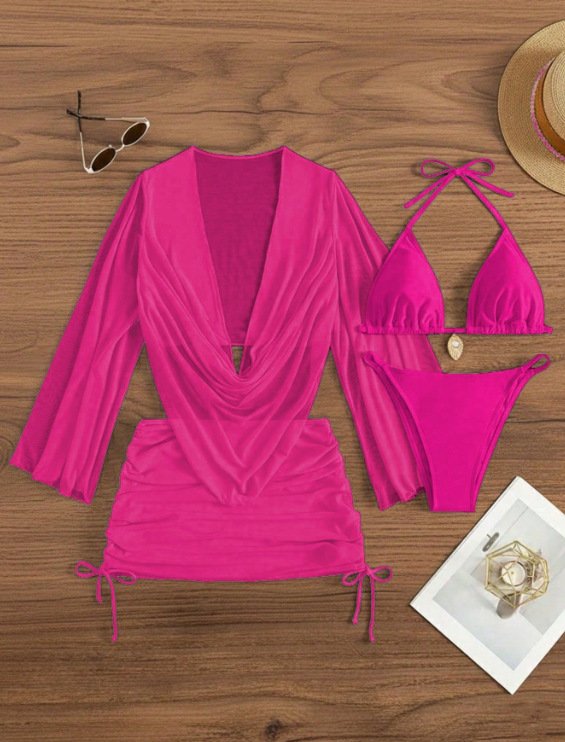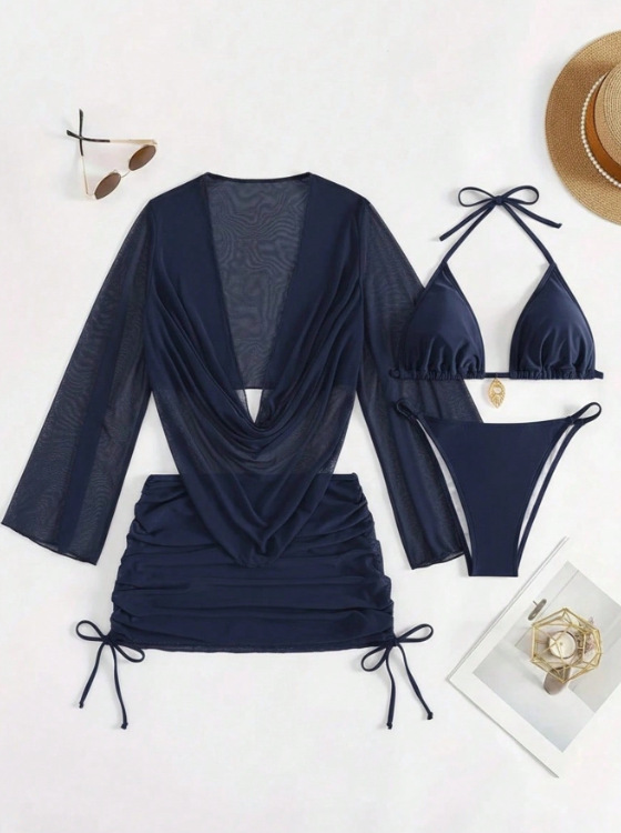 유럽과 미국의 분할 수영복 여성의 섹시한 4 피스 라이트 베일 블라우스 레이스 업 비키니 국경 대외 무역 새로운 수영복 여성