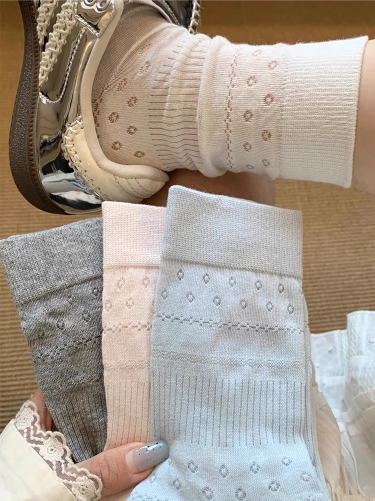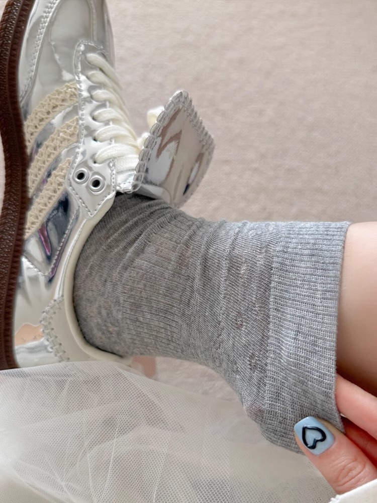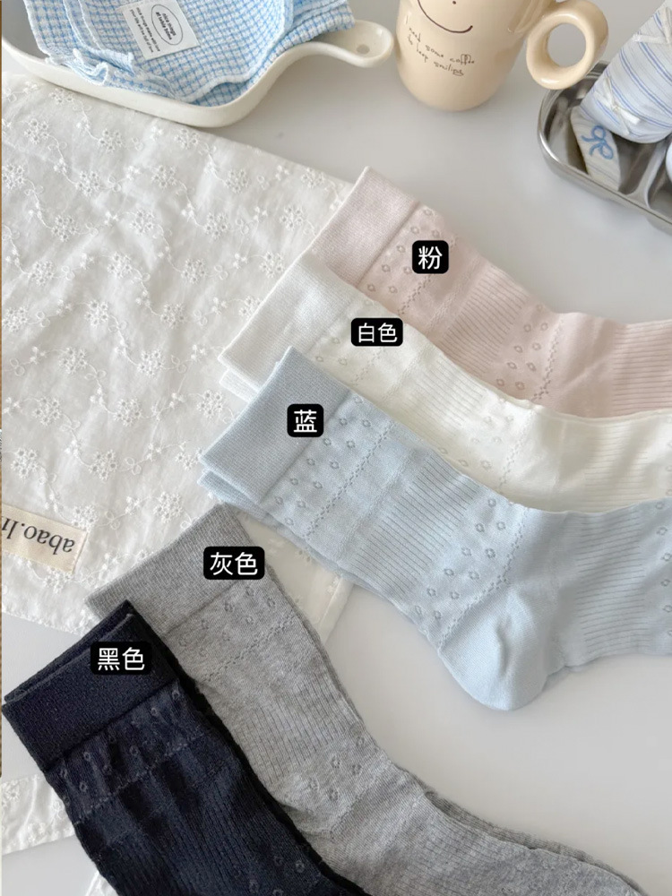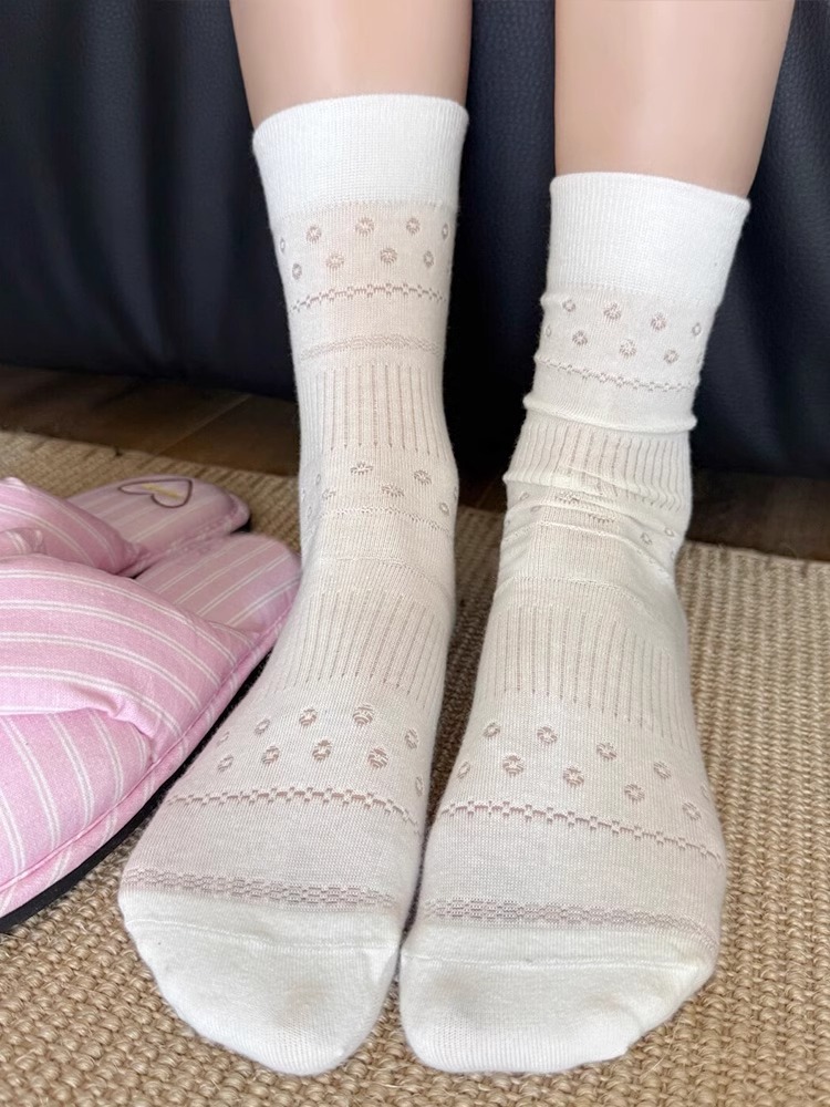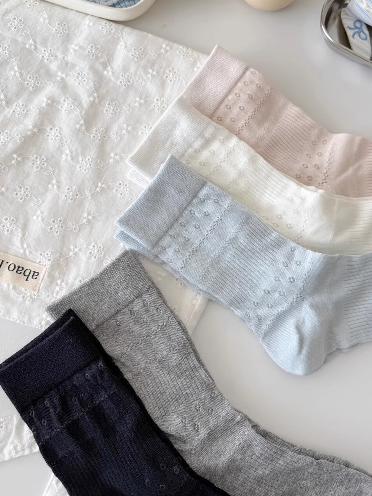 크림 스타일 코일 양말 여성 여름 중공 작은 꽃 얇은 Ins 유행 통기성 뼈없는 달콤한 올매치 미드 튜브 문 양말