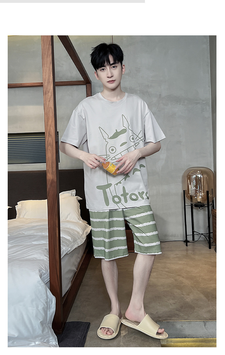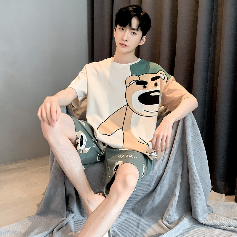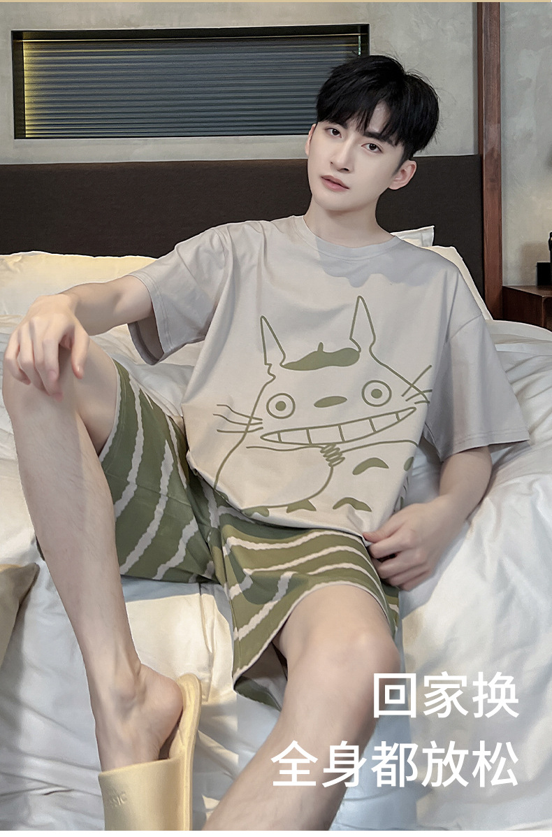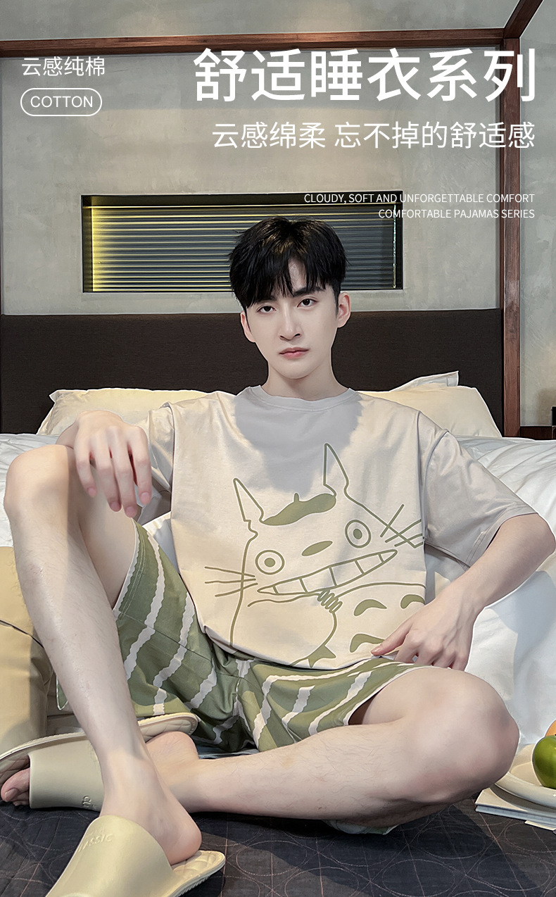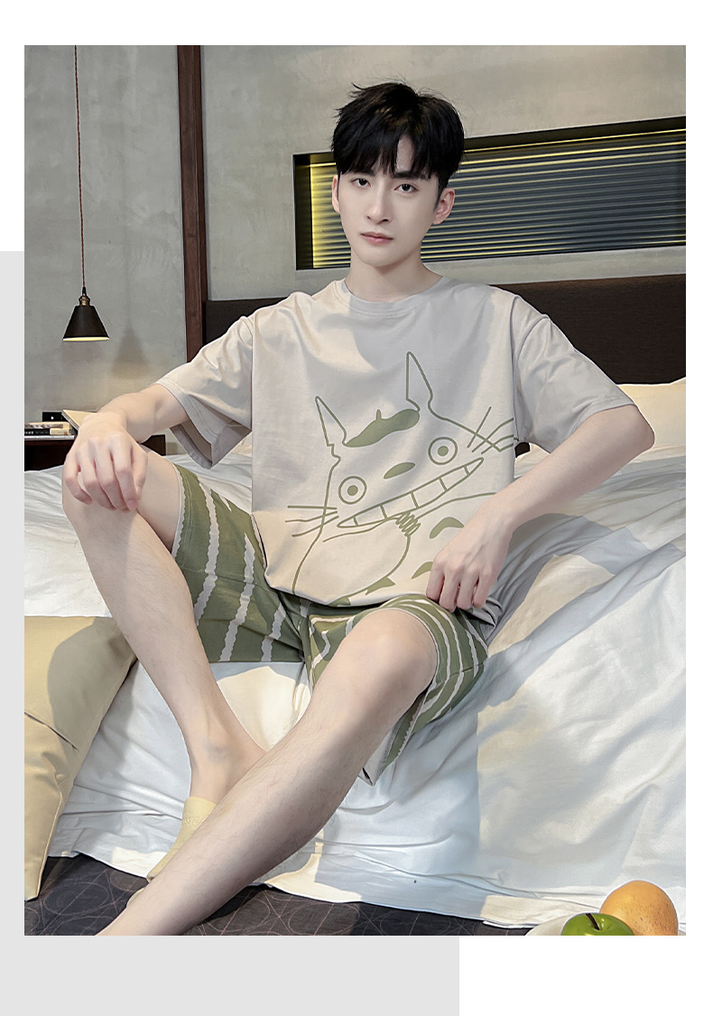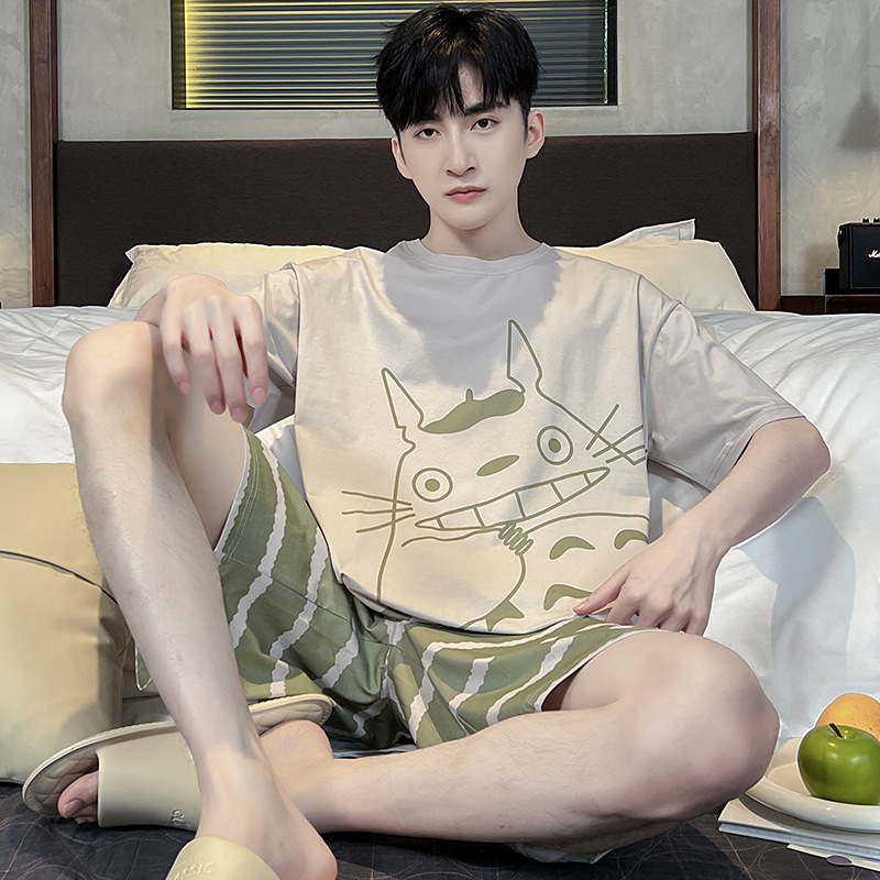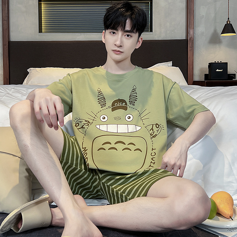 남성용 잠옷 여름면 반팔 만화 청소년들이 비료기를 추가하여 여름 면화 홈 의류 학생 세트 증가스토어 가기