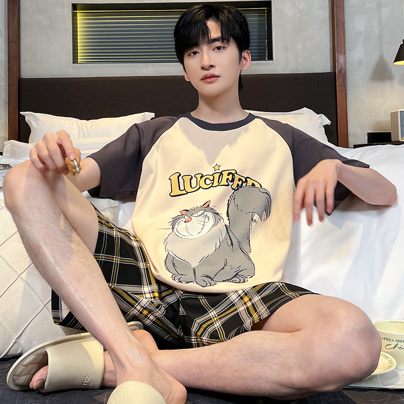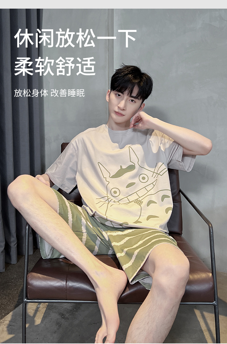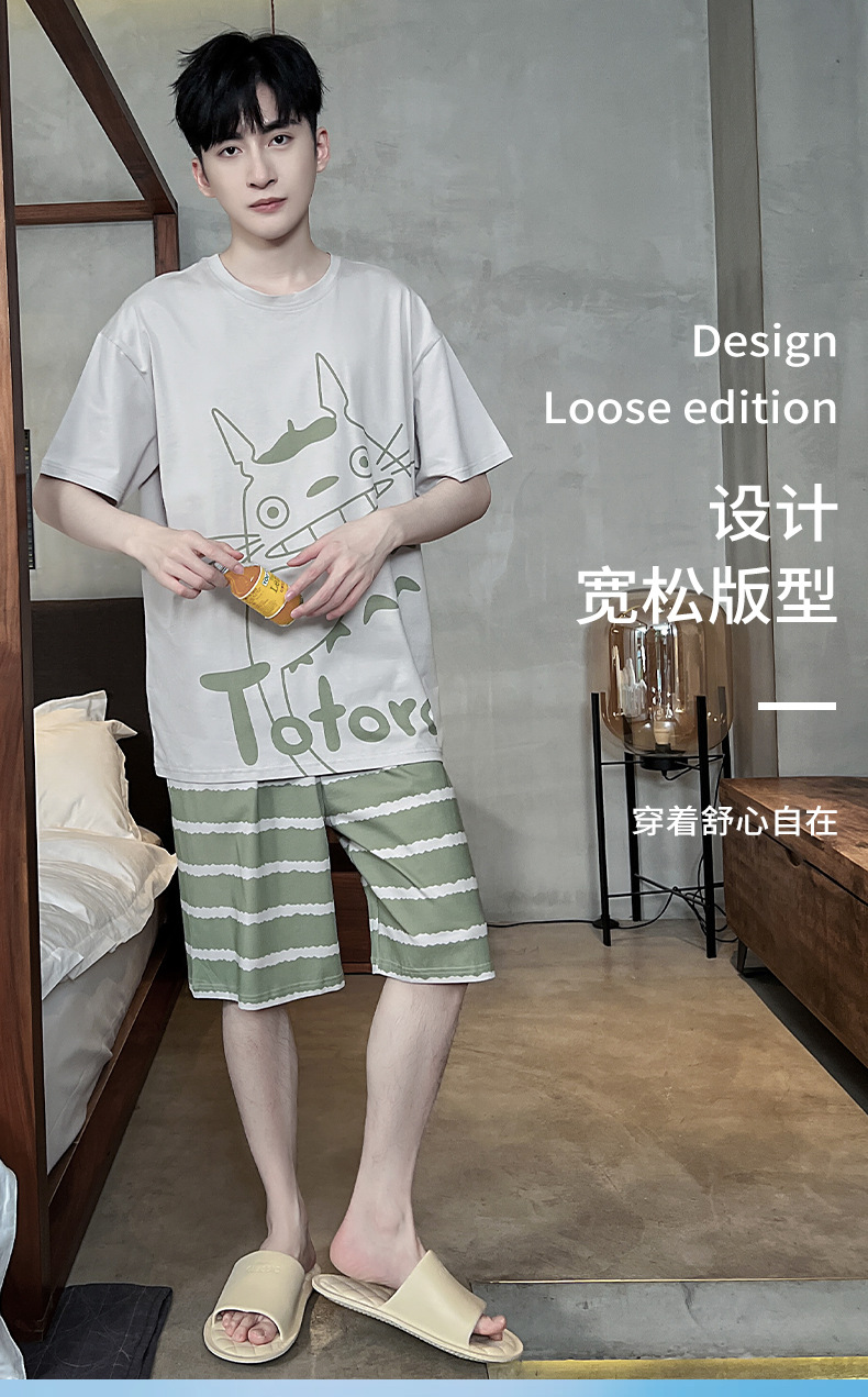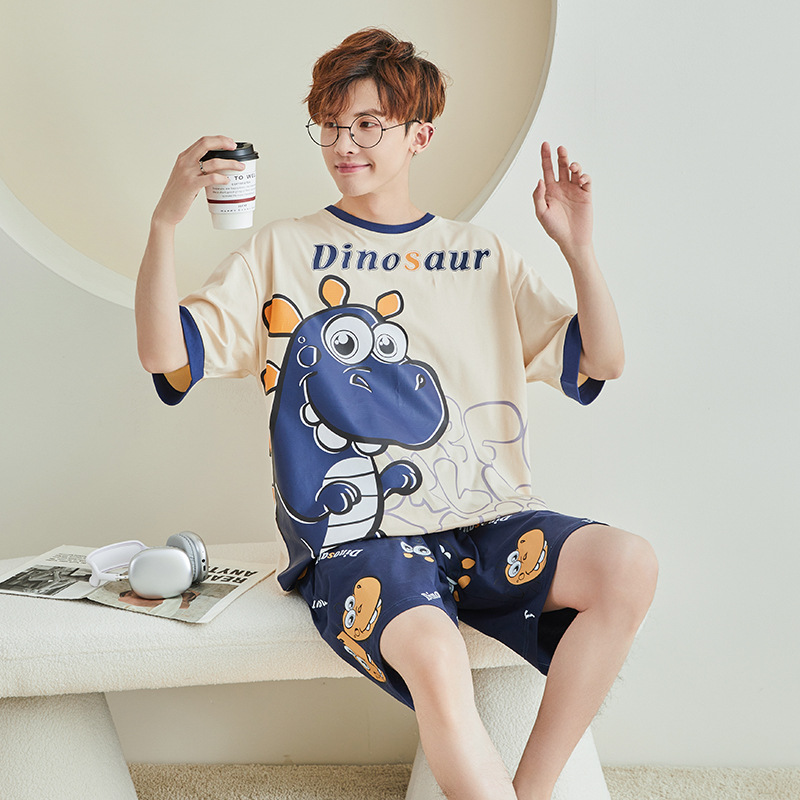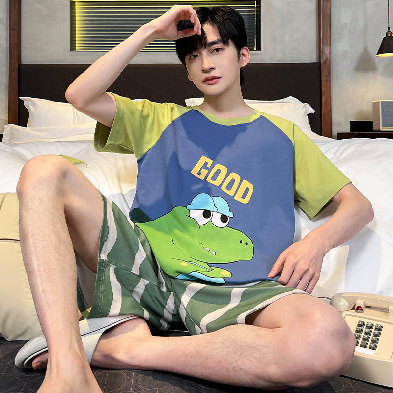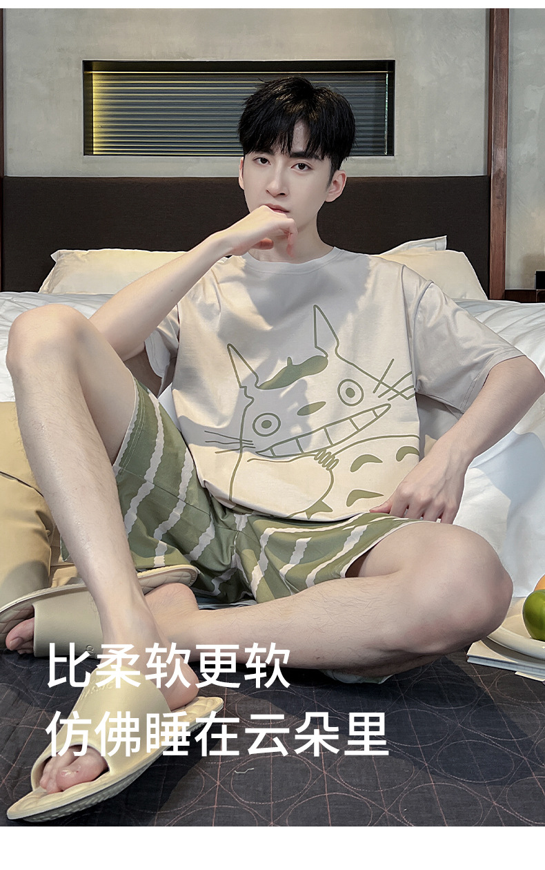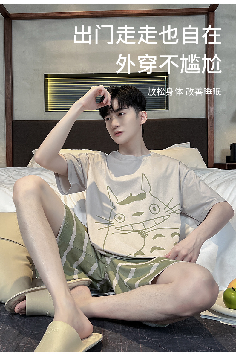 남성용 잠옷 여름면 반팔 만화 청소년들이 비료기를 추가하여 여름 면화 홈 의류 학생 세트 증가스토어 가기