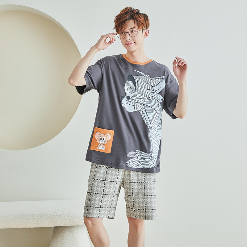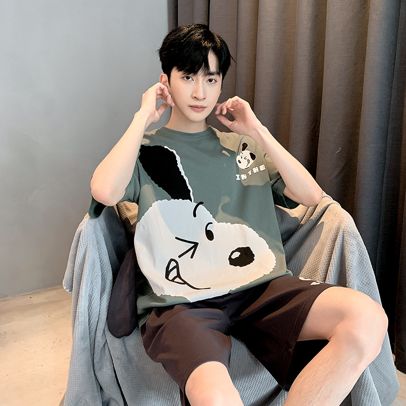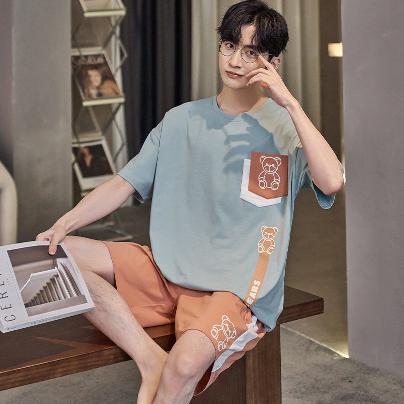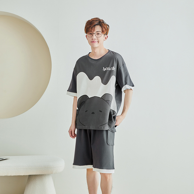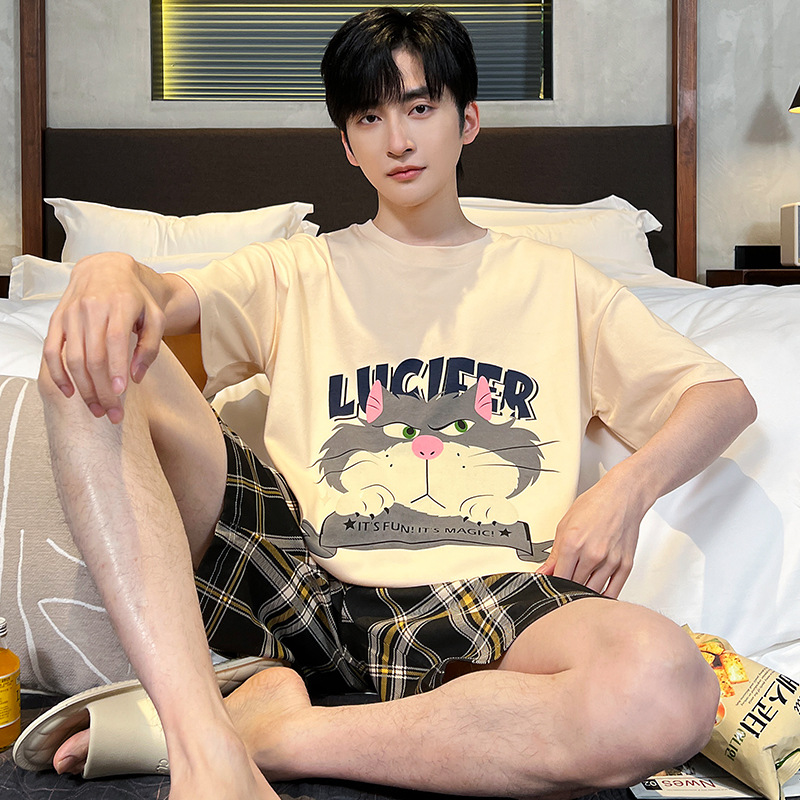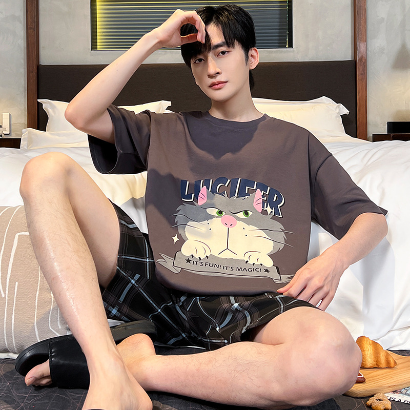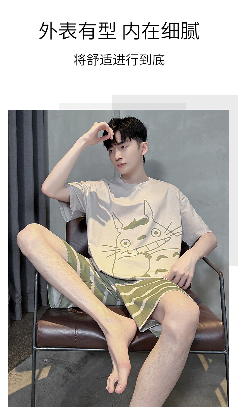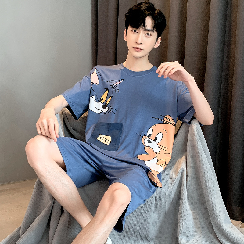남성용 잠옷 여름면 반팔 만화 청소년들이 비료기를 추가하여 여름 면화 홈 의류 학생 세트 증가스토어 가기