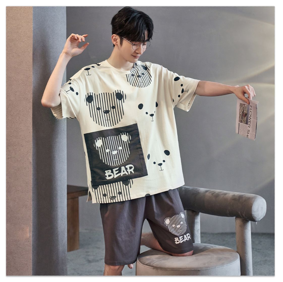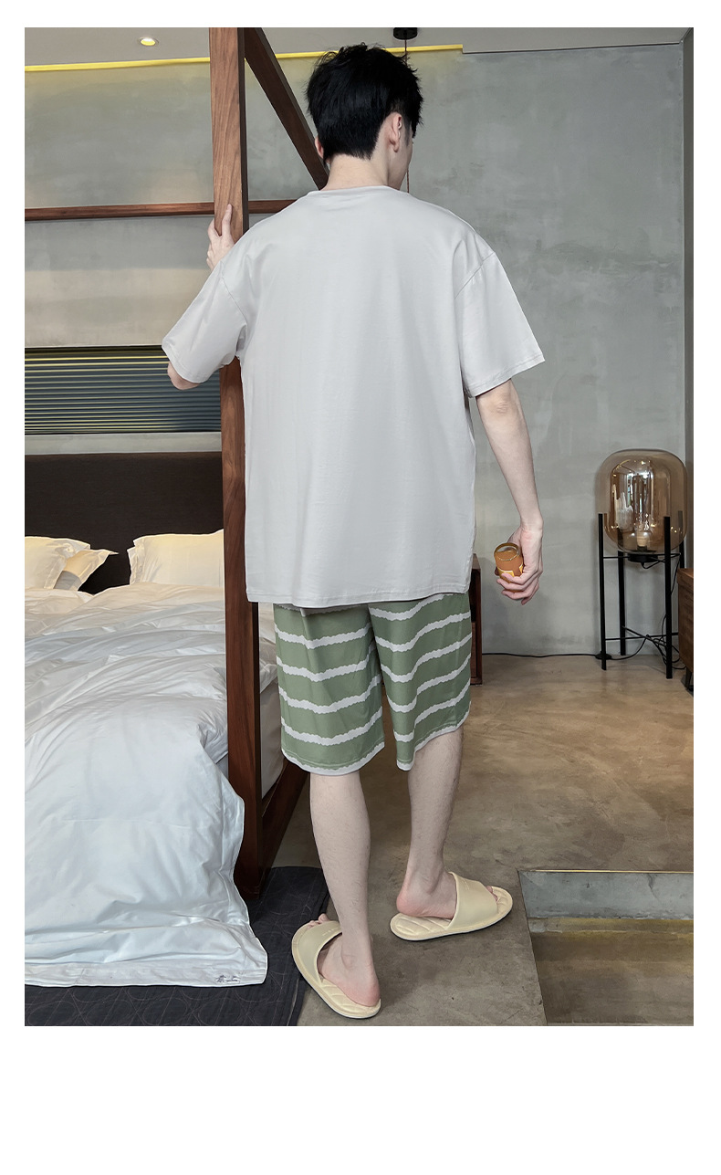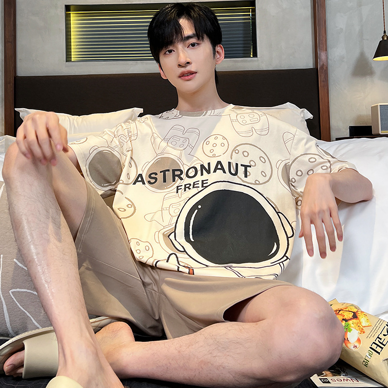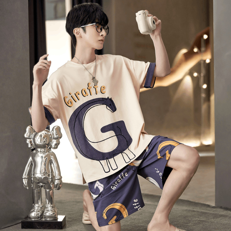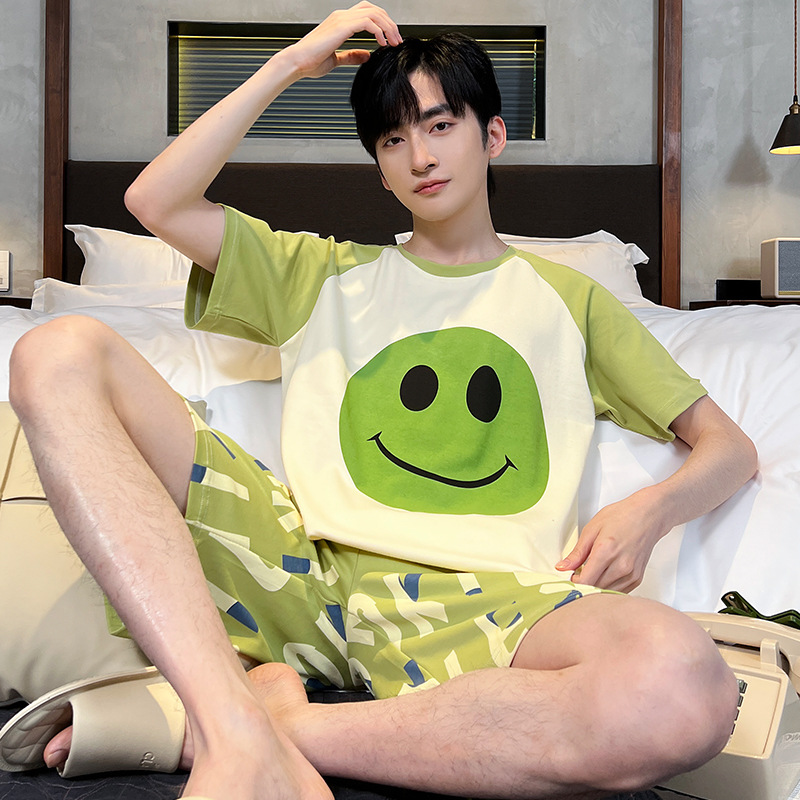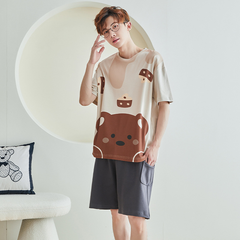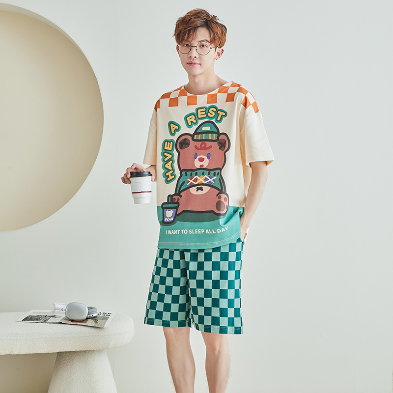 남성용 잠옷 여름면 반팔 만화 청소년들이 비료기를 추가하여 여름 면화 홈 의류 학생 세트 증가스토어 가기