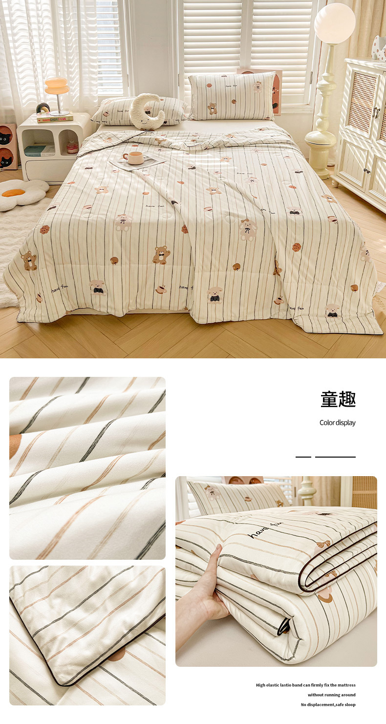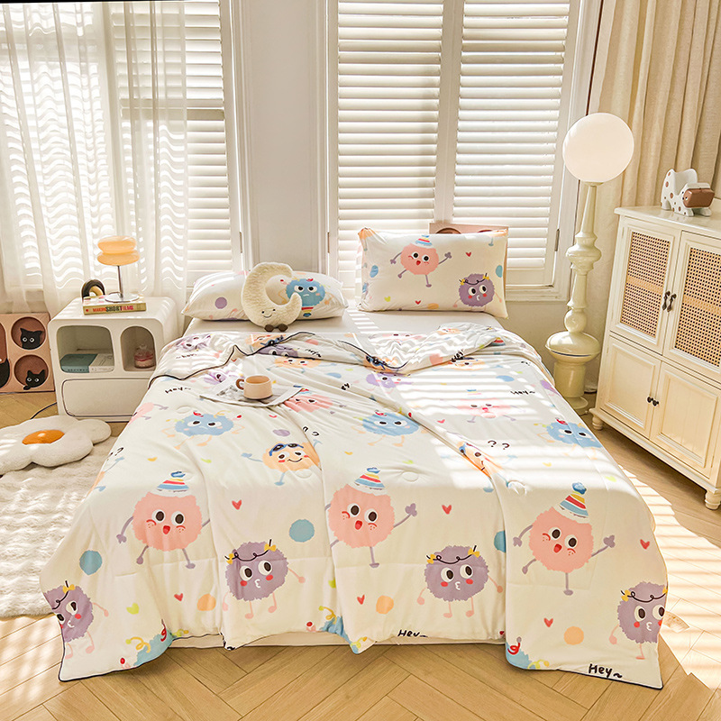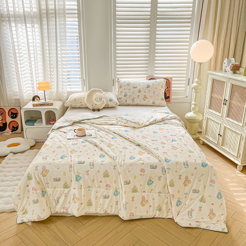 클래스 A 니트 면 작은 신선한 여름 이불 어린이와 학생을위한 여름 시원한 이불 에어컨 이불 봄과 가을 이불 부드럽고 피부 친화적이며 기계 세탁 가능