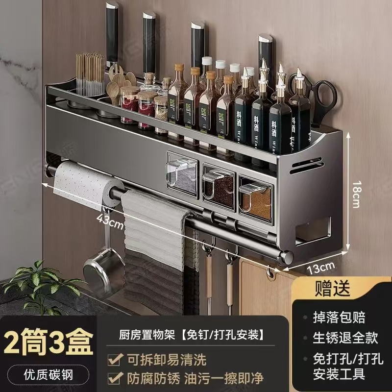 多功能刀架【双杯 +3个调味】免打孔 43 18 13 10062 1000