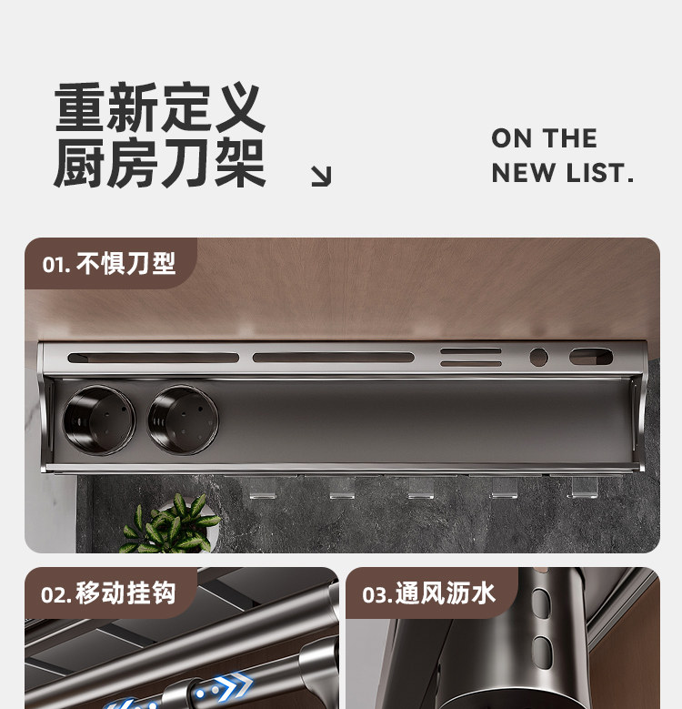 • 다기능 칼꽂이 [더블컵 + 양념 3종] 구멍을 뚫을 필요가 없습니다.