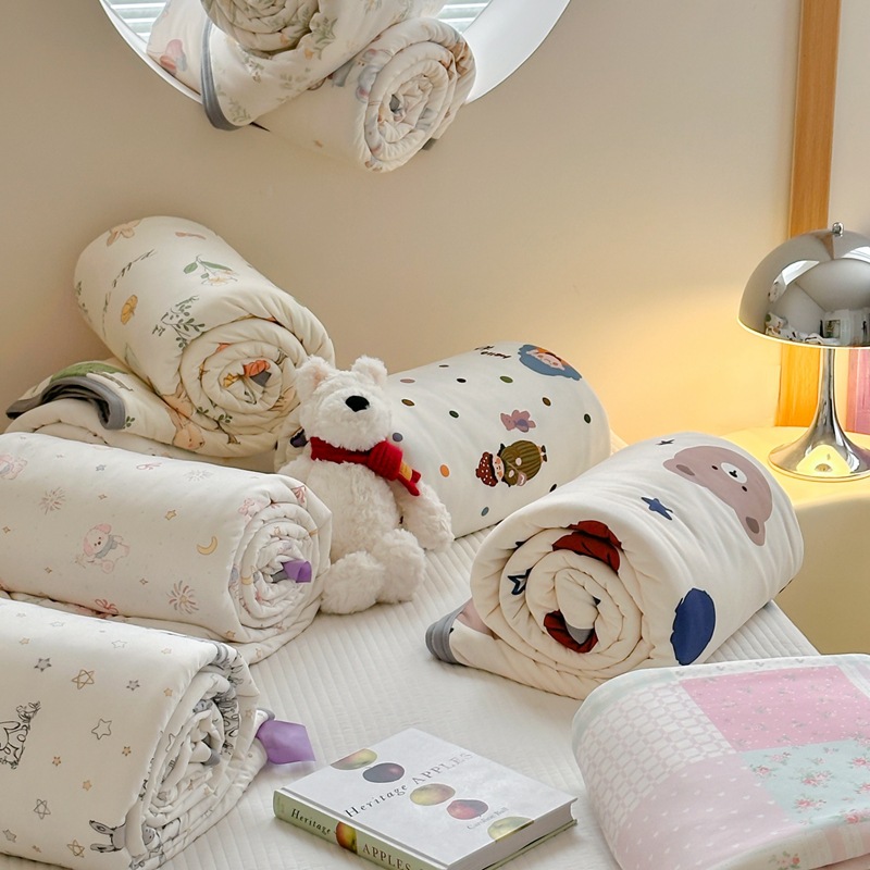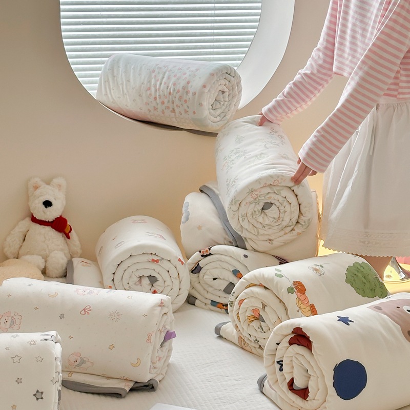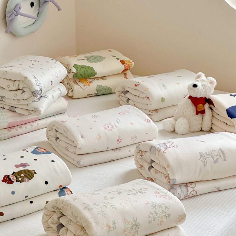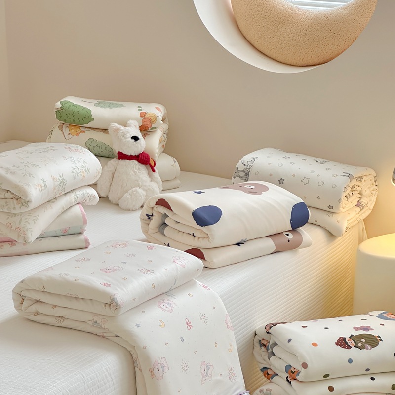 面料轻薄、盖在身上轻盈柔软。吸水性和透气性能较好