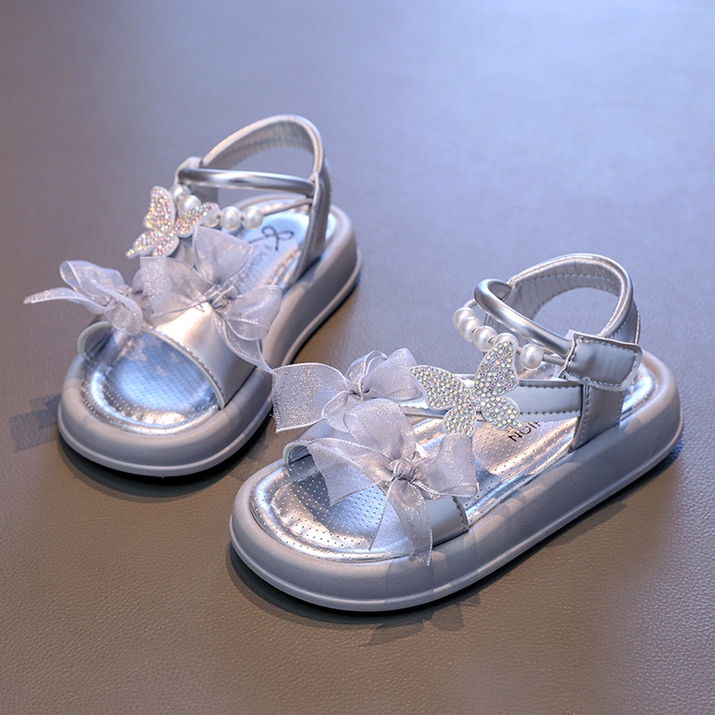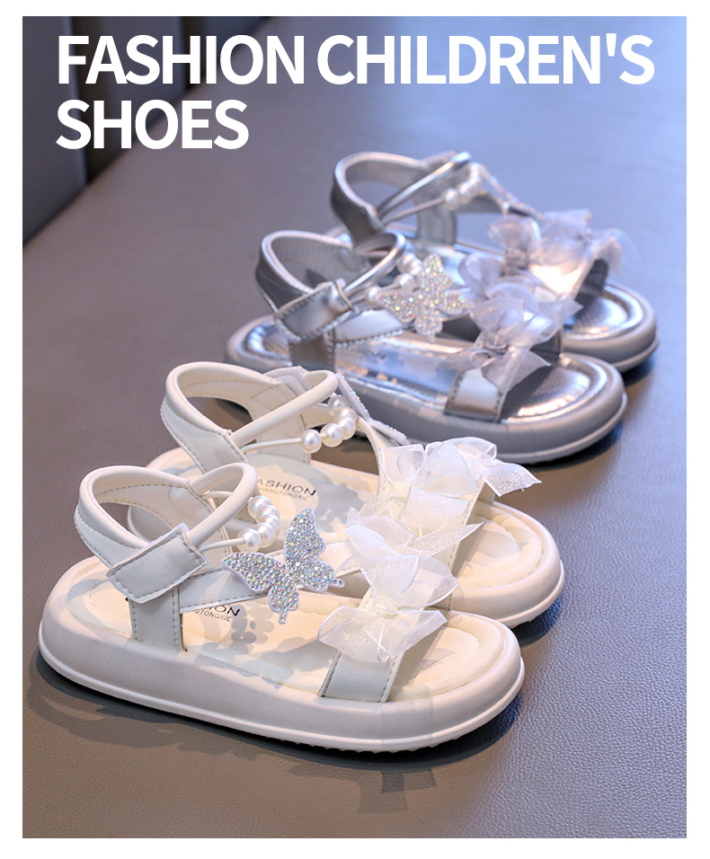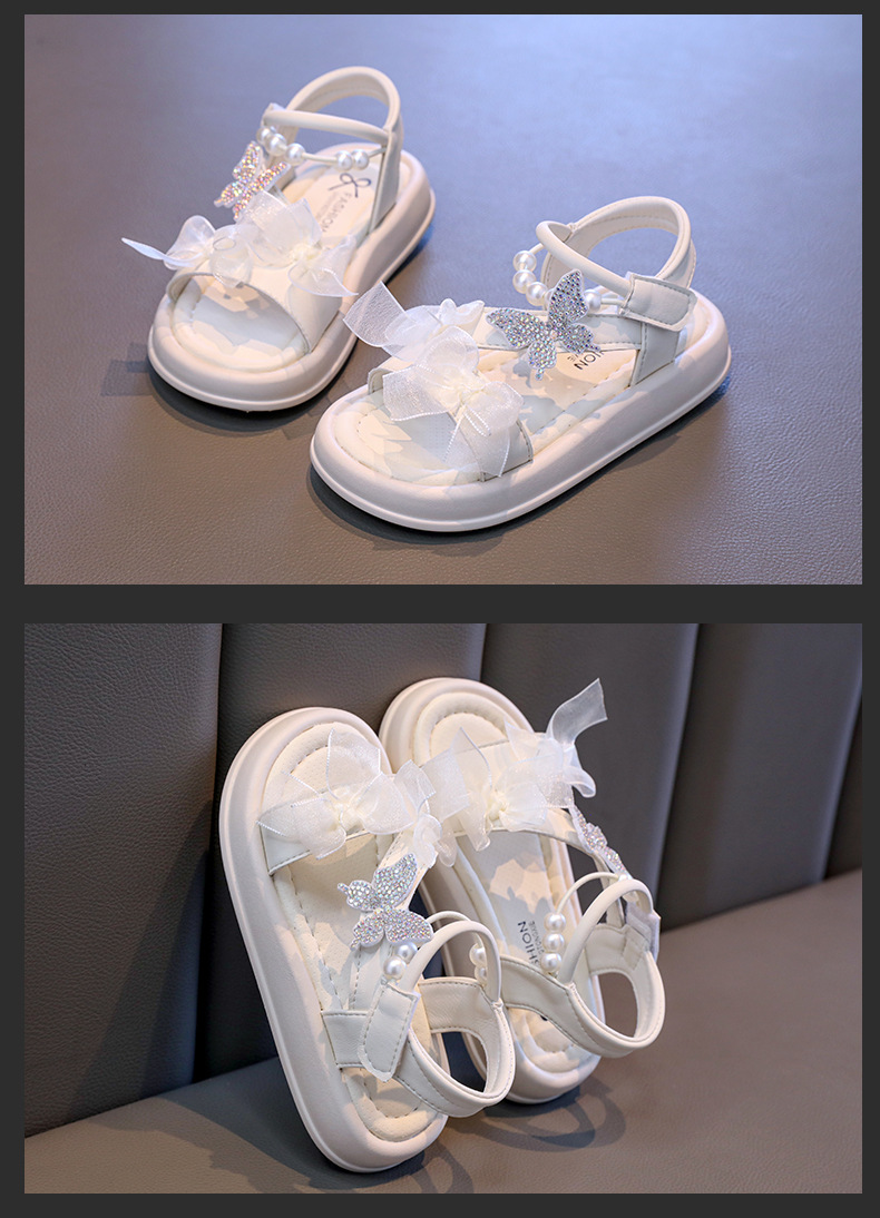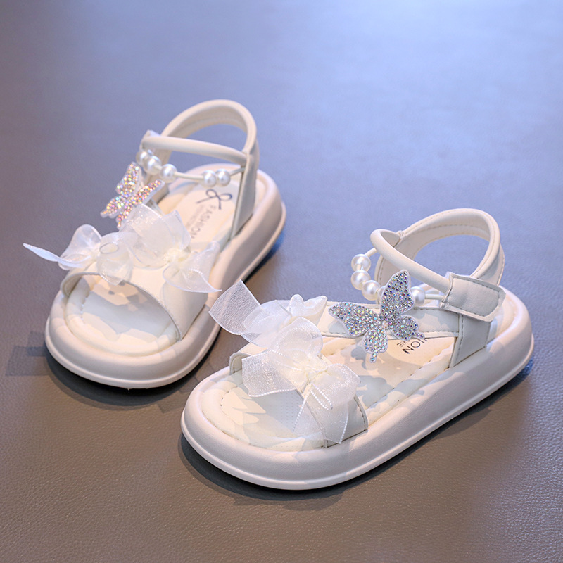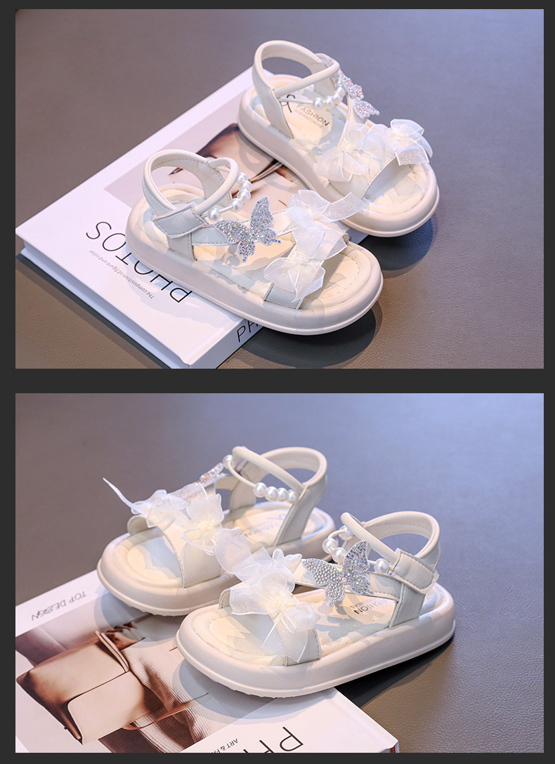 여아 샌들 2026년 신상 여름 여아 진주 리본 공주 신발 아동용 다용도 소프트 솔 비치 샌들
