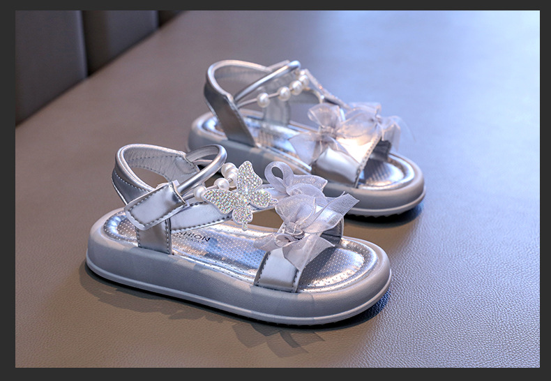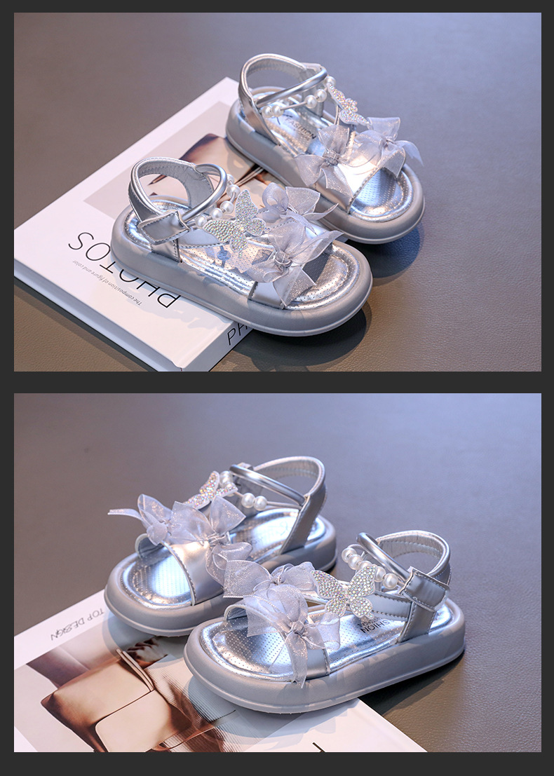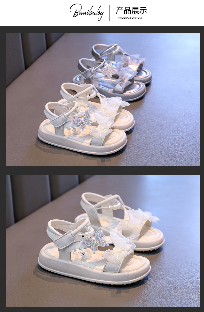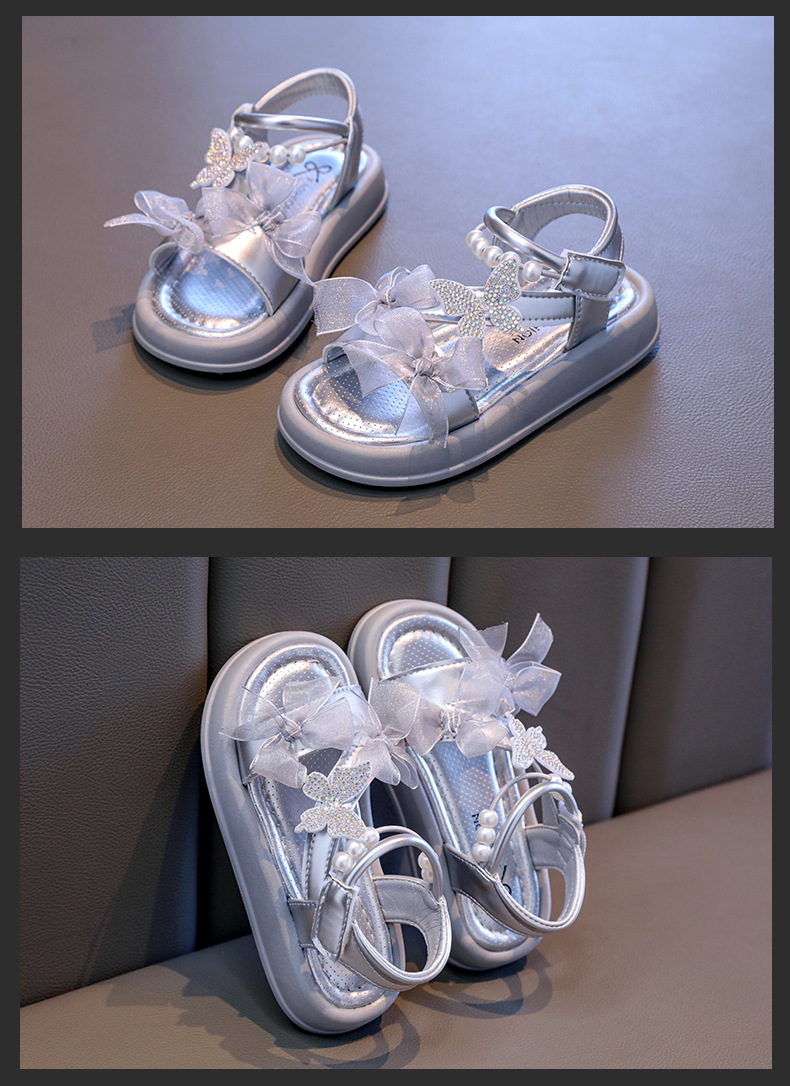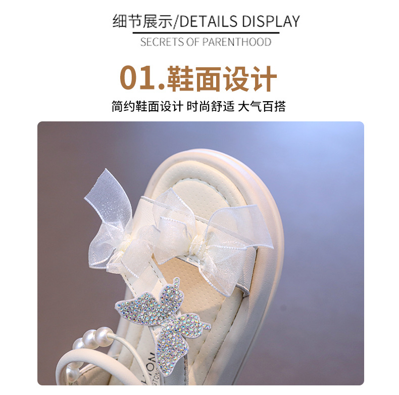여아 샌들 2026년 신상 여름 여아 진주 리본 공주 신발 아동용 다용도 소프트 솔 비치 샌들