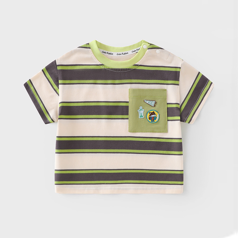 소년 줄무늬 반팔 티셔츠 여름 2025 년 새 아동복 어린이 반소매 여름스토어 가기