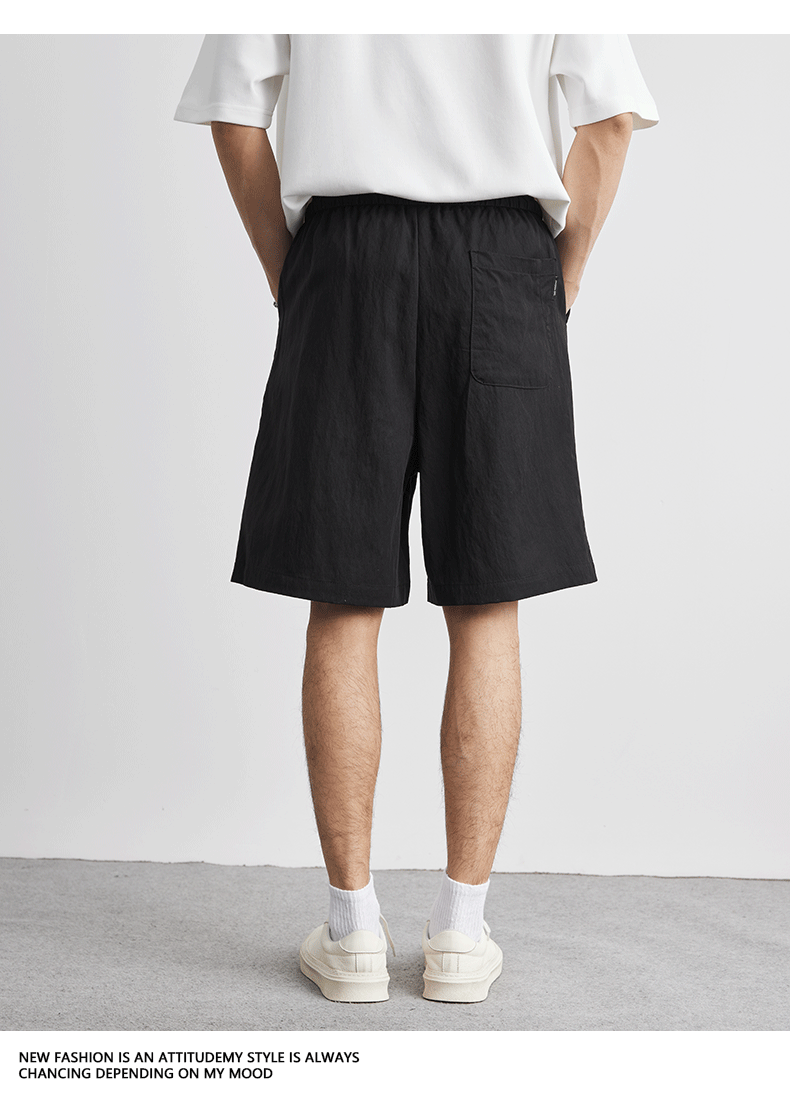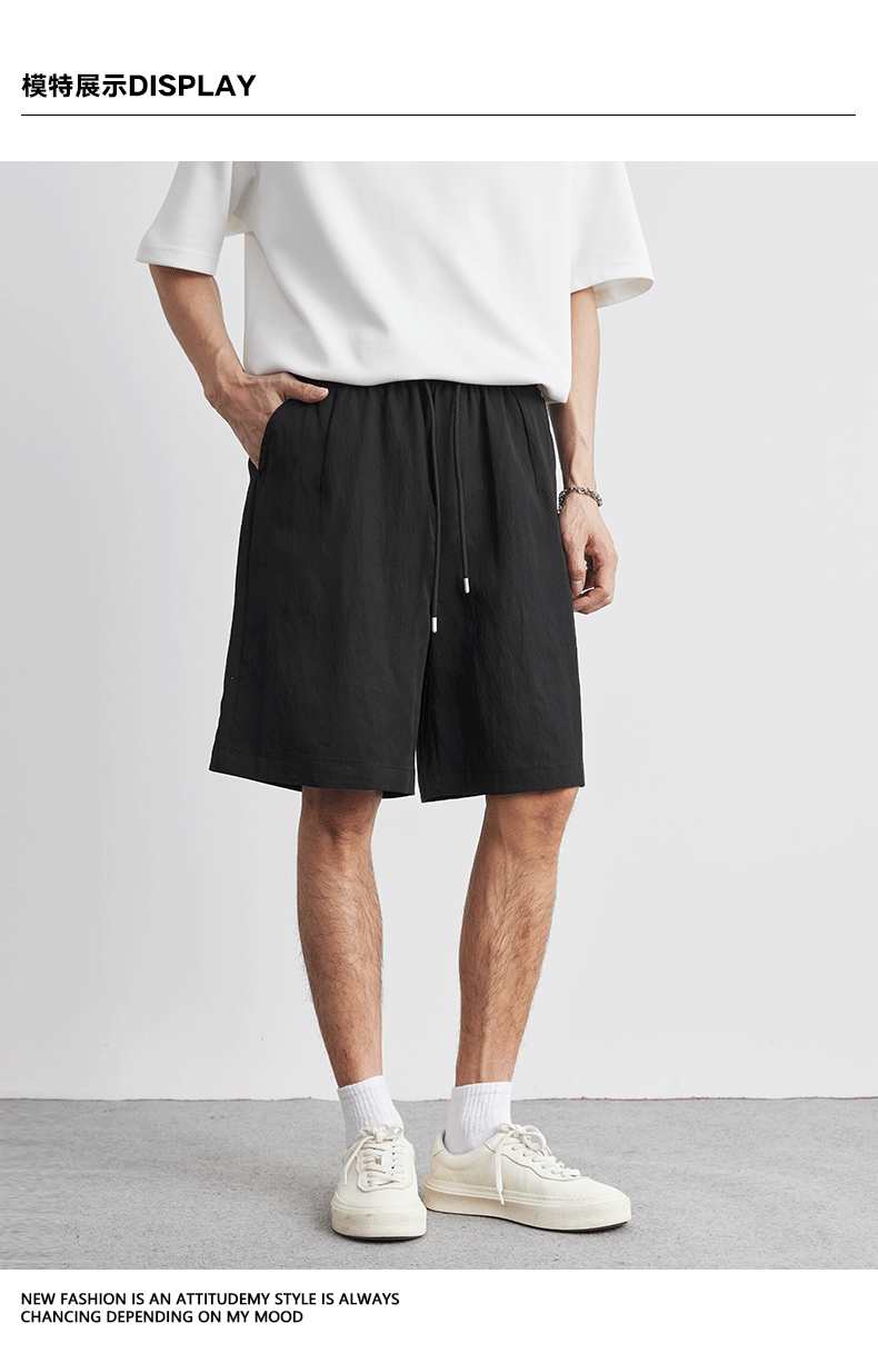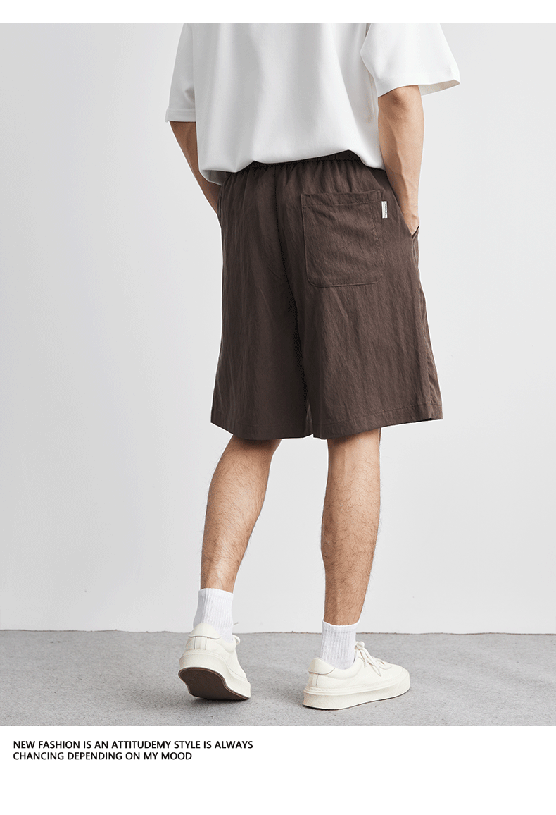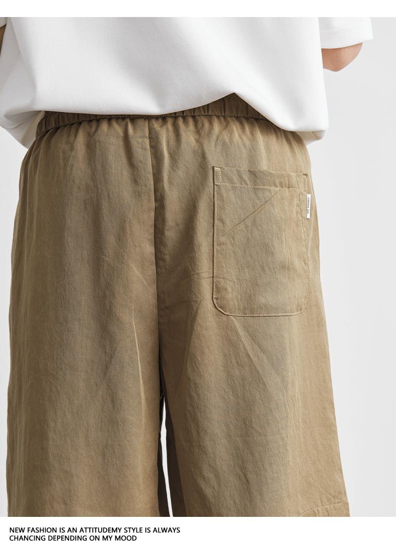 아메리칸 스타일 레트로 라이트 쿨 텐셀 반바지 남성 여름 얇은 느슨한 단색 와이드 레그 아이스 실크 비치 바지